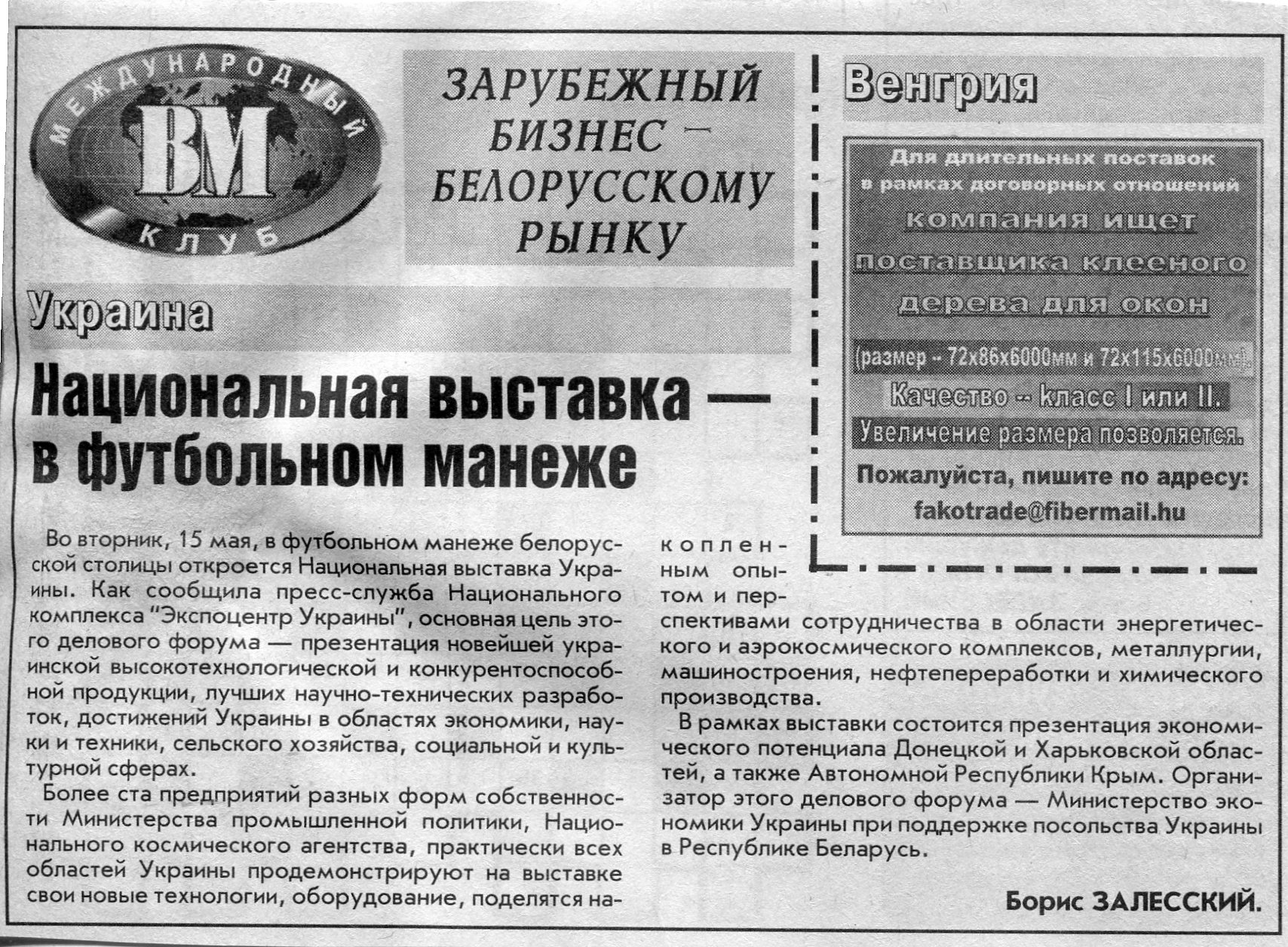Европейский бизнес - белорусскому рынку // Вечерний Минск. - 2007. - 15 июн.