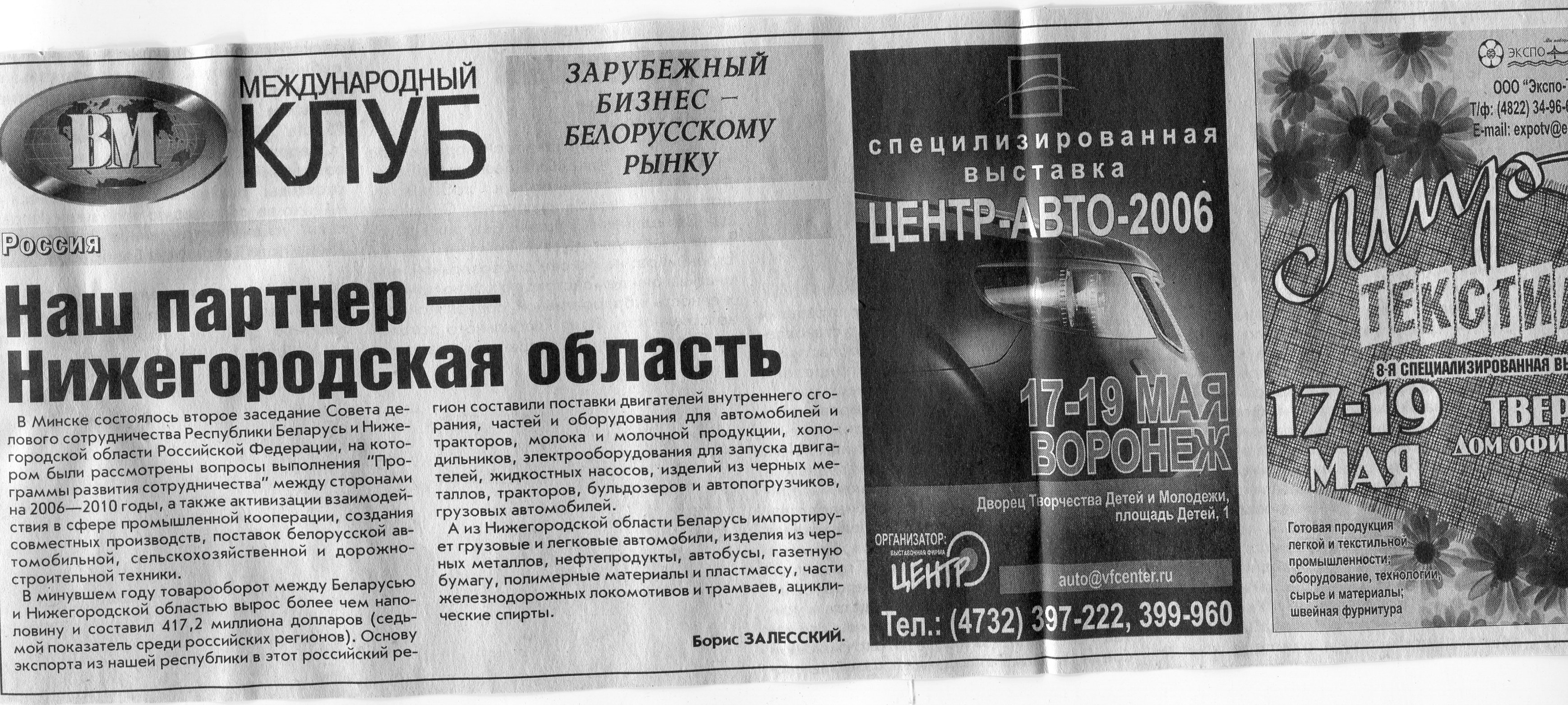 Российский бизнес - белорусскому рынку // Вечерний Минск. - 2007. - 21 мая.