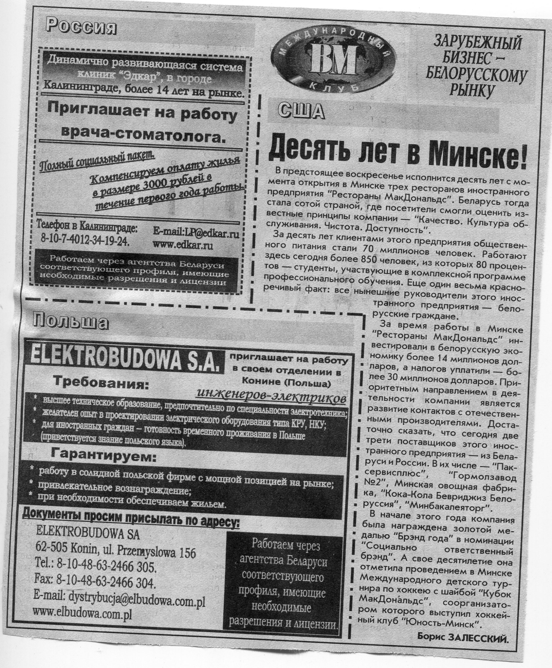 Зарубежный бизнес - белорусскому рынку // Вечерний Минск. - 2006. - 10 нояб.