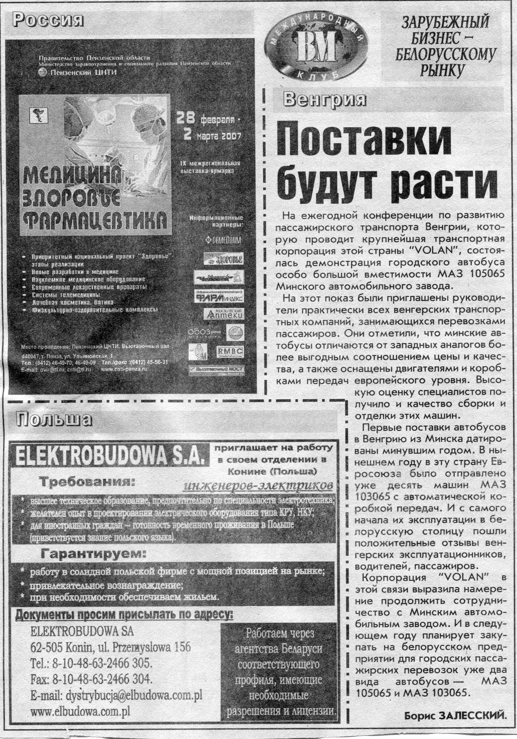 Зарубежный бизнес - белорусскому рынку // Вечерний Минск. - 2006. - 27 нояб.