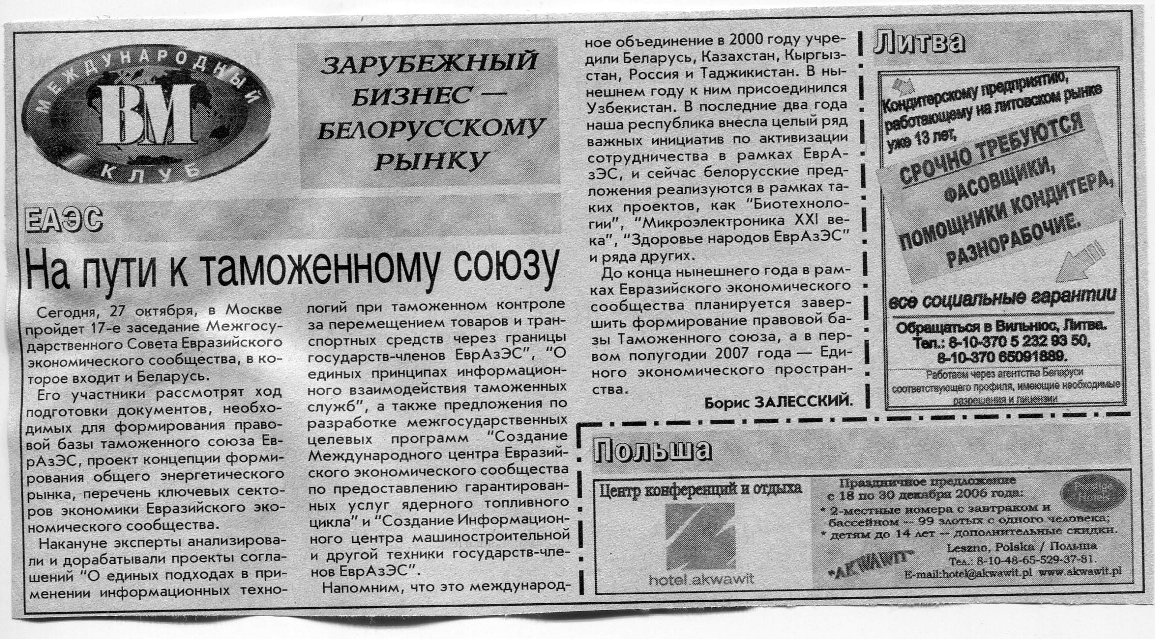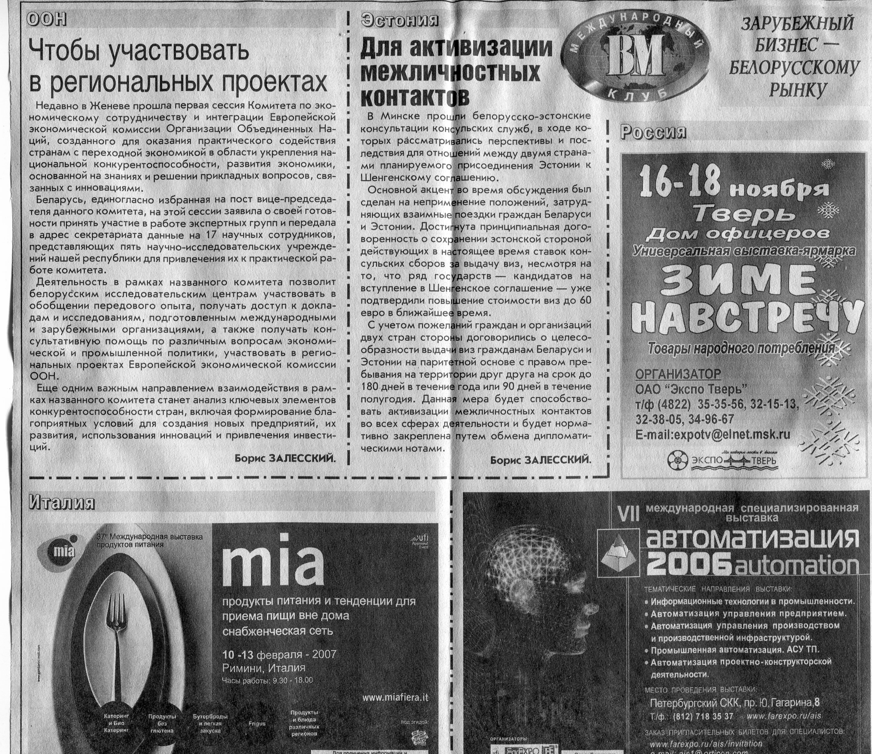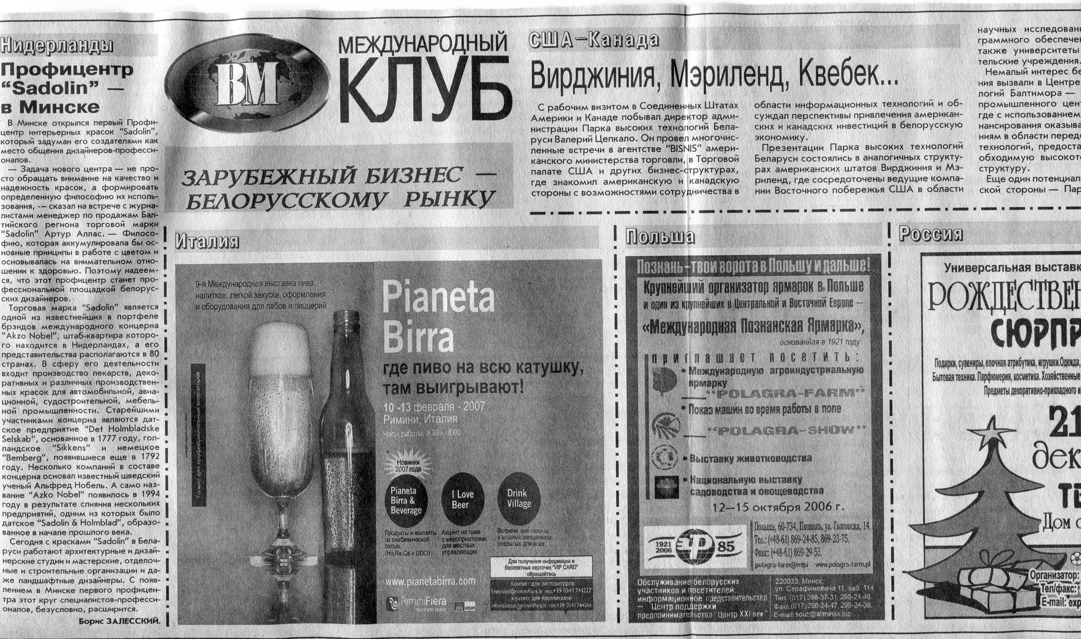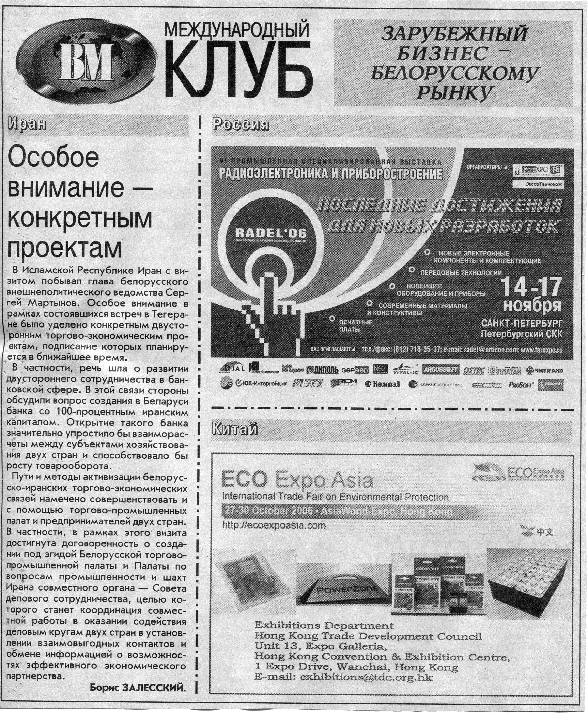 Зарубежный бизнес - белорусскому рынку // Вечерний Минск. - 2006. - 27 окт.