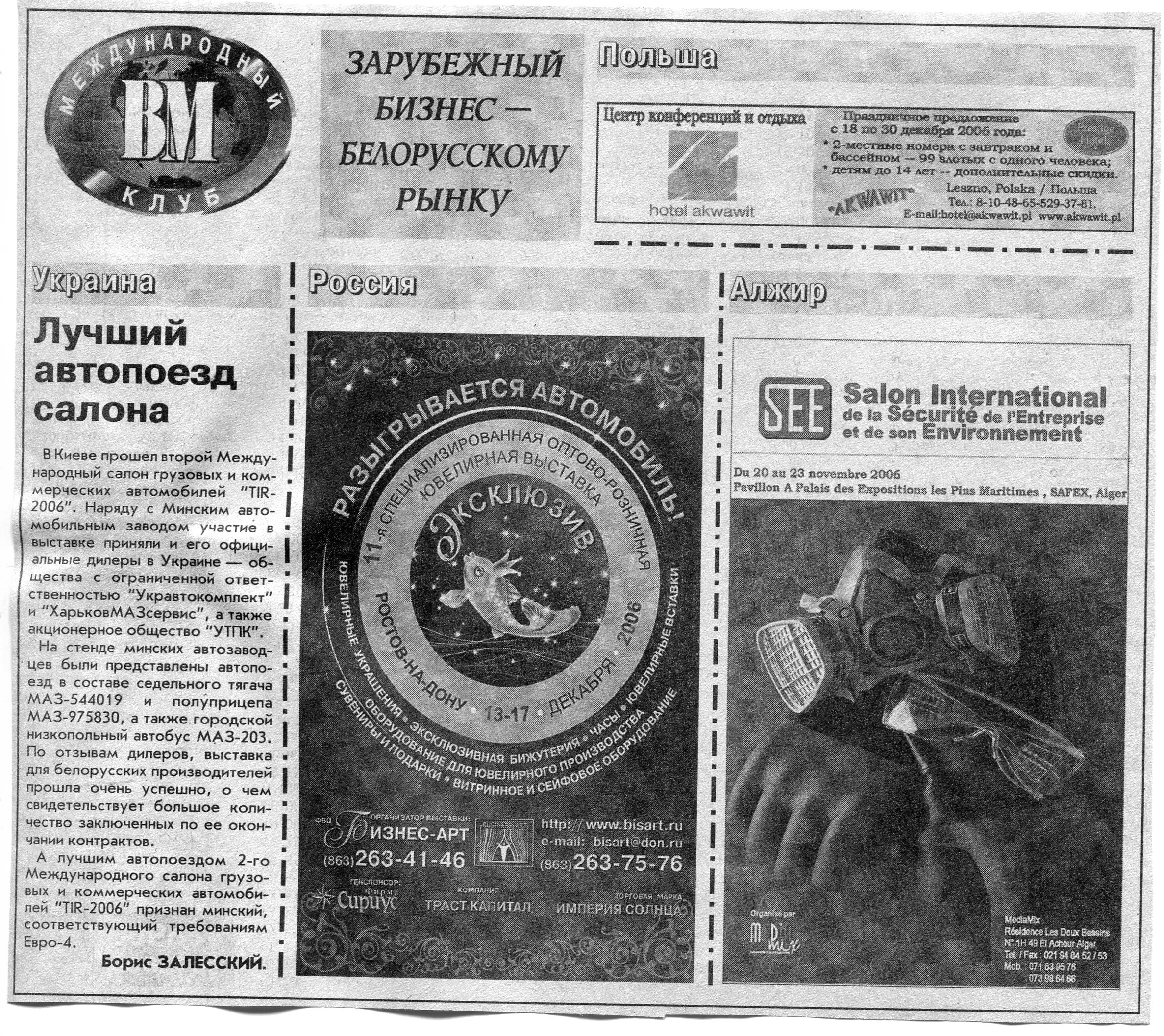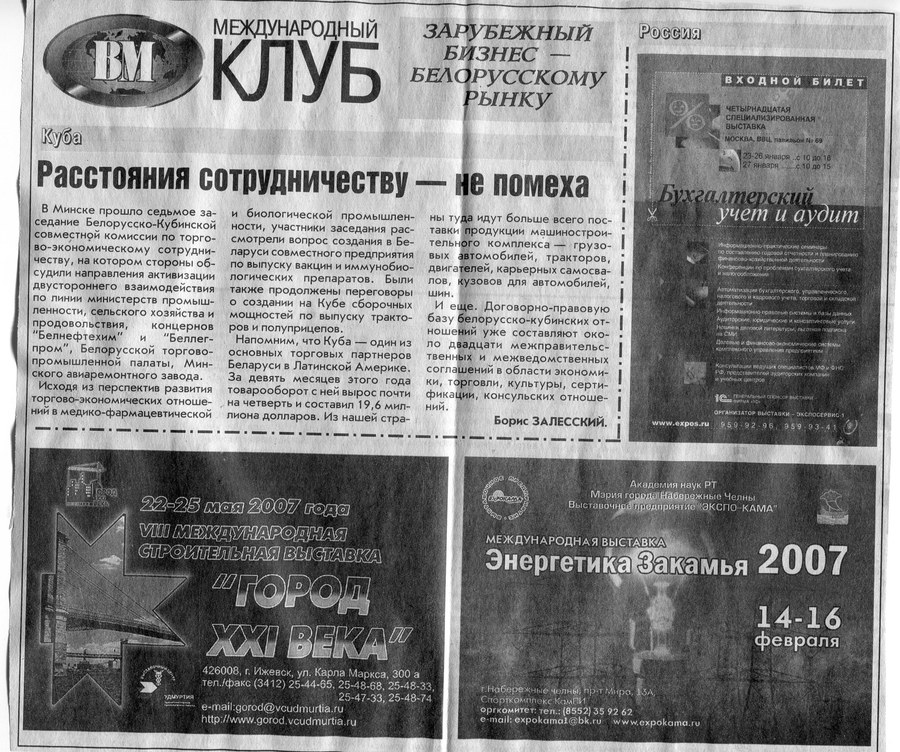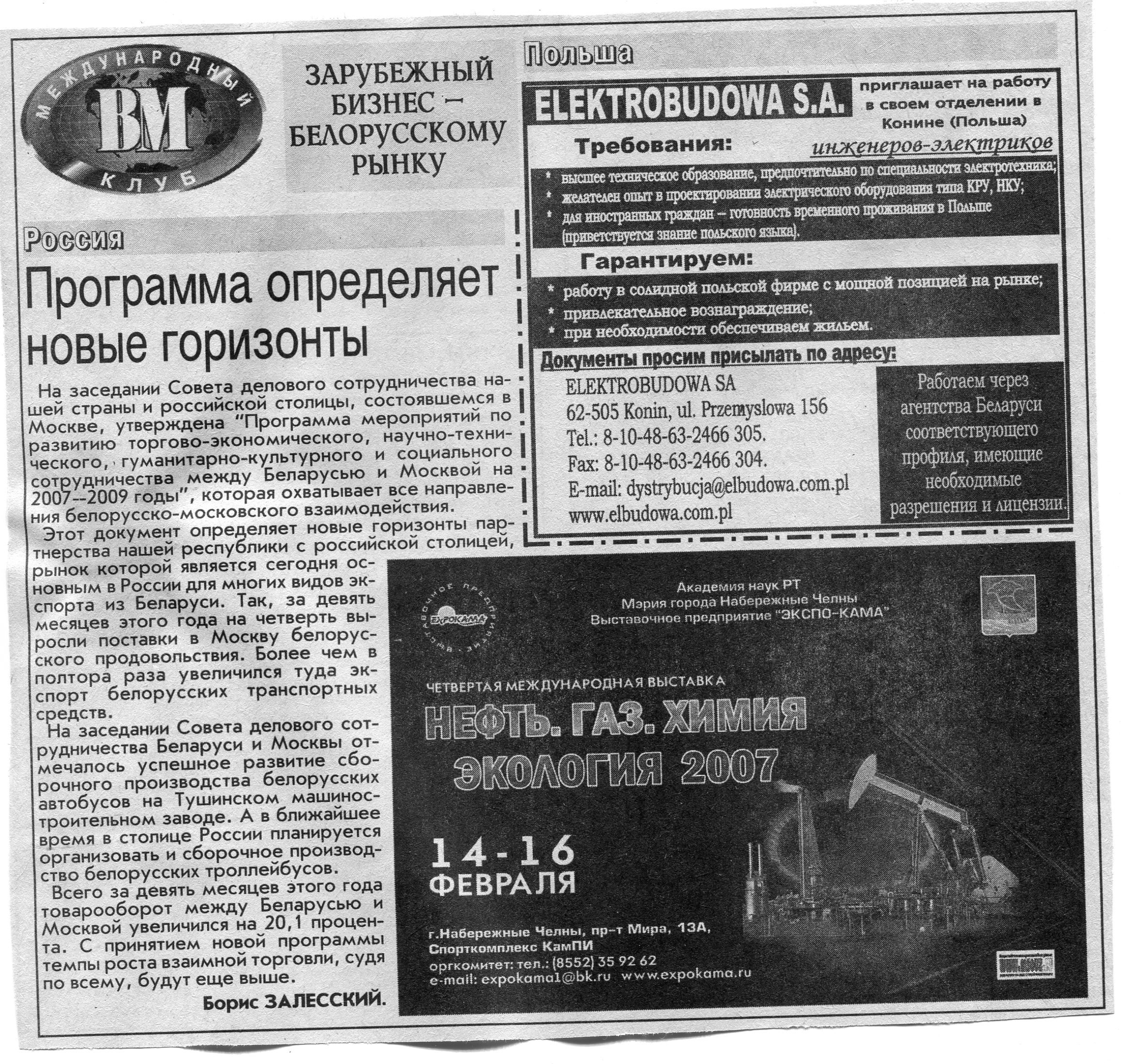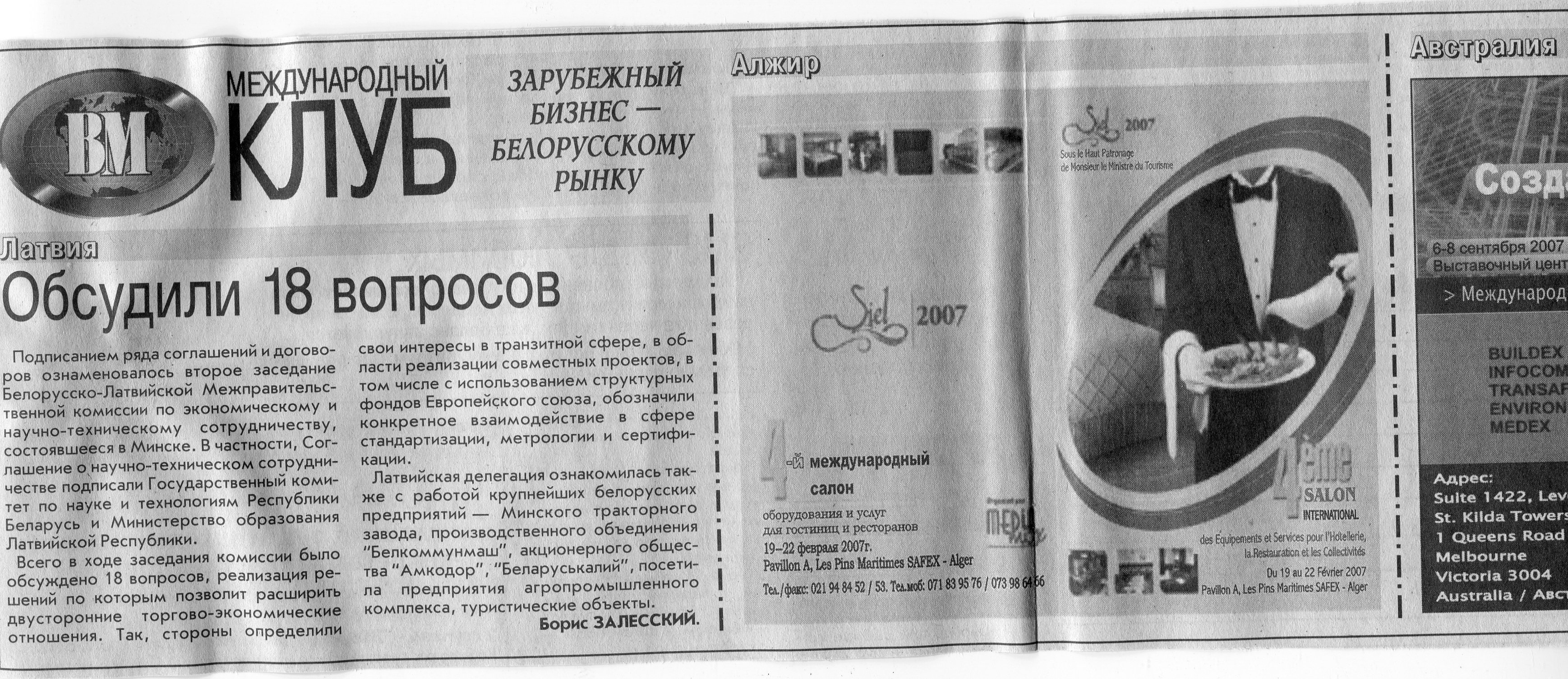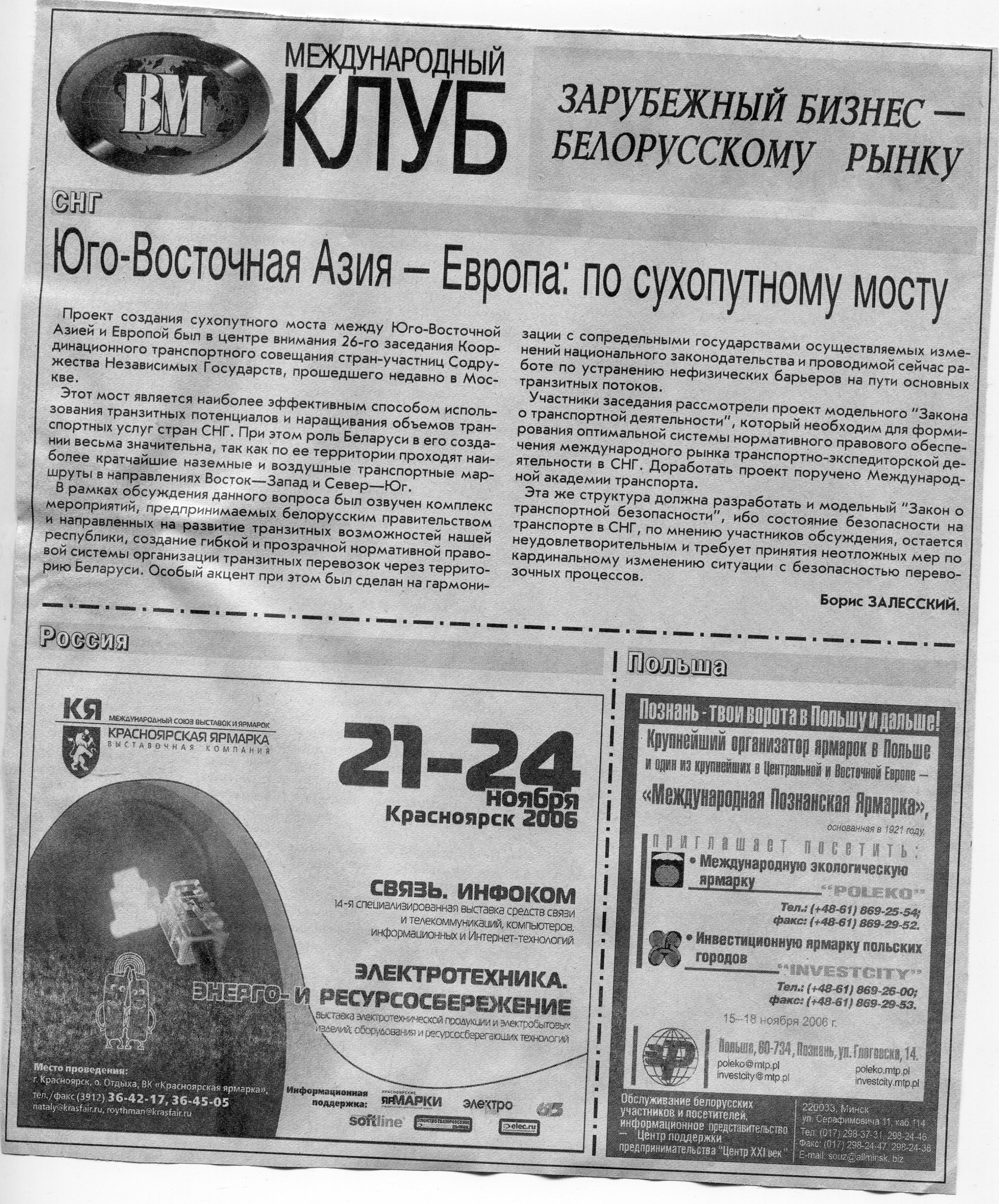 Зарубежный бизнес - белорусскому рынку // Вечерний Минск. - 2006. - 27 окт.