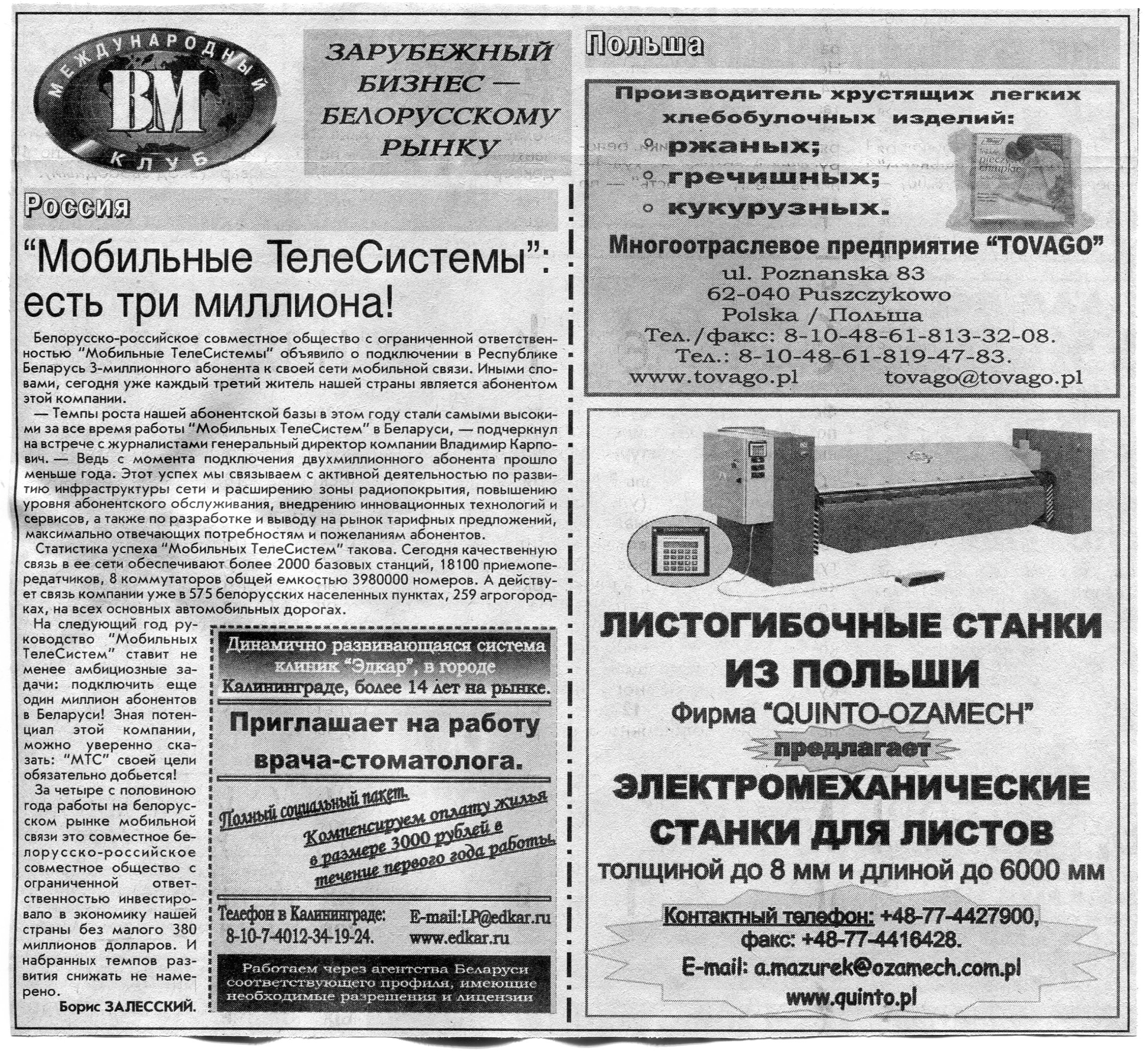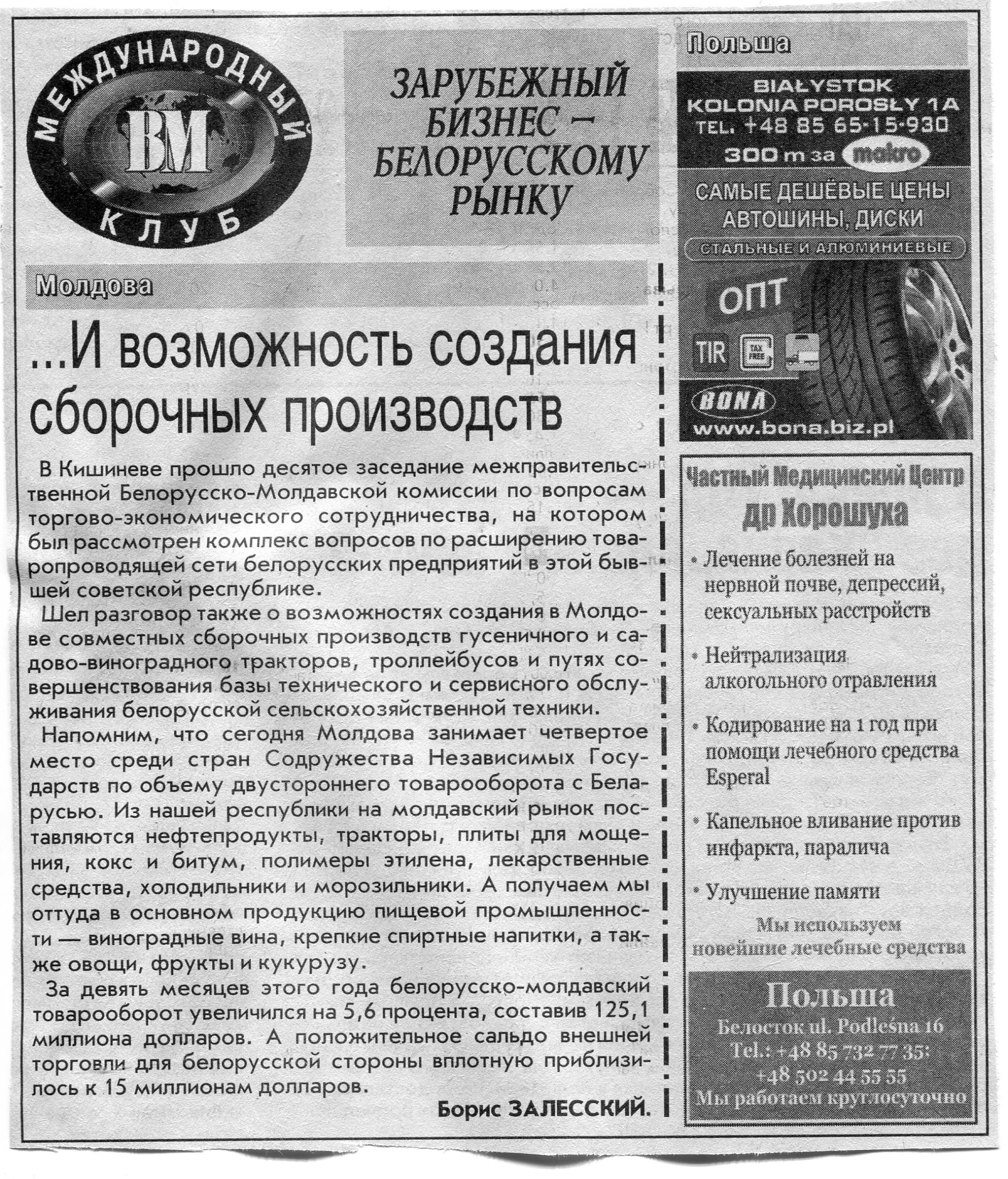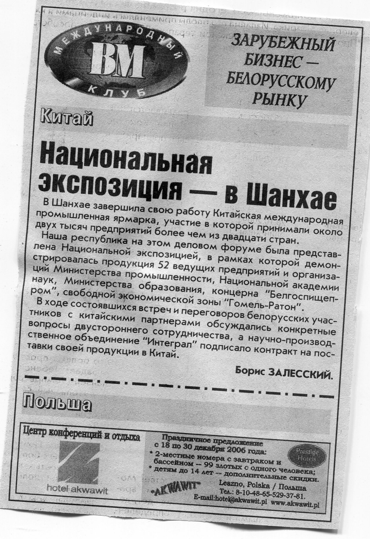 Зарубежный бизнес - белорусскому рынку // Вечерний Минск. - 2006. - 25 окт.