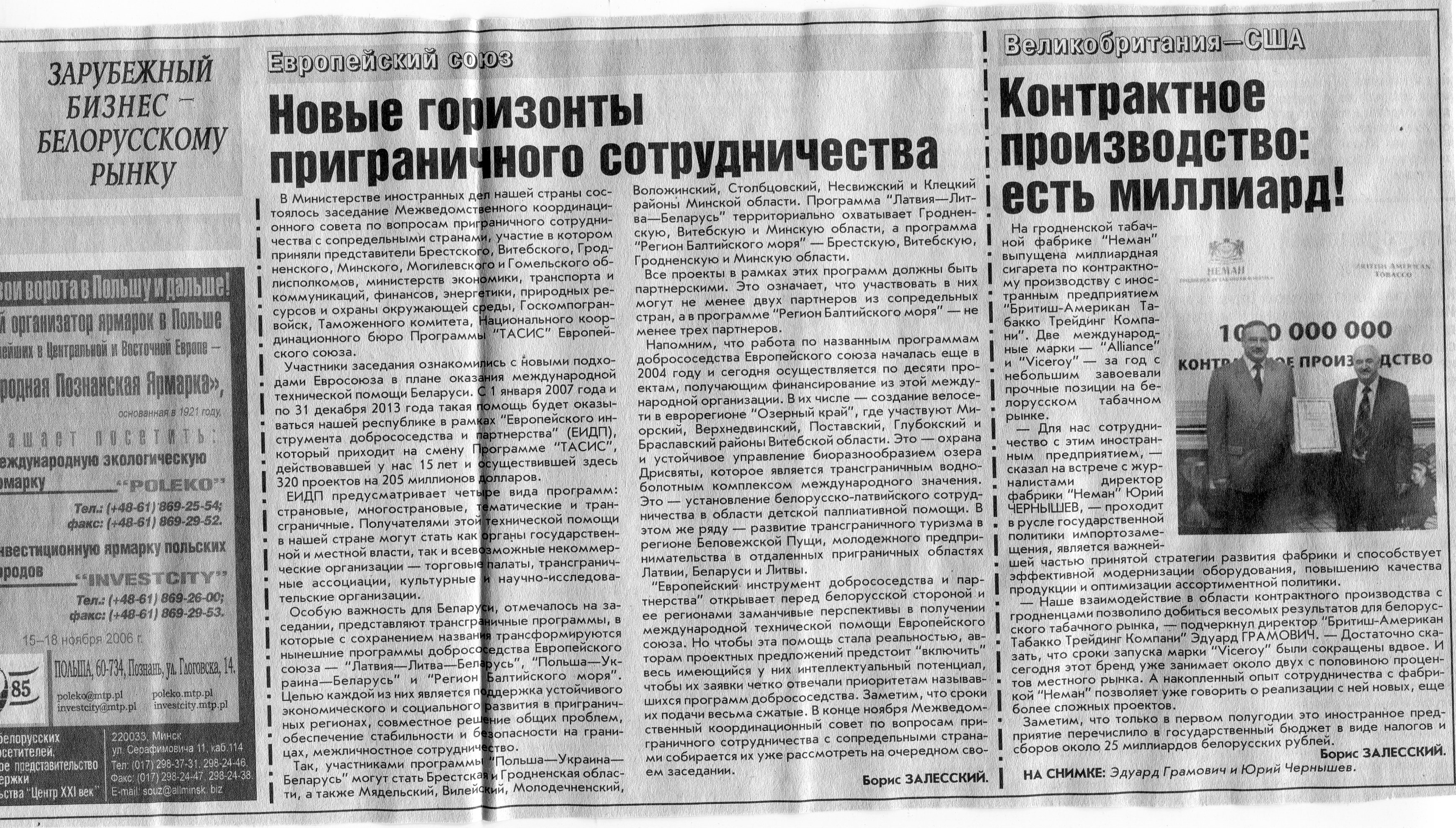 Зарубежный бизнес - белорусскому рынку // Вечерний Минск. - 2006. - 1 дек.