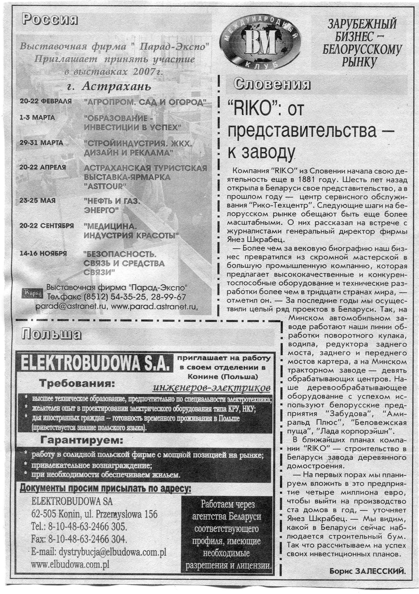 Зарубежный бизнес - белорусскому рынку // Вечерний Минск. - 2006. - 6 дек.