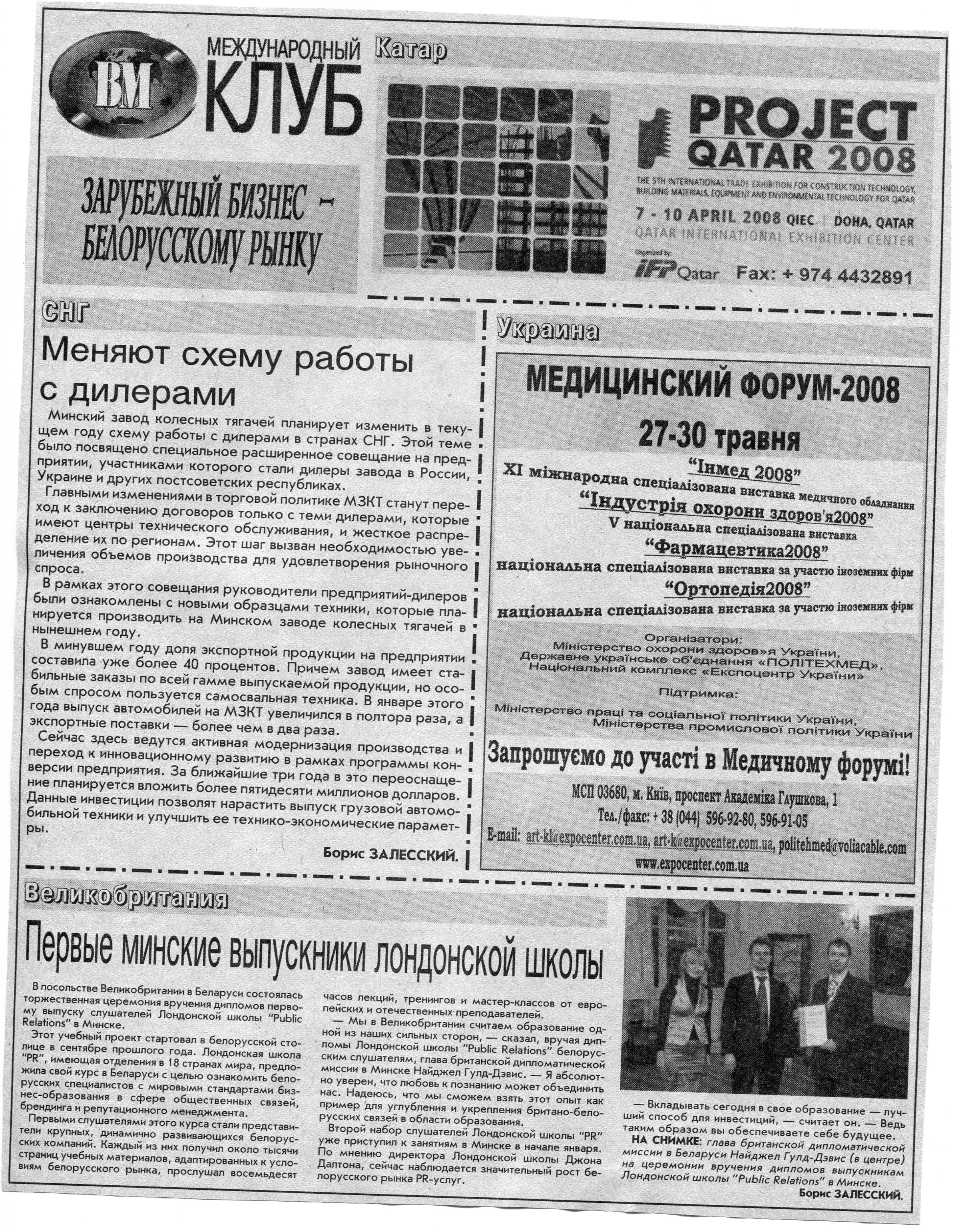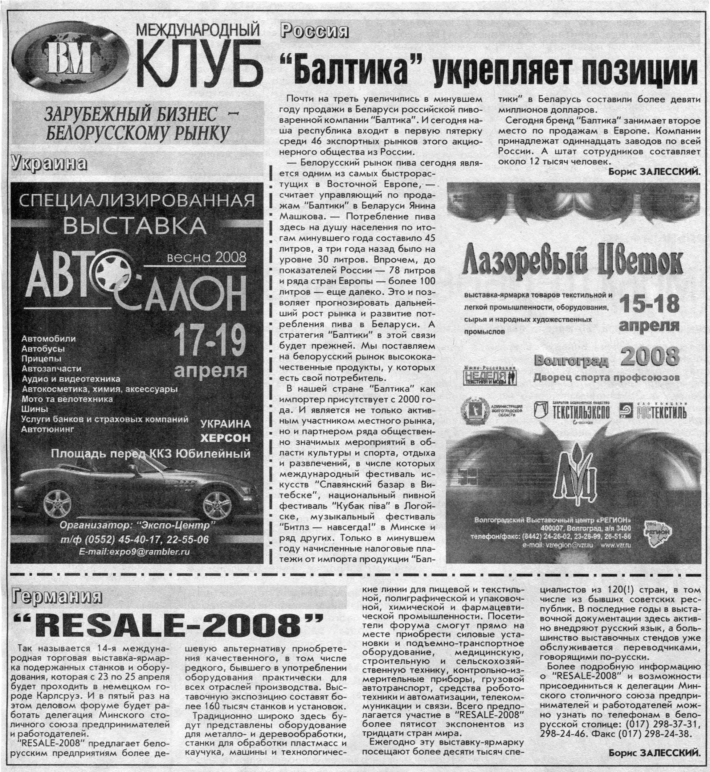 Зарубежный бизнес - белорусскому рынку // Вечерний Минск. - 2008. - 3 апр.