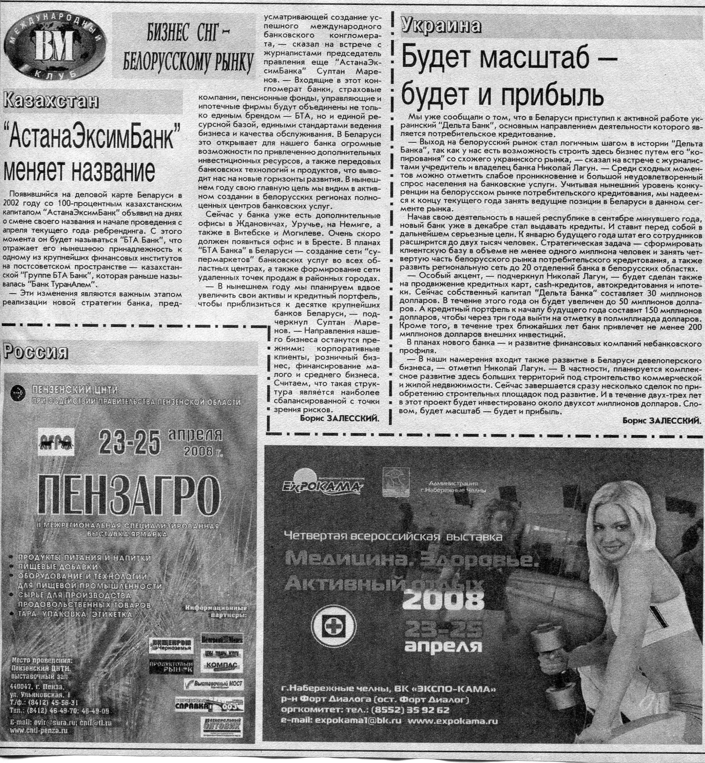 Европейский бизнес - белорусскому рынку // Вечерний Минск. - 2008. - 18 апр.