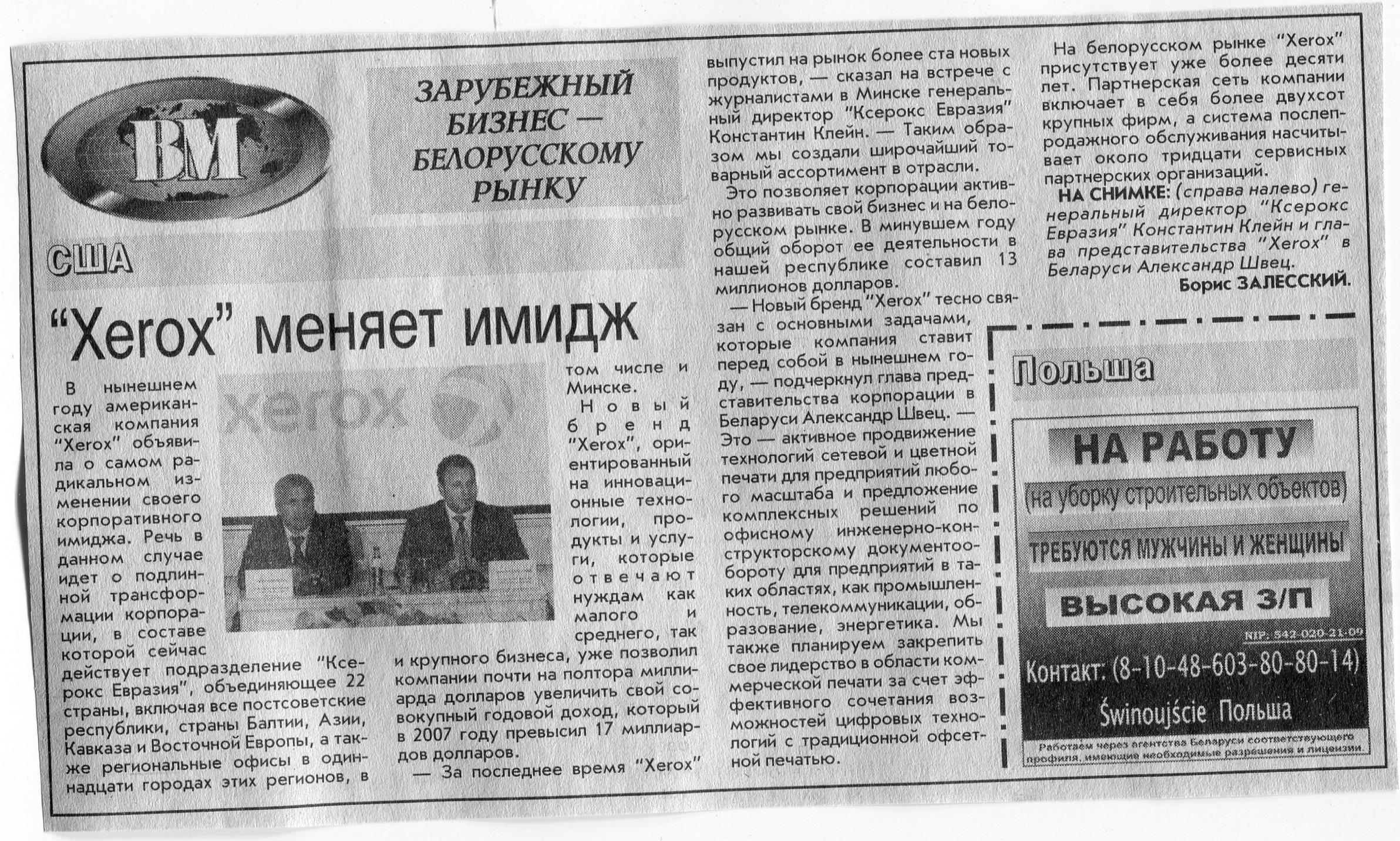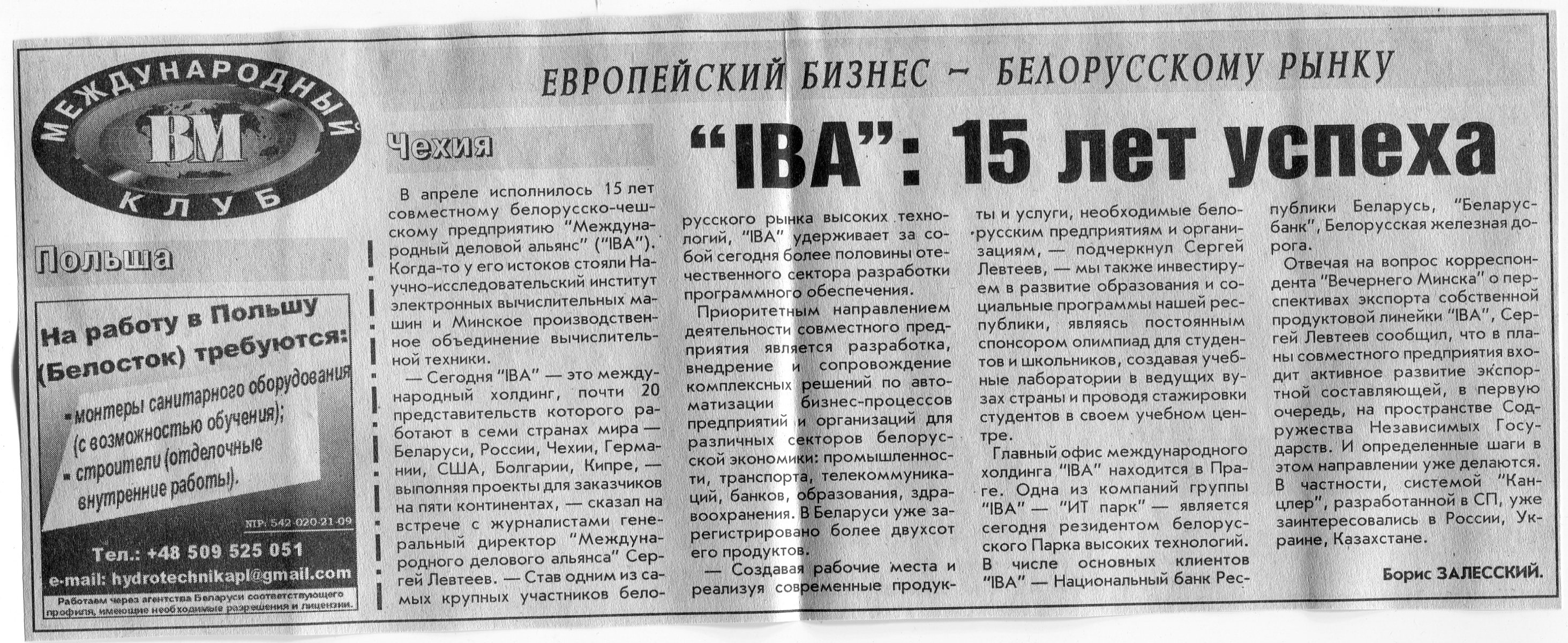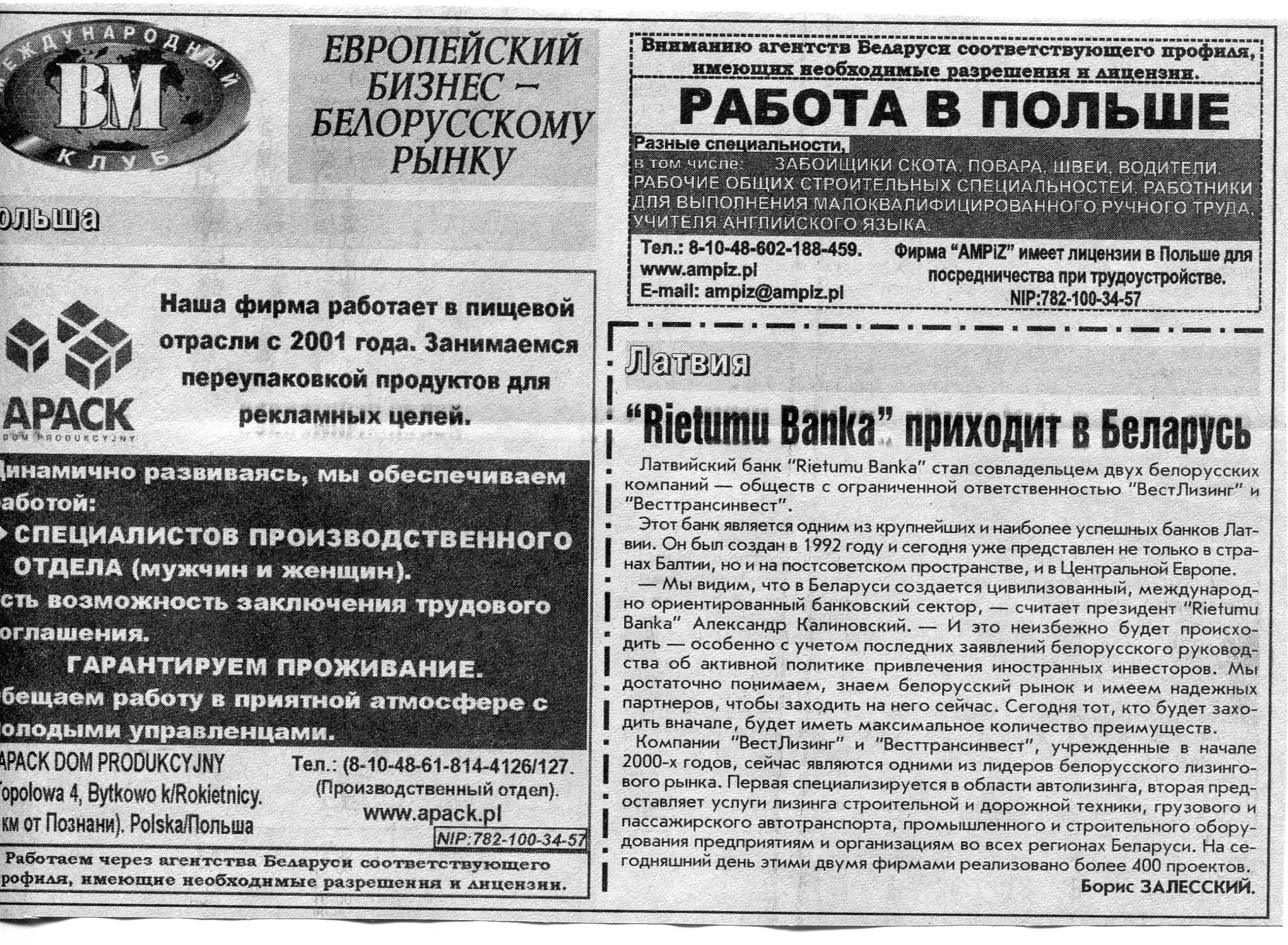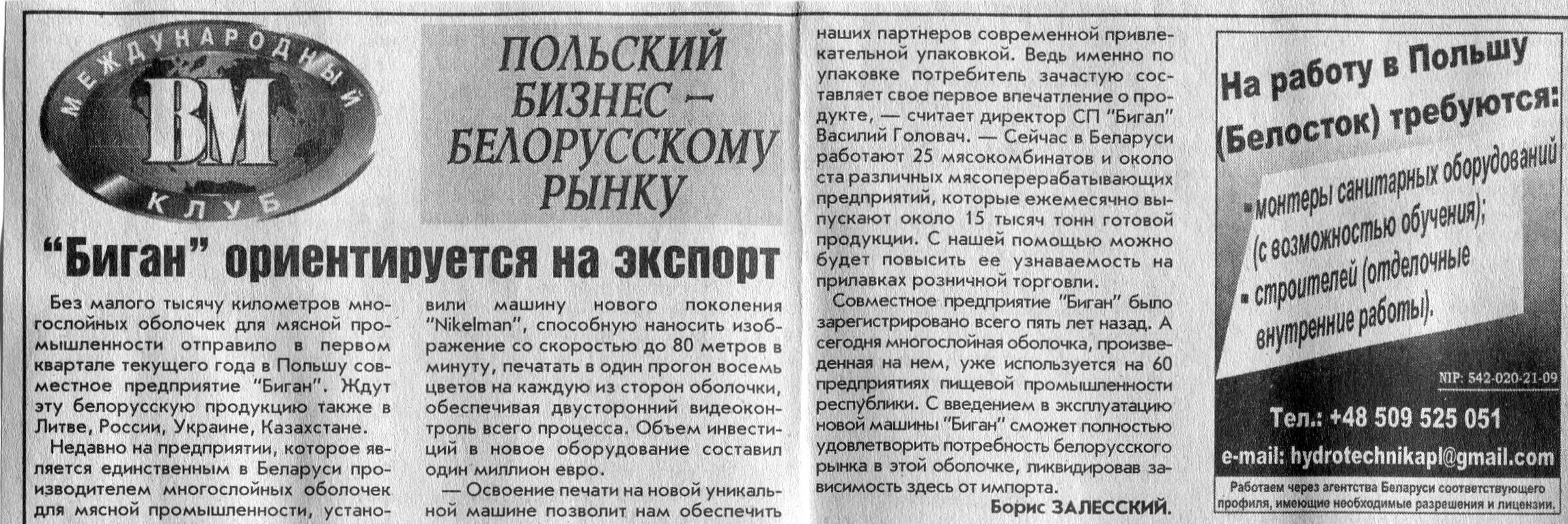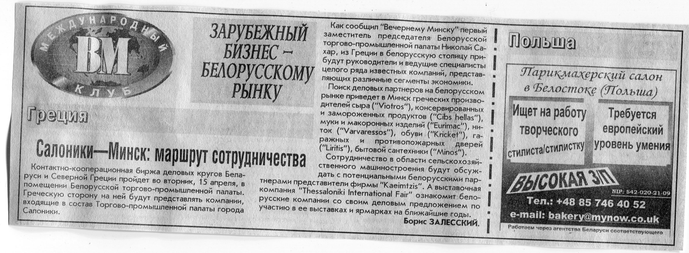 Польский бизнес - белорусскому рынку // Вечерний Минск. - 2008. - 2 мая.