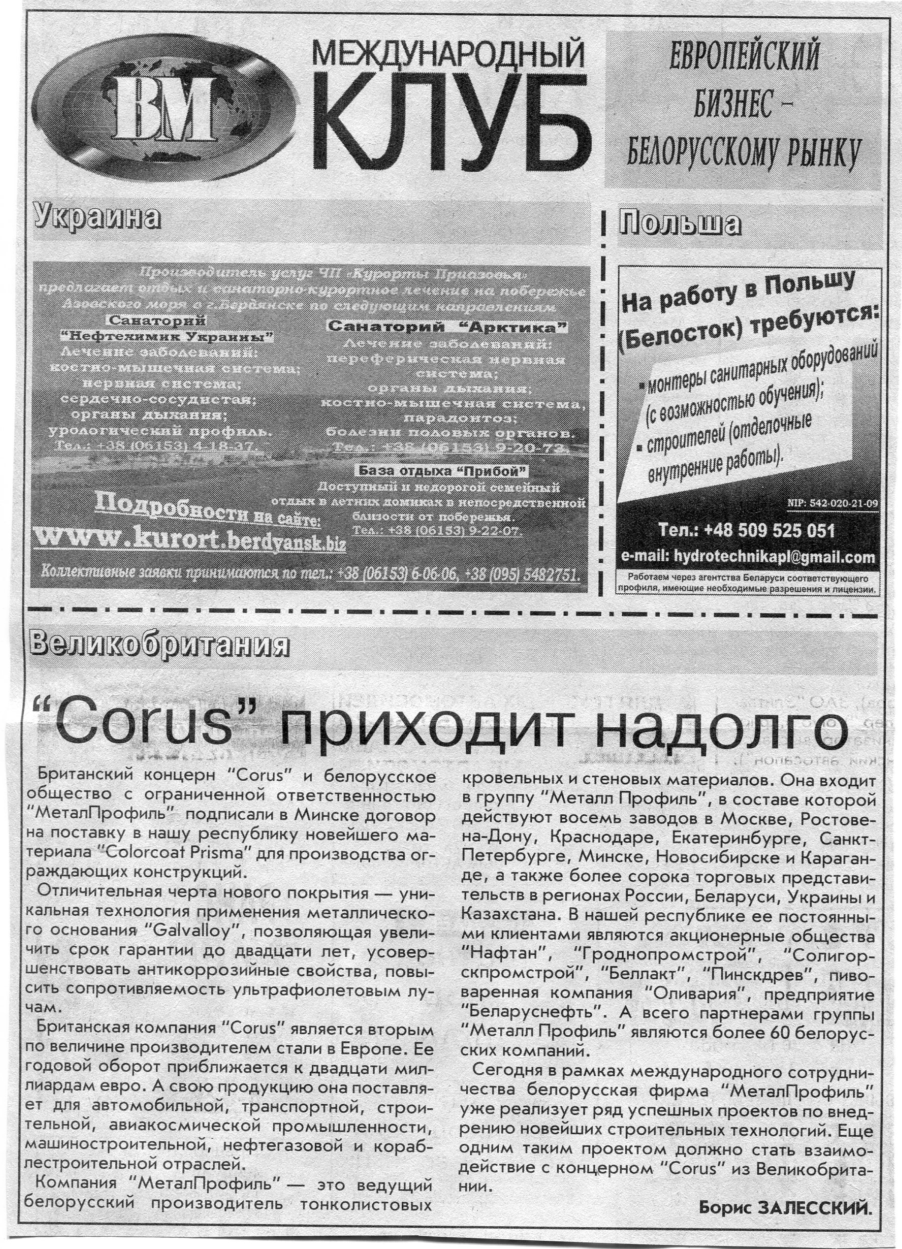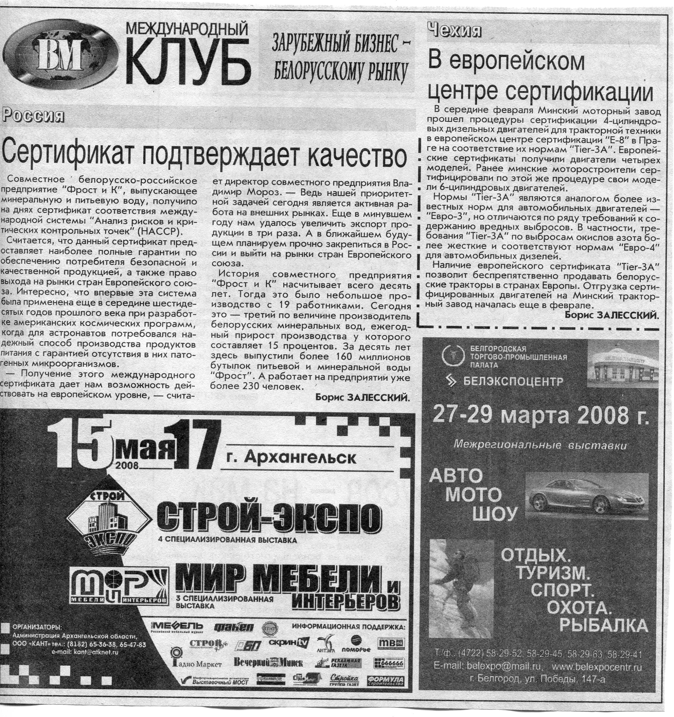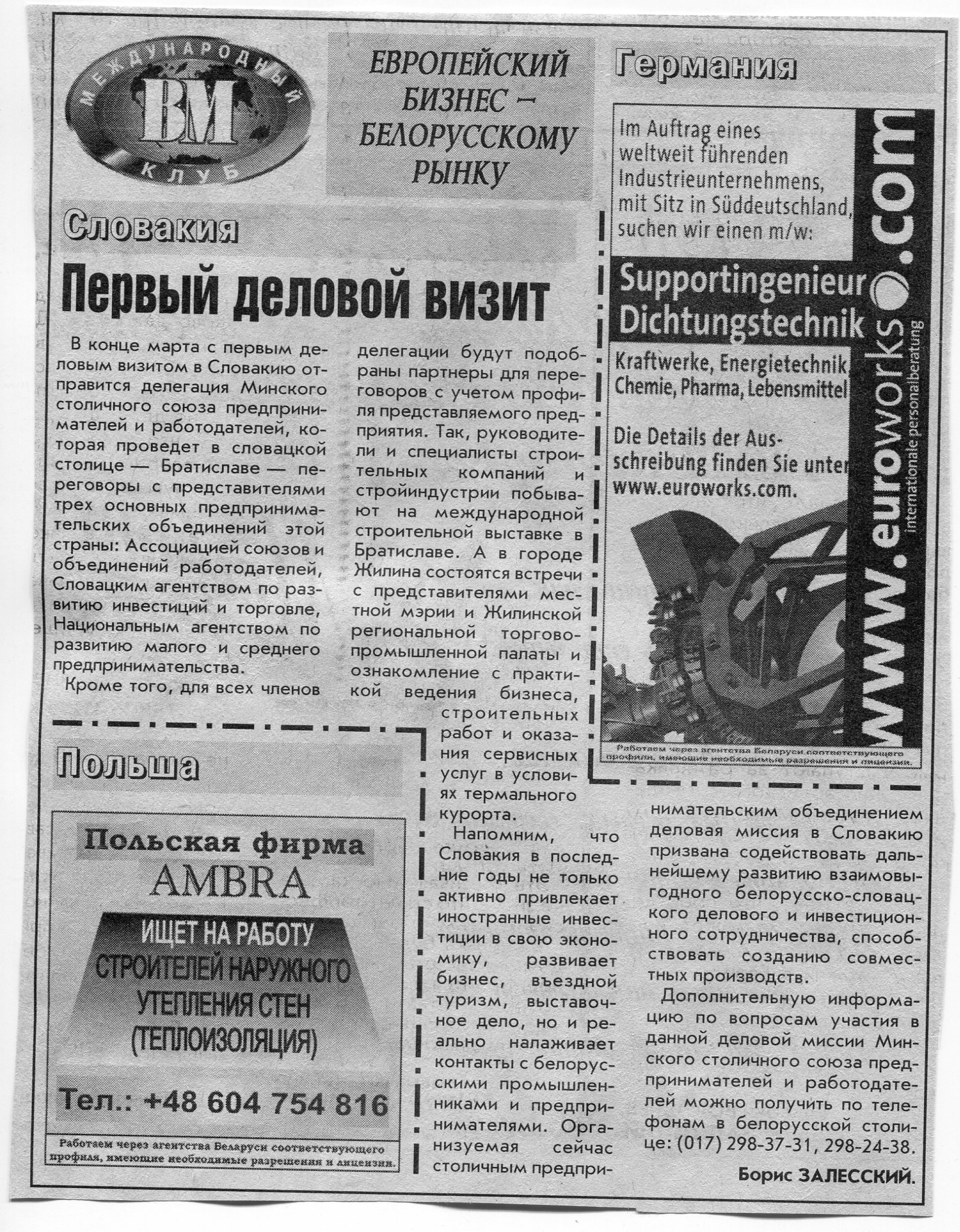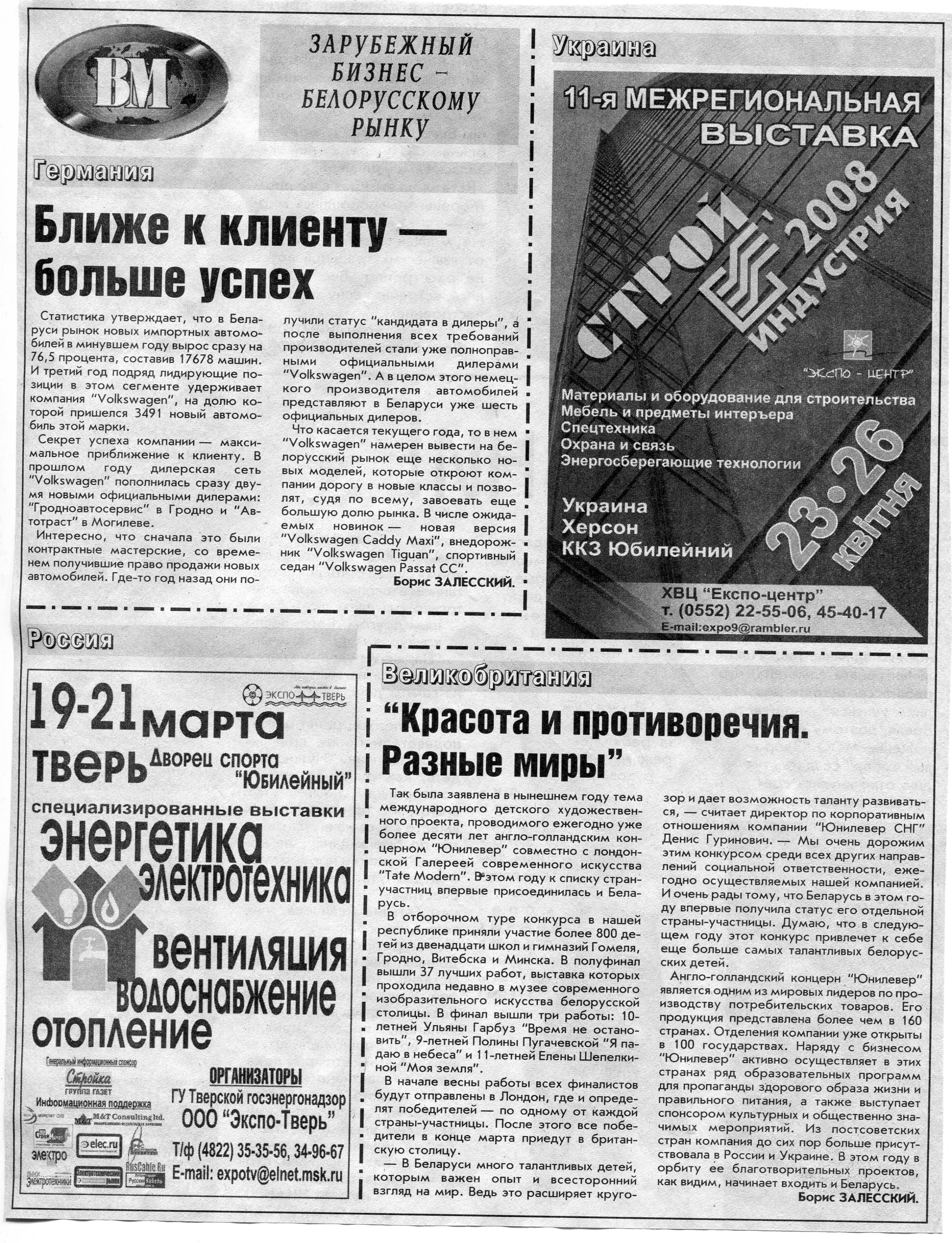 Европейский бизнес - белорусскому рынку // Вечерний Минск. - 2008. - 23 мая.