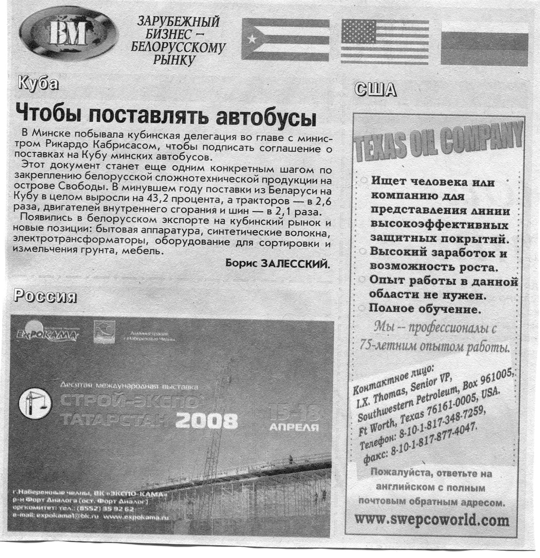 Зарубежный бизнес - белорусскому рынку // Вечерний Минск. - 2008. - 11 апр.