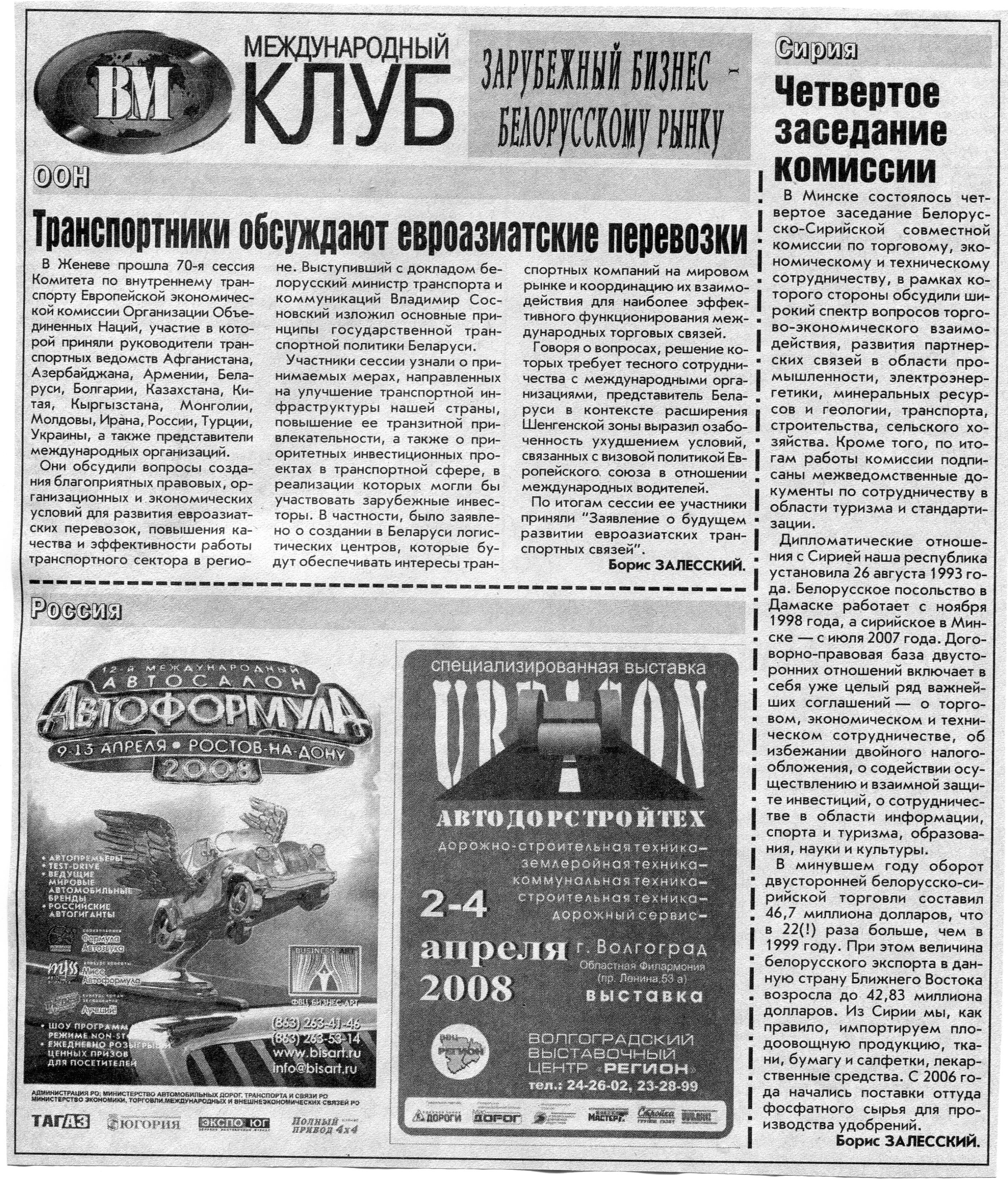 Зарубежный бизнес - белорусскому рынку // Вечерний Минск. - 2008. - 5 мар.