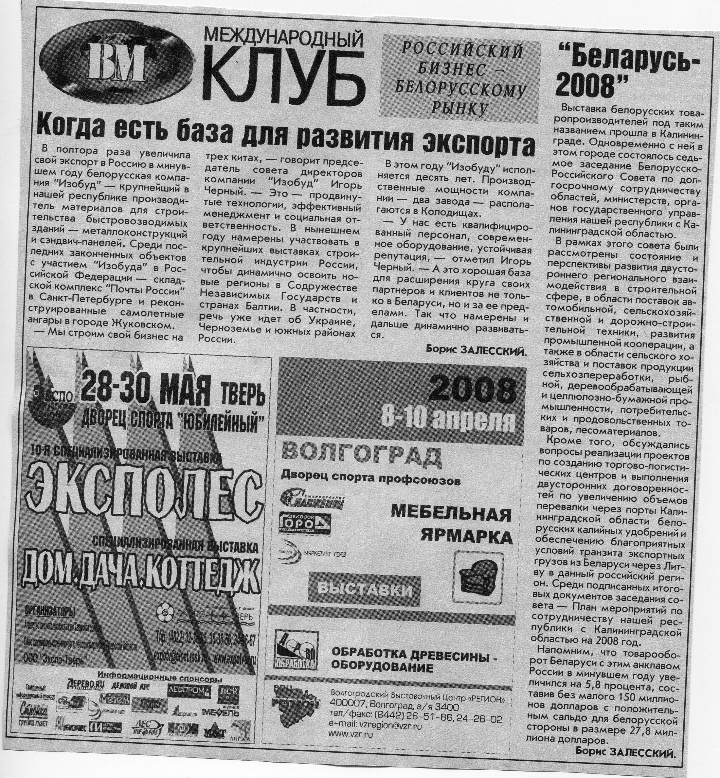 Российский бизнес - белорусскому рынку // Вечерний Минск. - 2008. - 6 мар.
