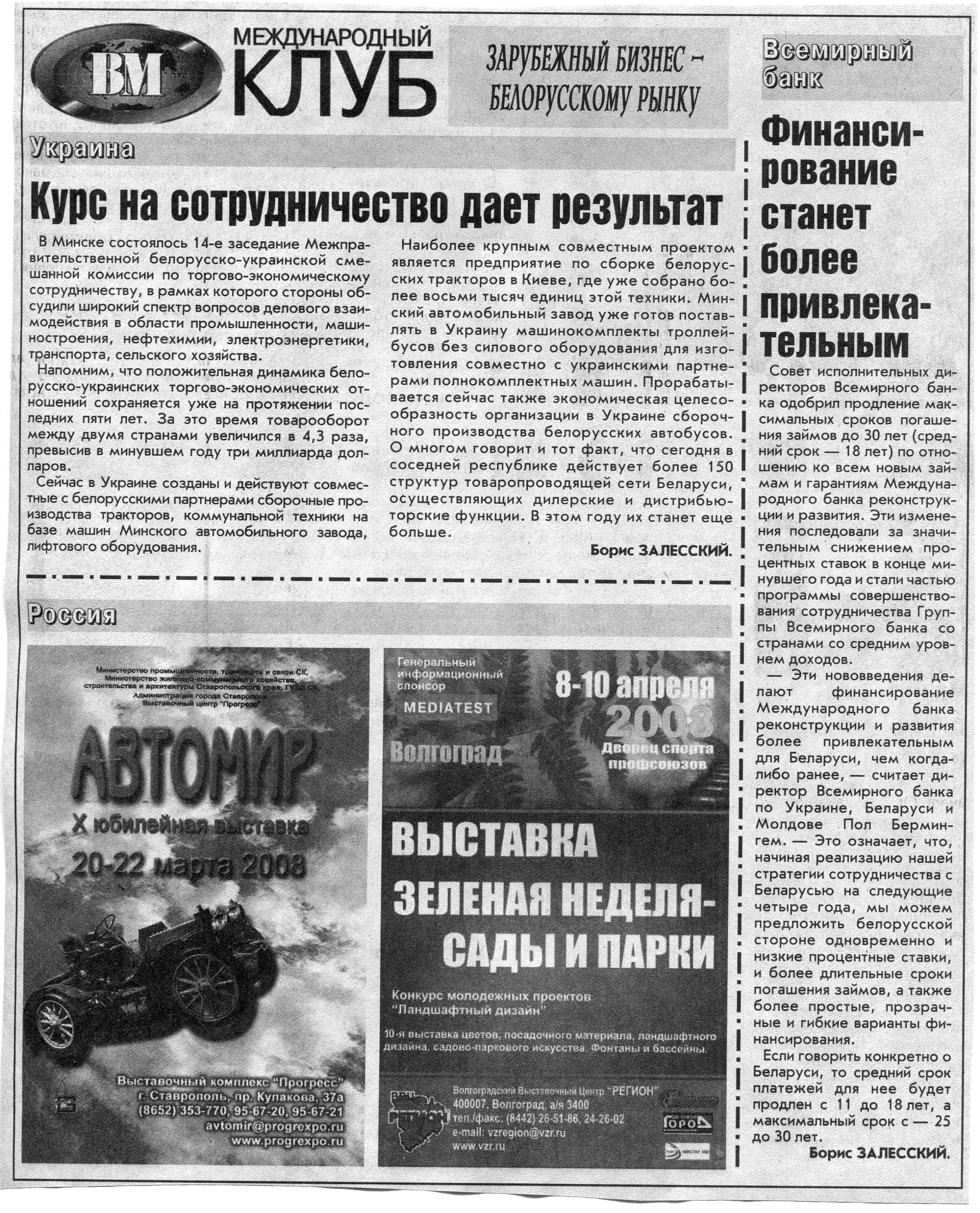 Зарубежный бизнес - белорусскому рынку // Вечерний Минск. - 2008. - 25 мар.