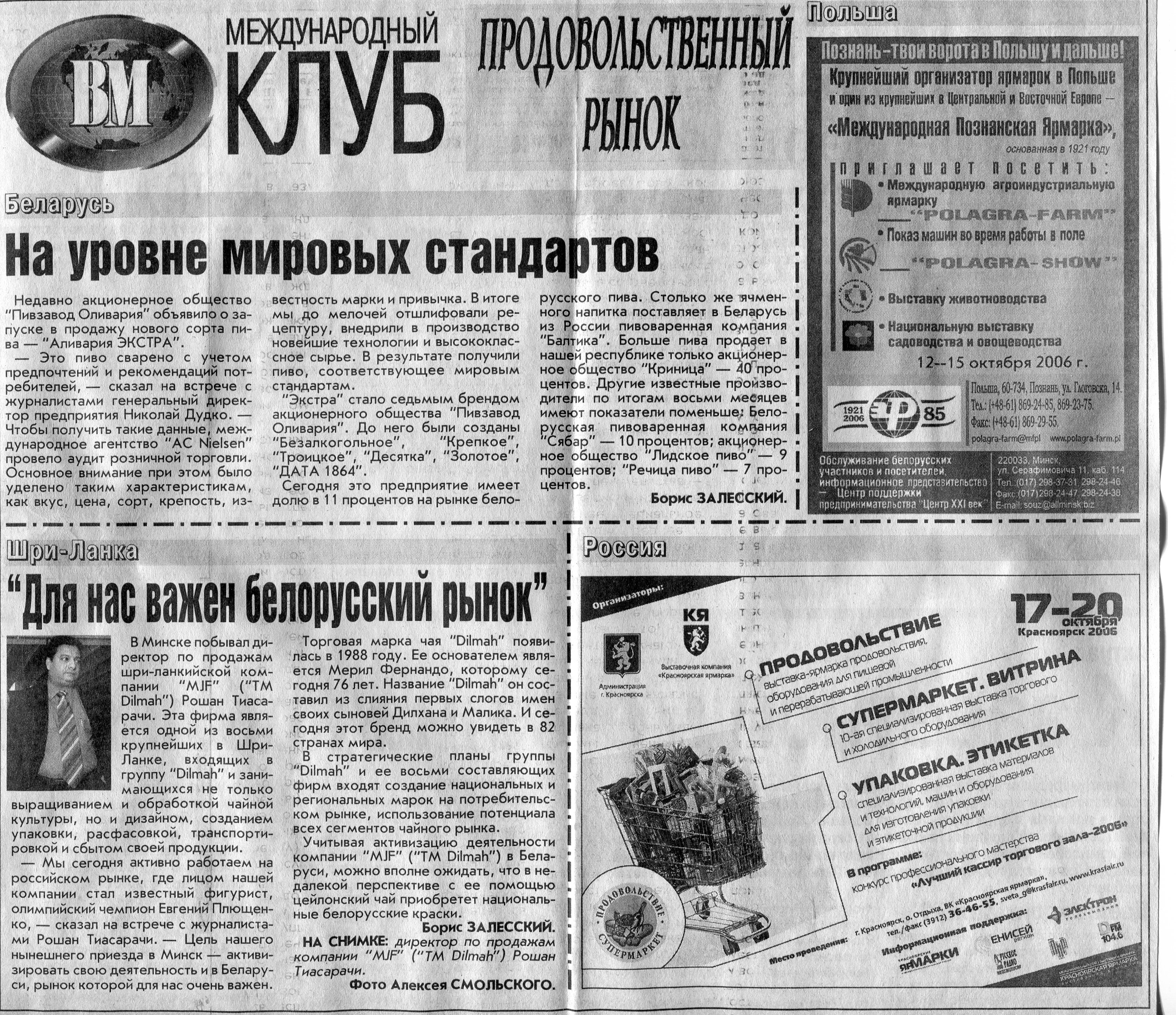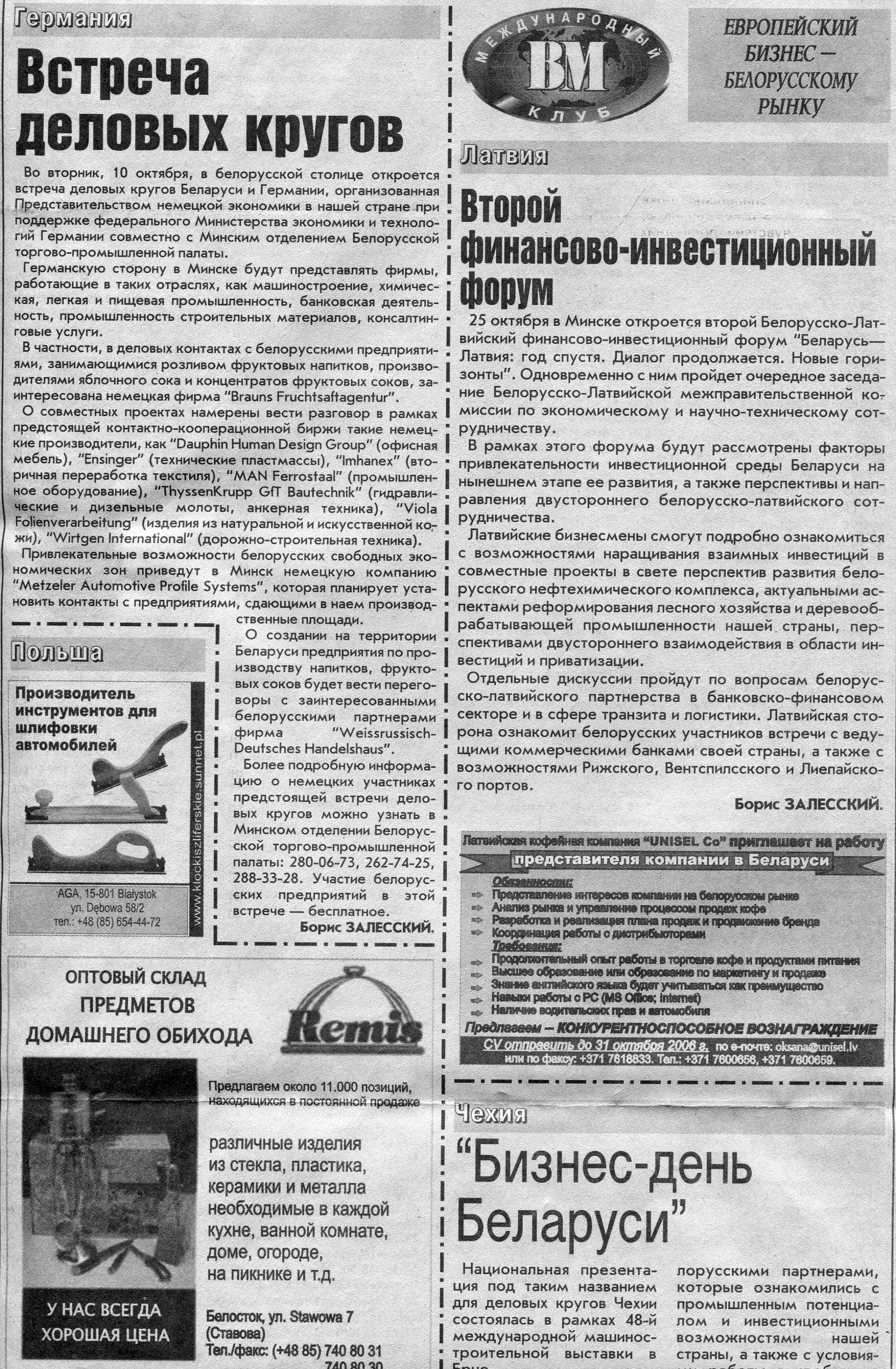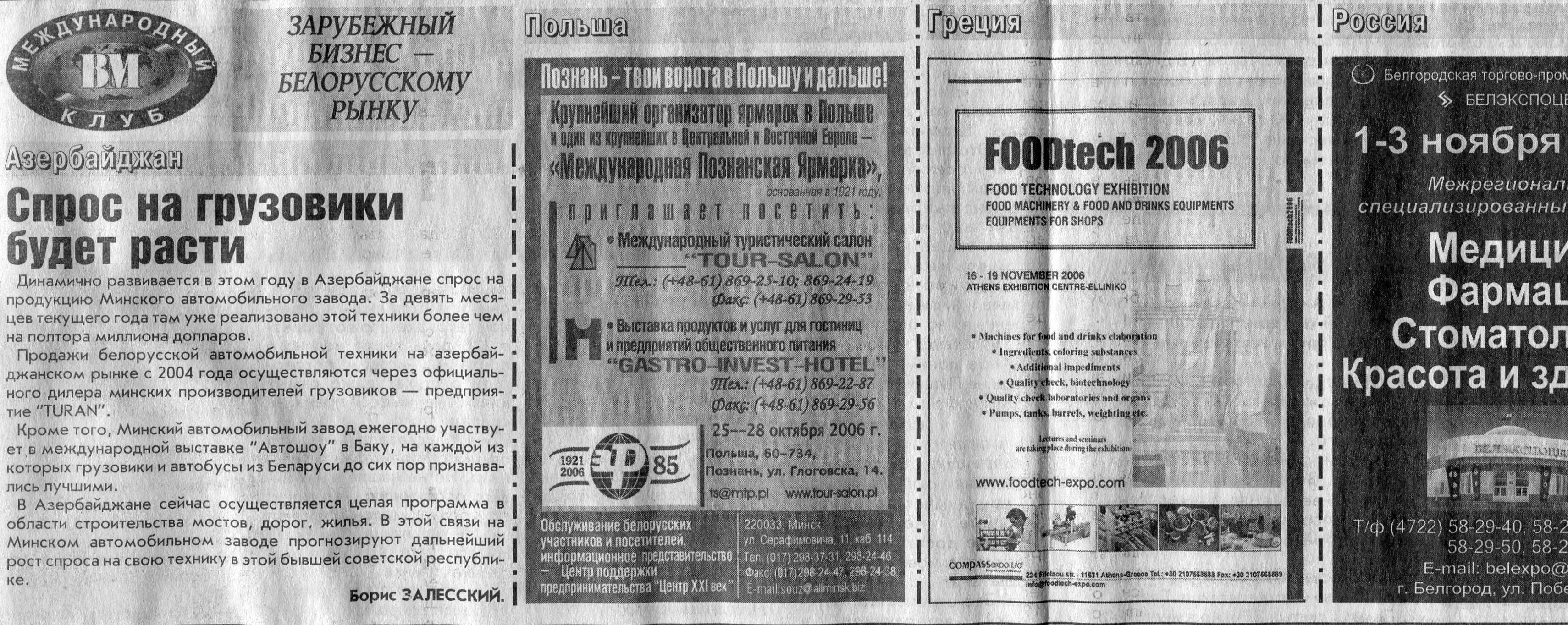 Зарубежный бизнес - белорусскому рынку // Вечерний Минск. - 2006. - 23 окт.