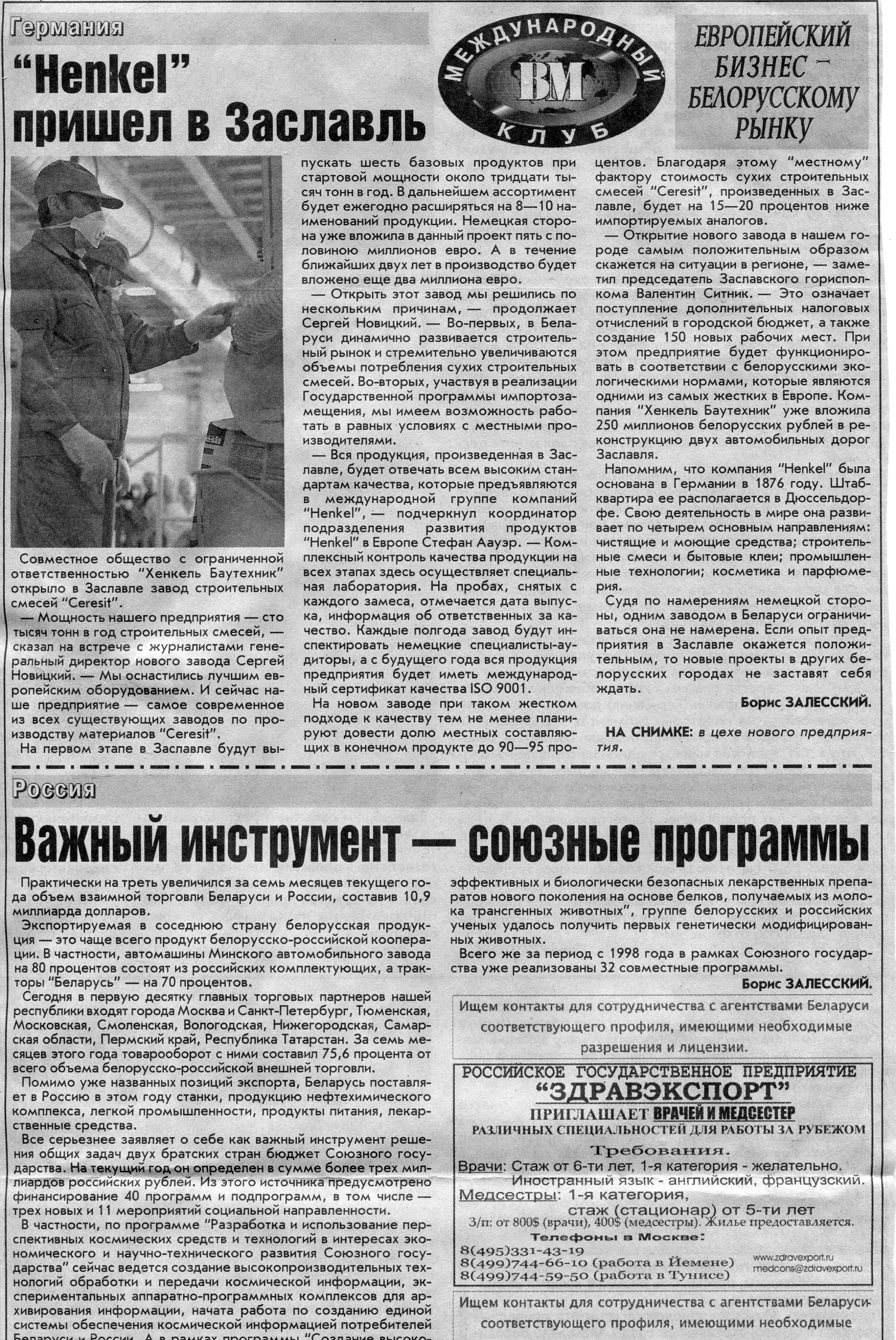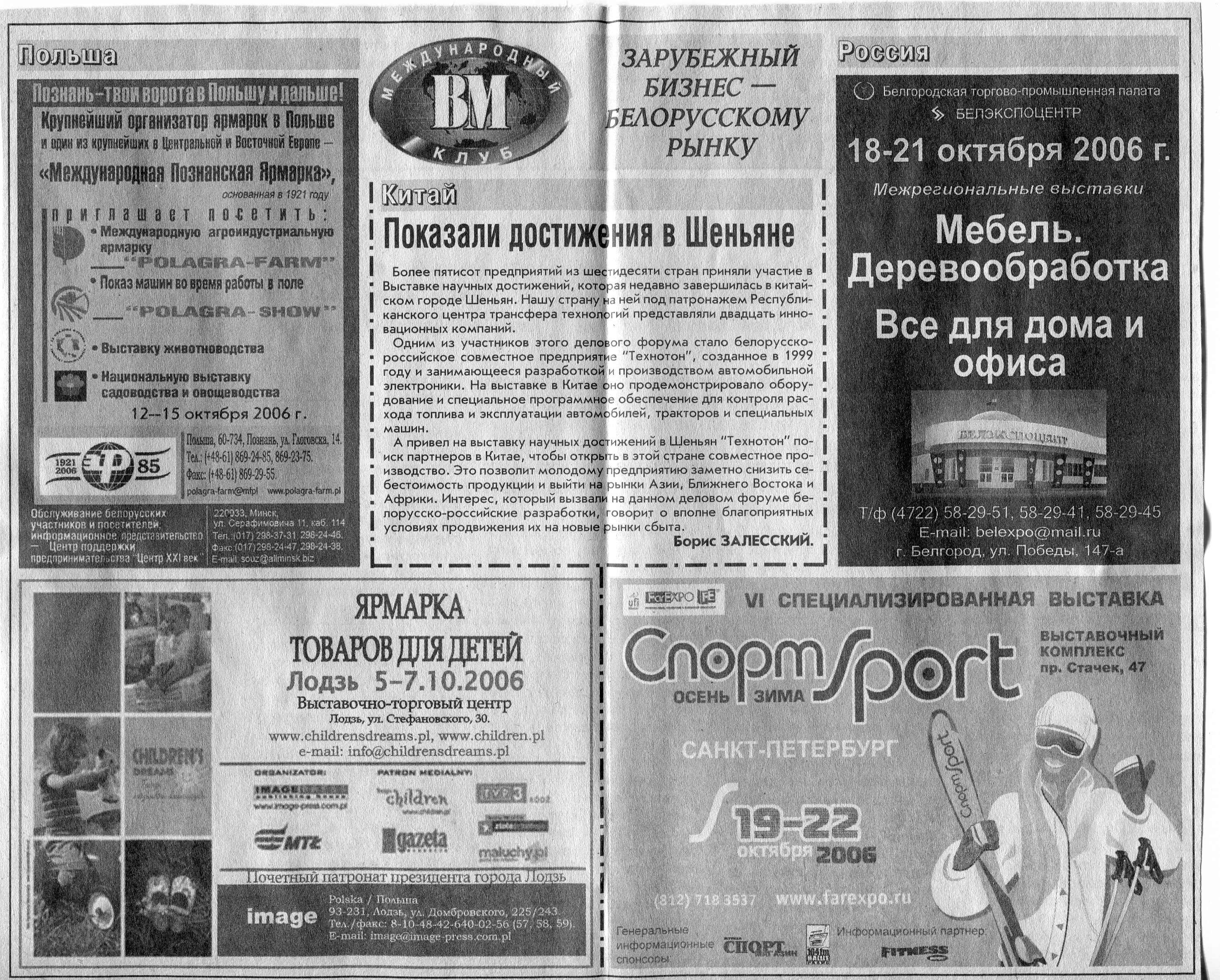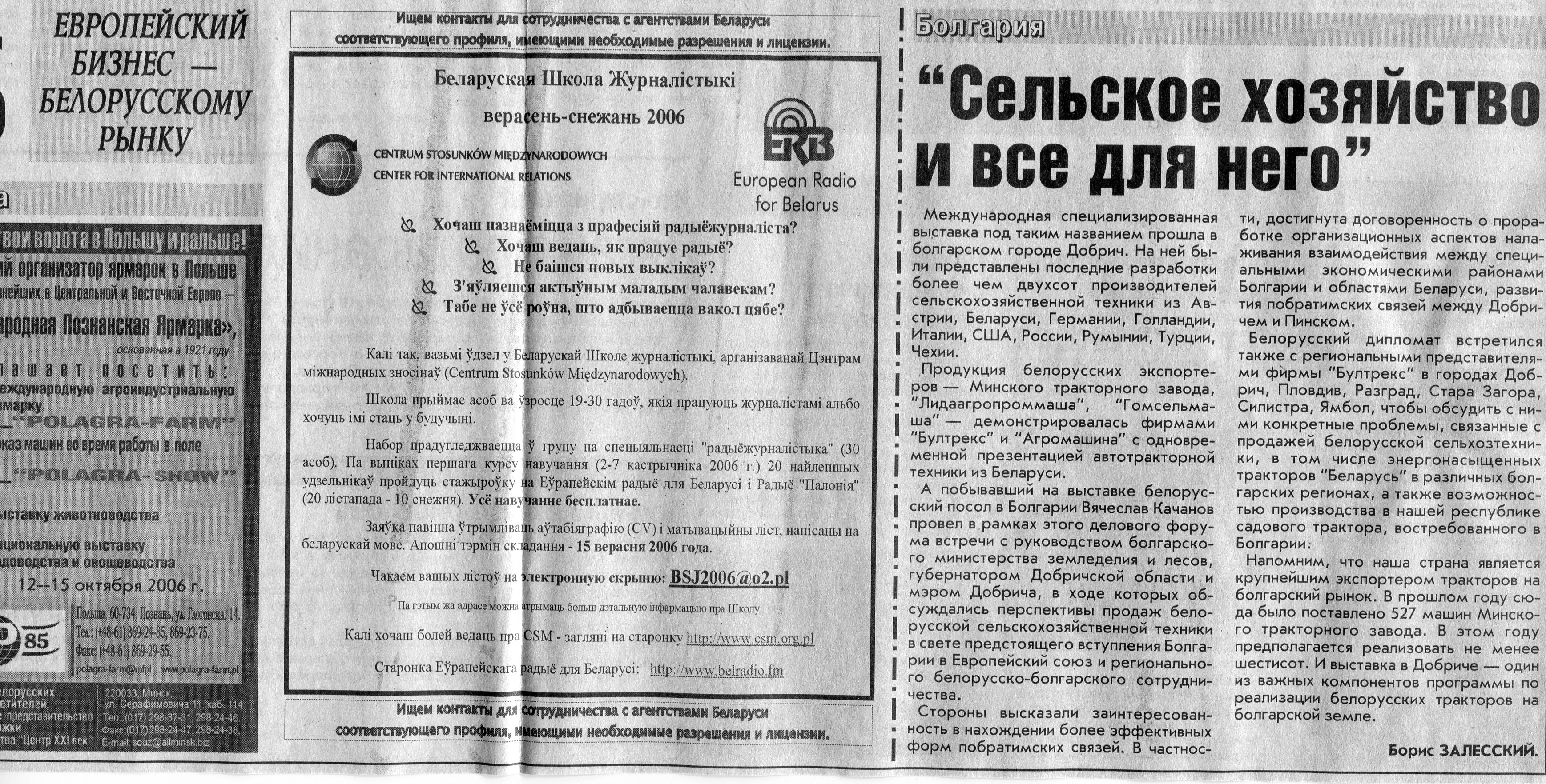 Европейский бизнес - белорусскому рынку // Вечерний Минск. - 2006. - 6 окт.