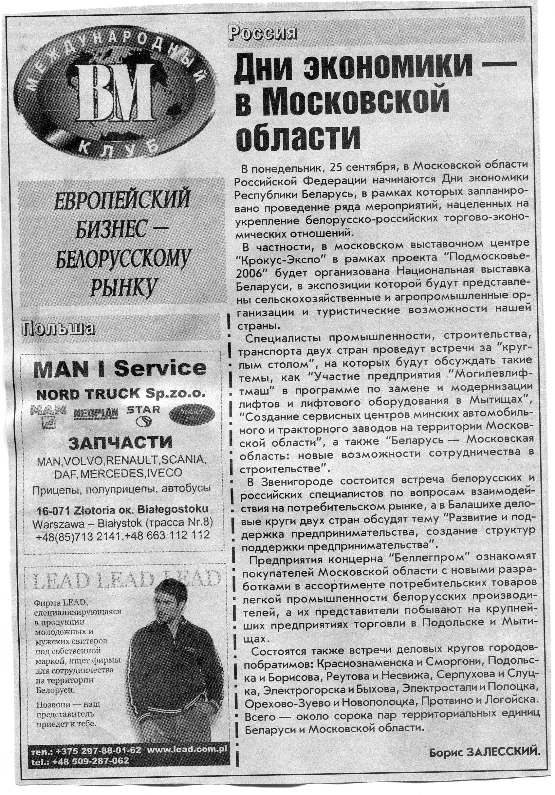 Европейский бизнес - белорусскому рынку // Вечерний Минск. - 2006. - 11 сент.