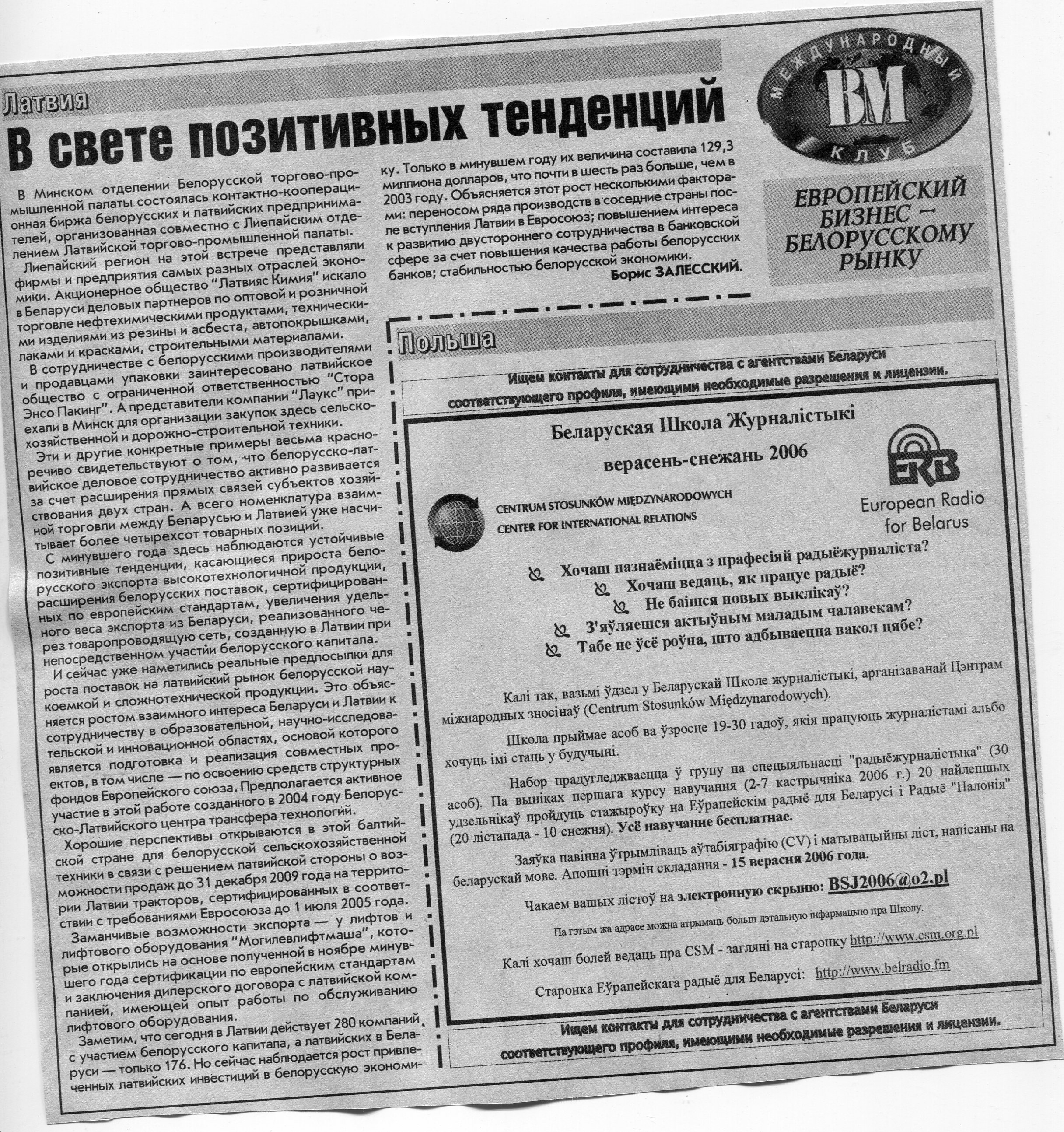Европейский бизнес - белорусскому рынку // Вечерний Минск. - 2006. - 20 сент.