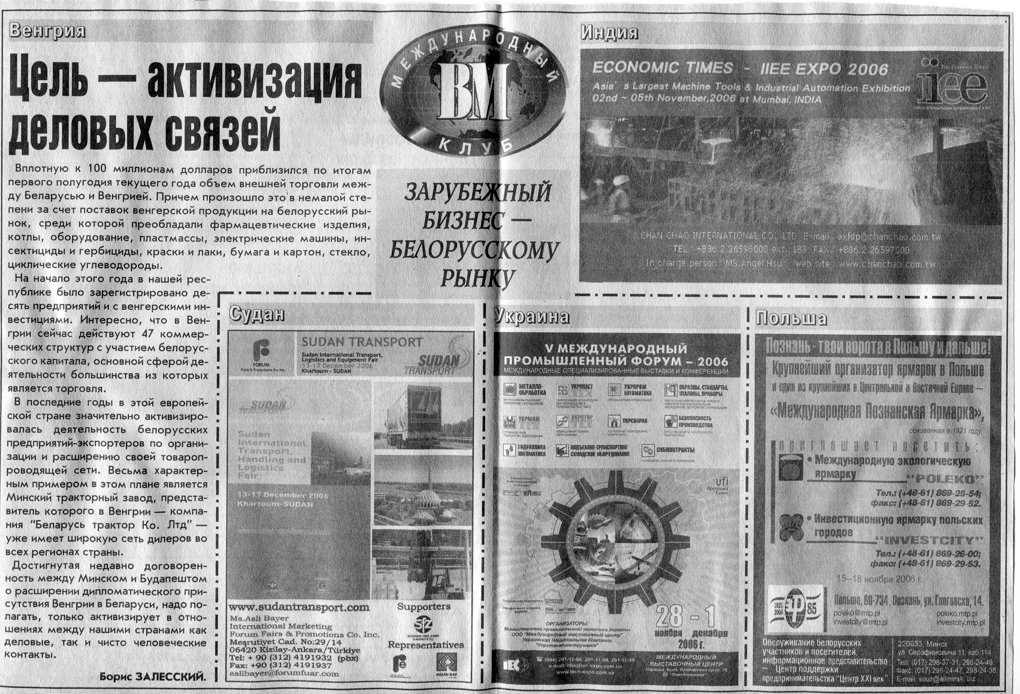 Зарубежный бизнес - белорусскому рынку // Вечерний Минск. - 2006. - 13 окт.