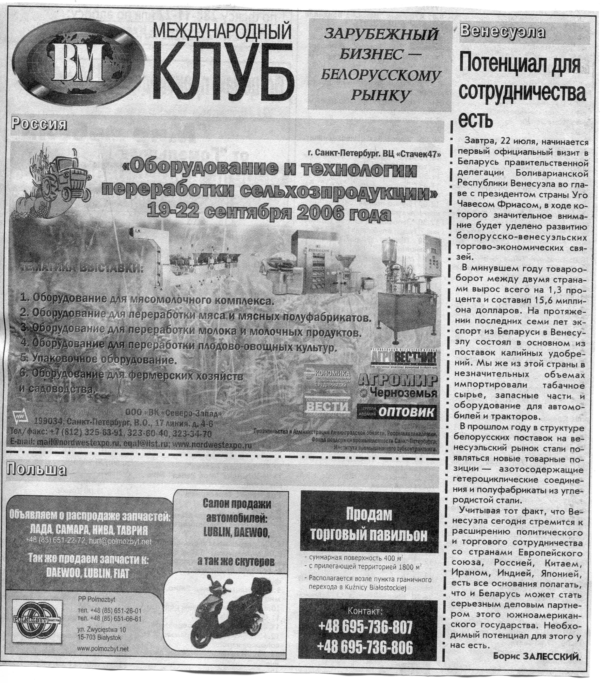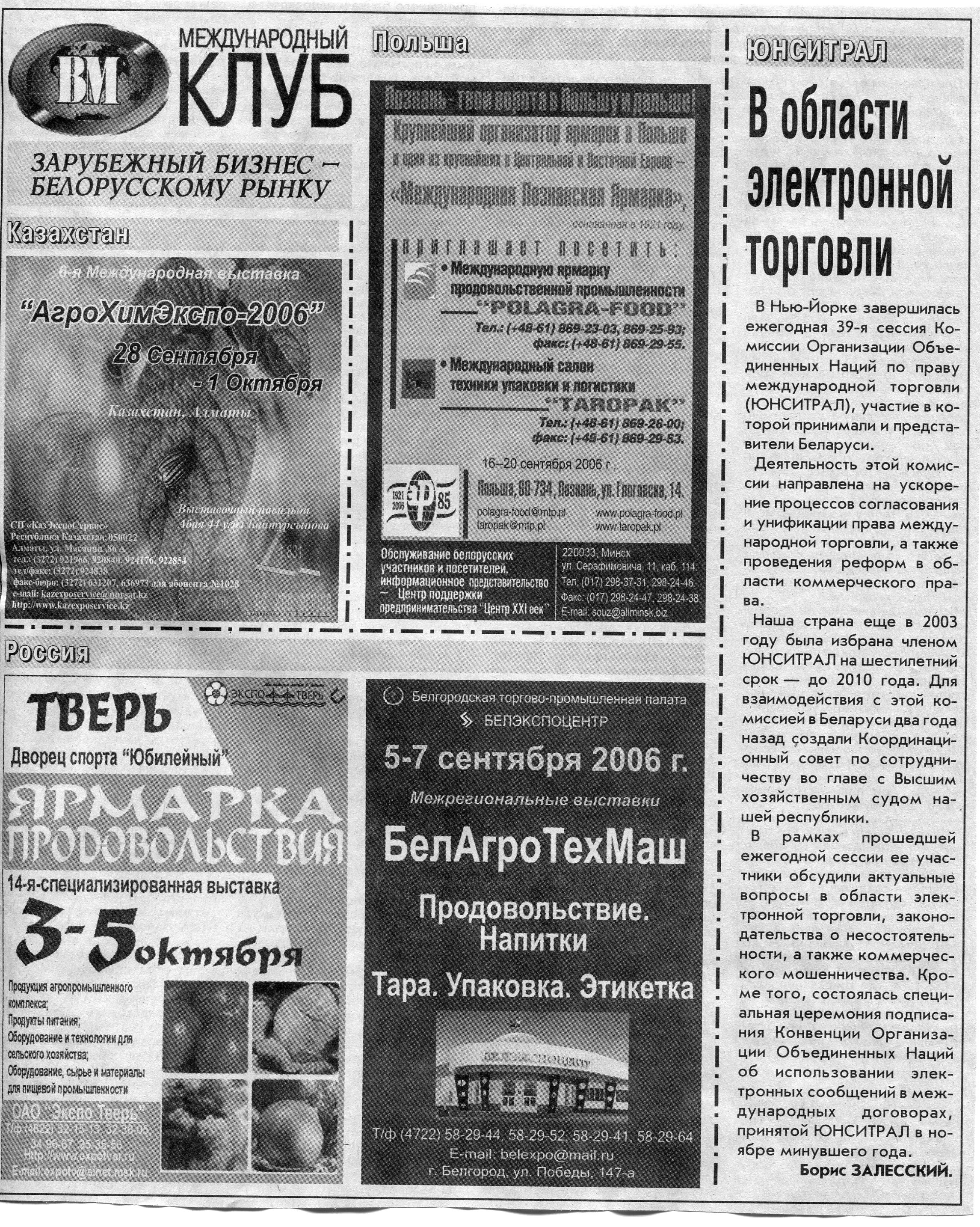 Зарубежный бизнес - белорусскому рынку // Вечерний Минск. - 2006. - 14 авг.