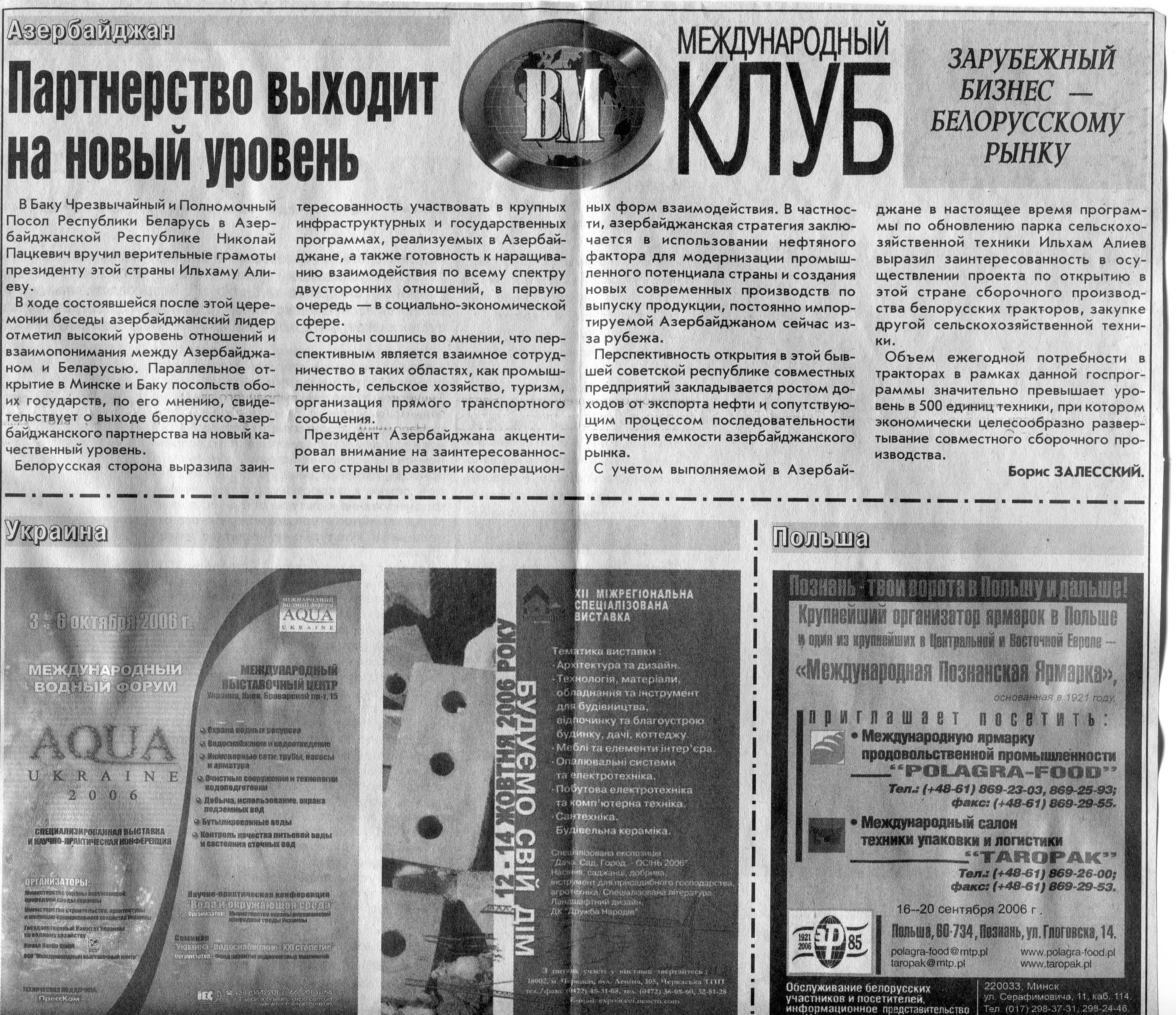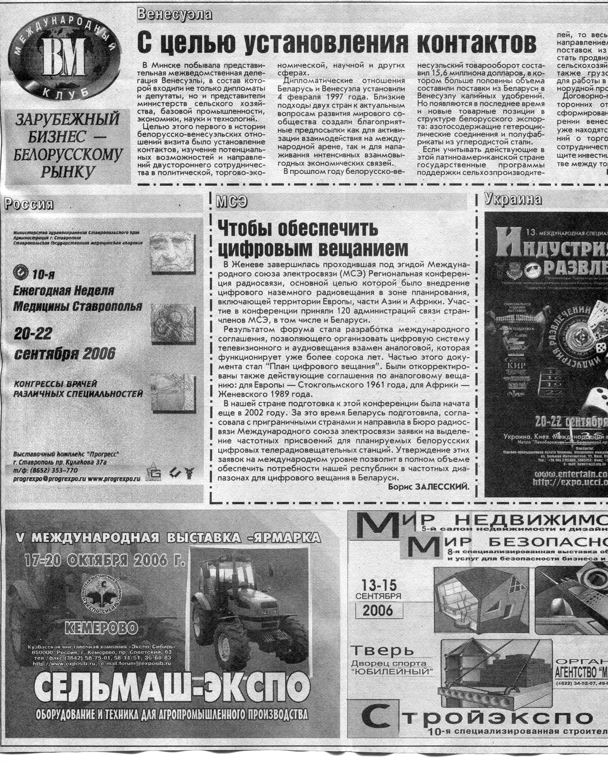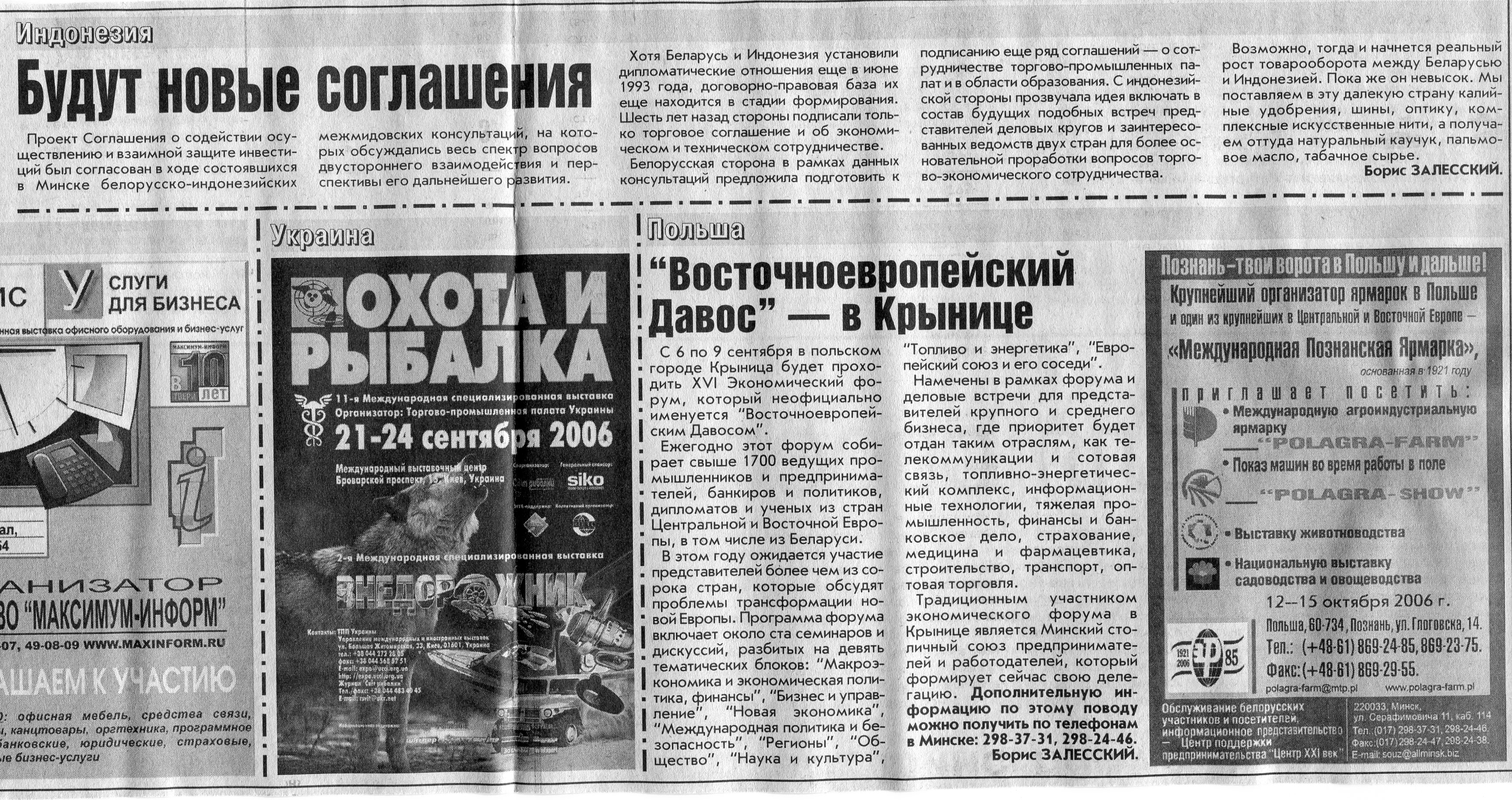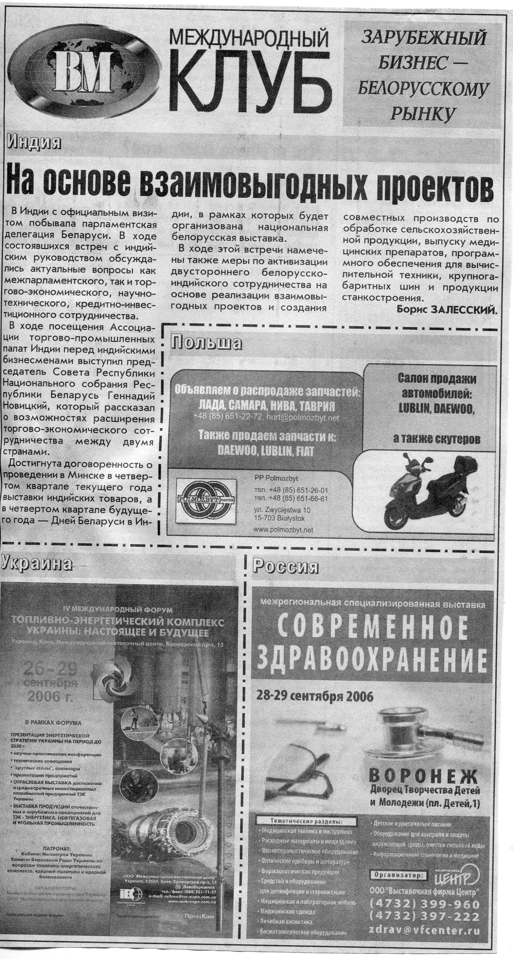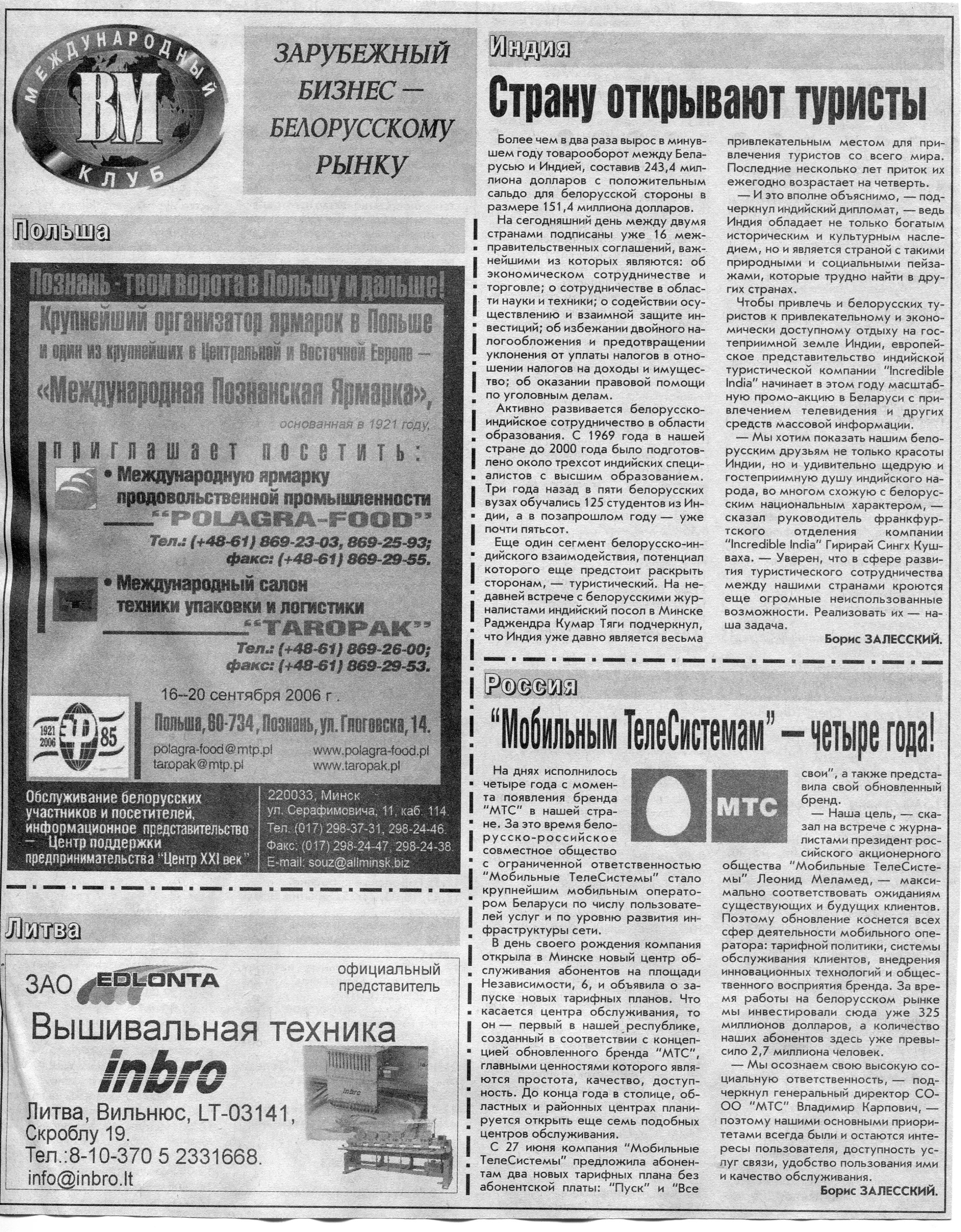Зарубежный бизнес - белорусскому рынку // Вечерний Минск. - 2006. - 21 авг.