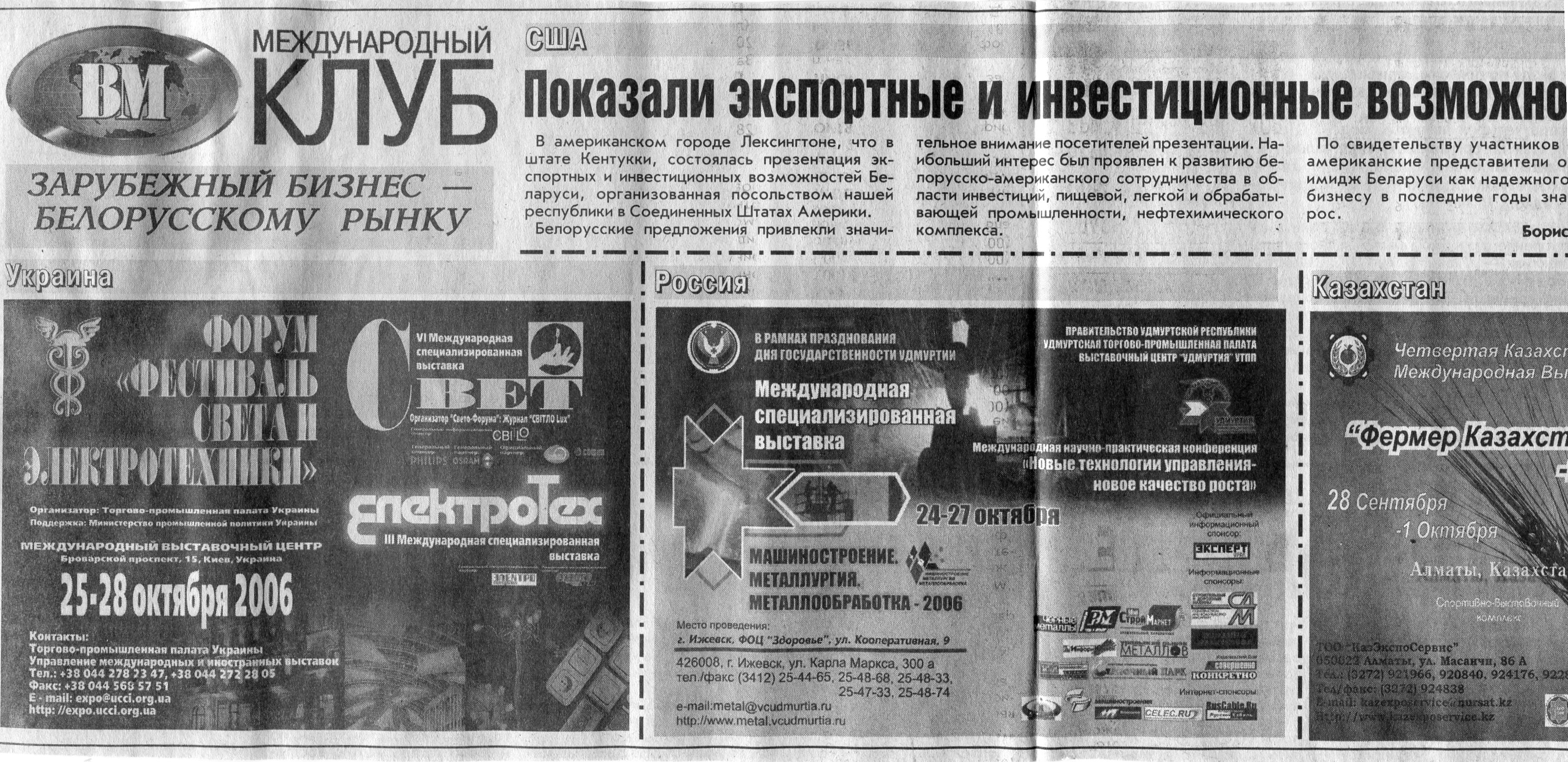 Зарубежный бизнес - белорусскому рынку // Вечерний Минск. - 2006. - 11 июл.
