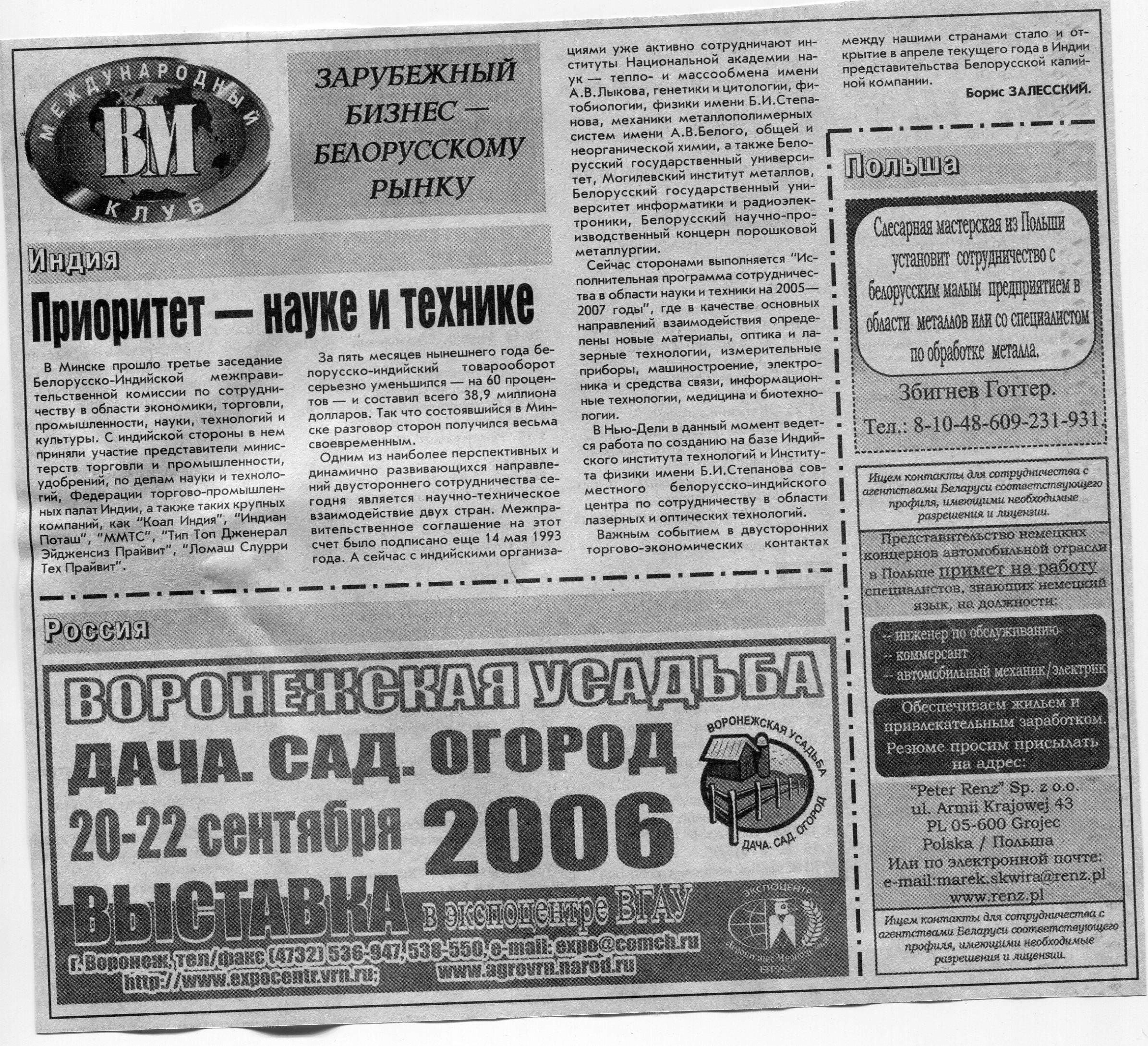 Зарубежный бизнес - белорусскому рынку // Вечерний Минск. - 2006. - 10 авг.