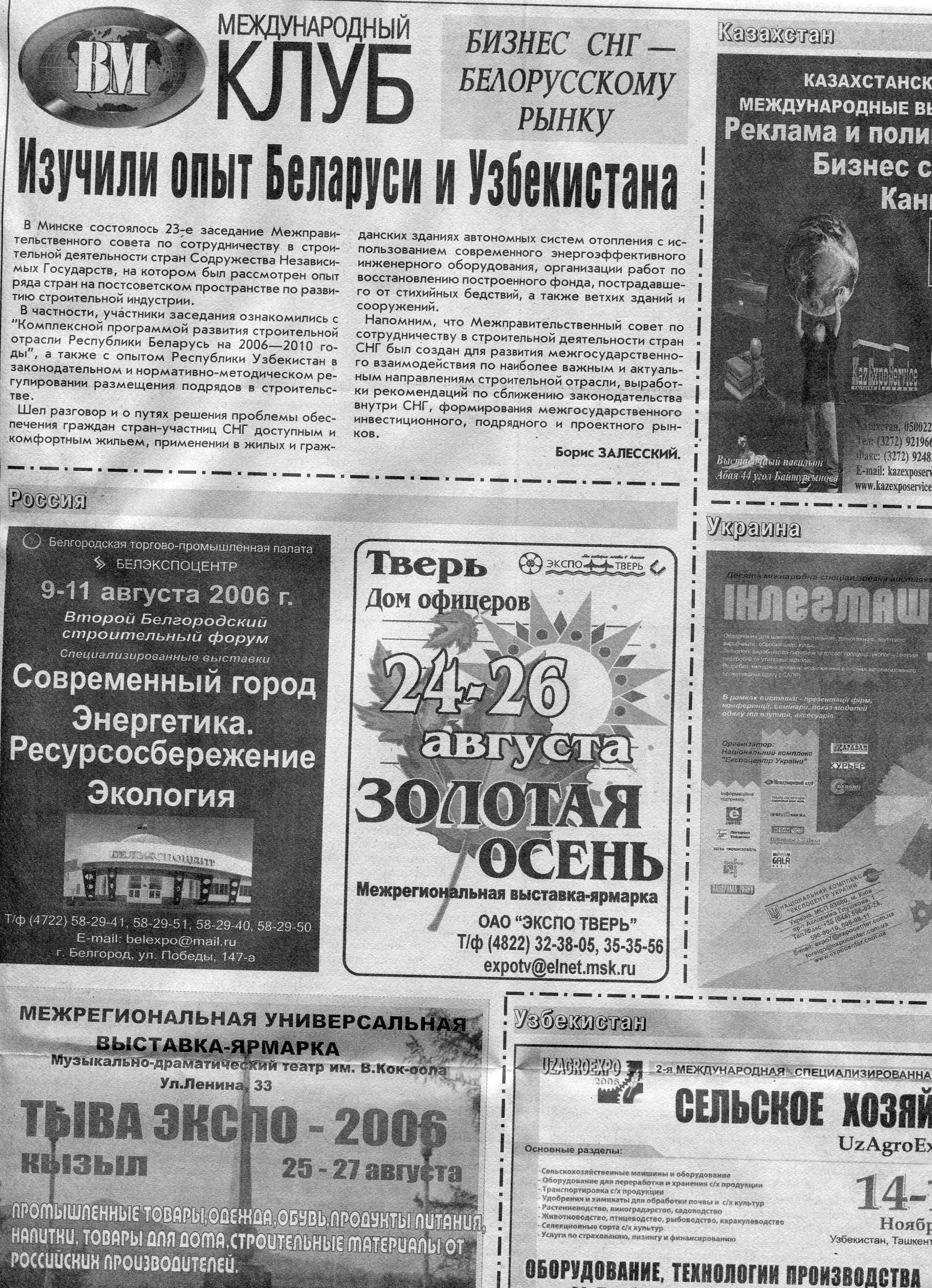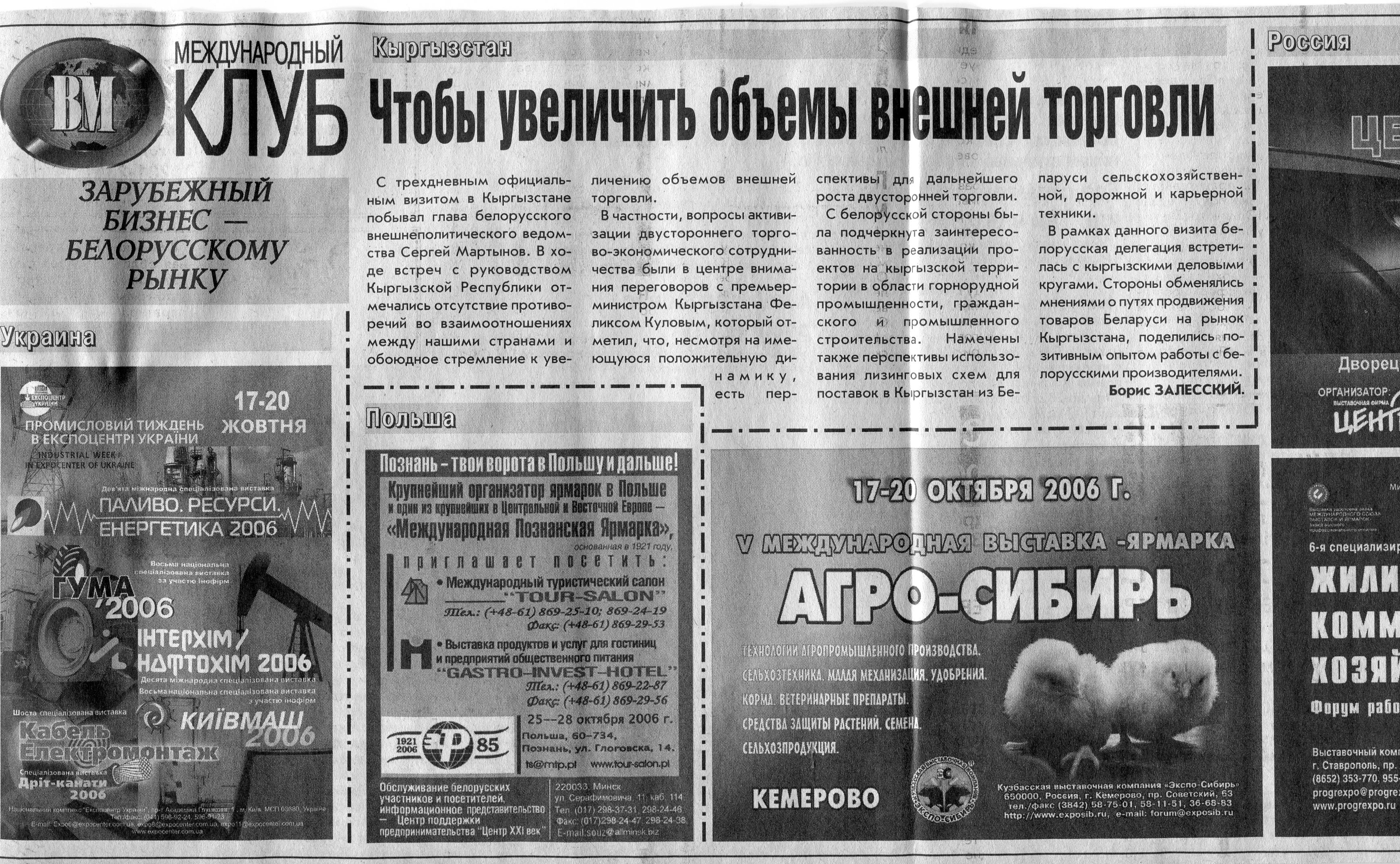 Бизнес СНГ - белорусскому рынку // Вечерний Минск. - 2006. - 20 июл.