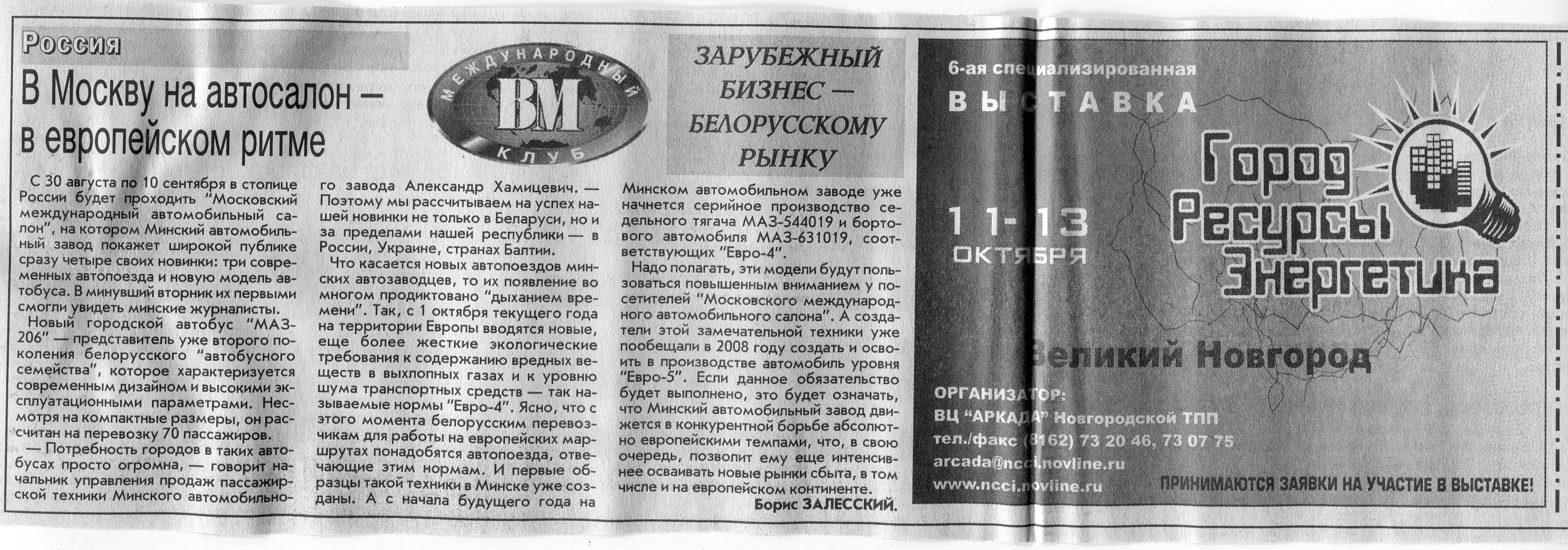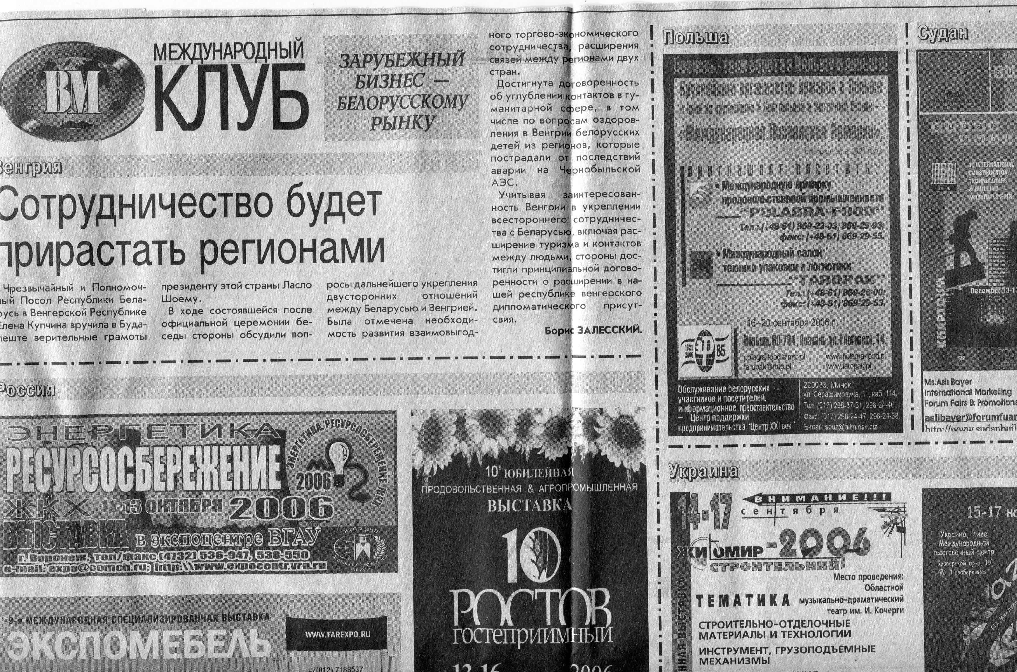 Европейский бизнес - белорусскому рынку // Вечерний Минск. - 2006. - 18 авг.
