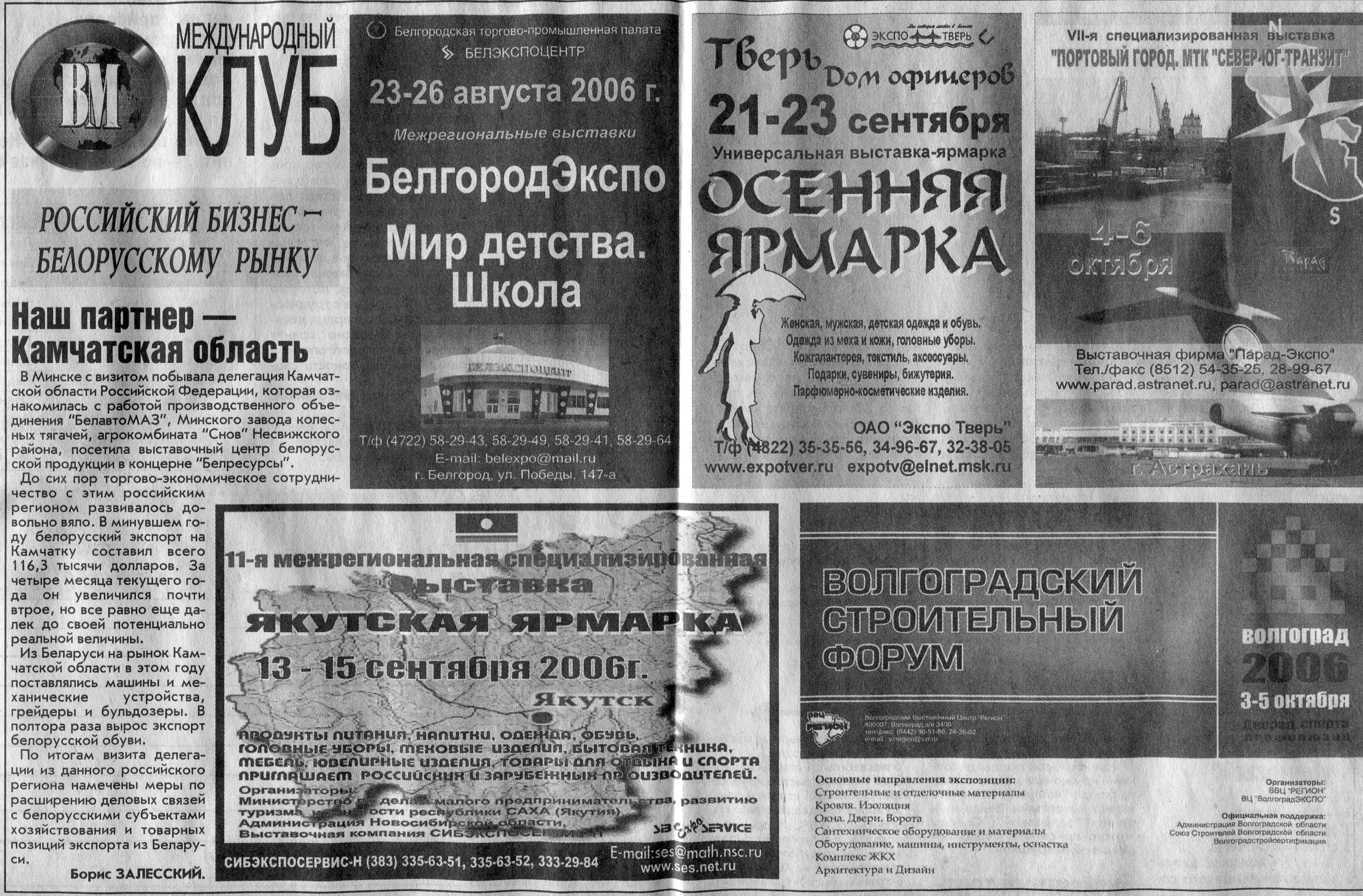 Российский бизнес - белорусскому рынку // Вечерний Минск. - 2006. - 13 июл.