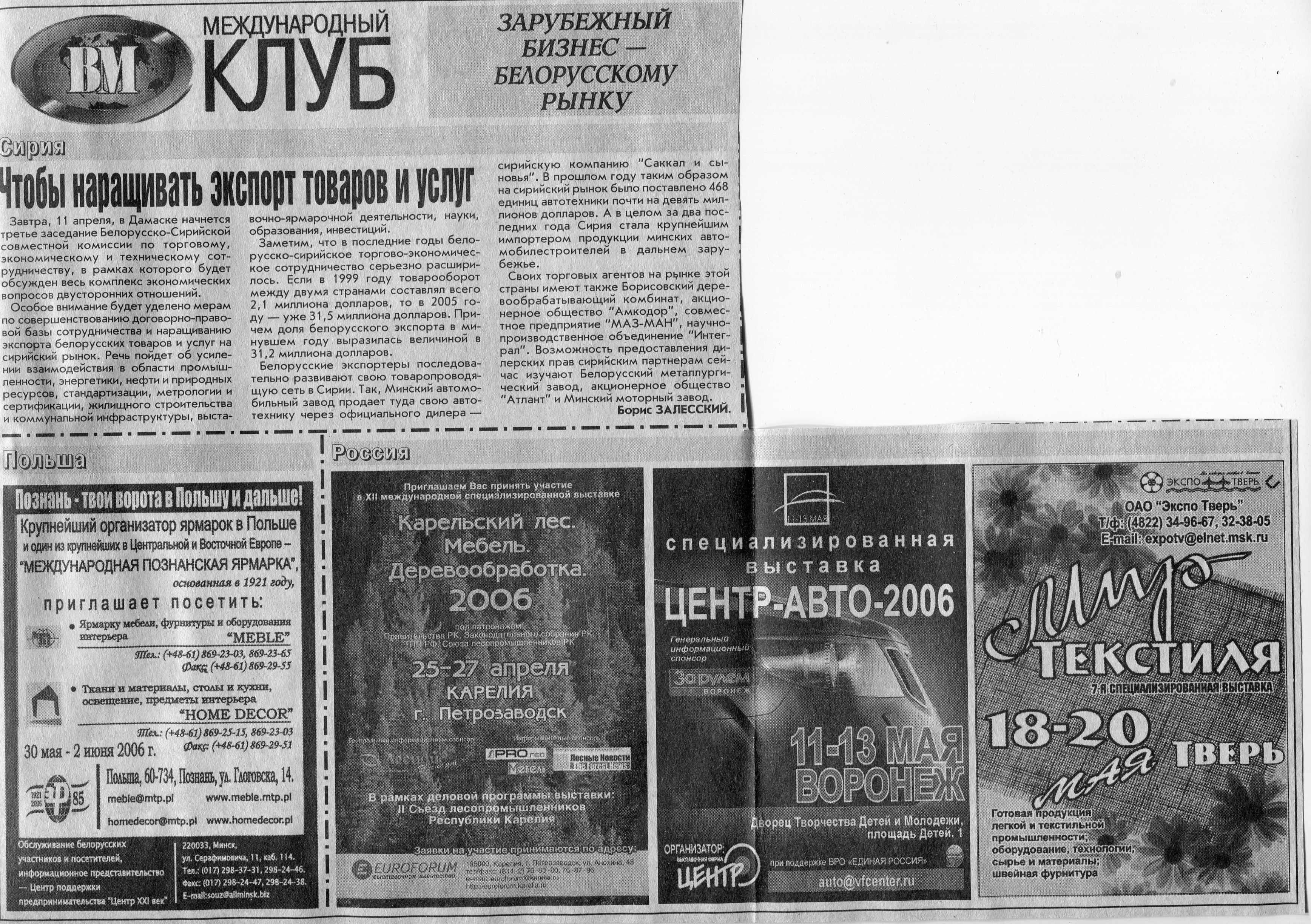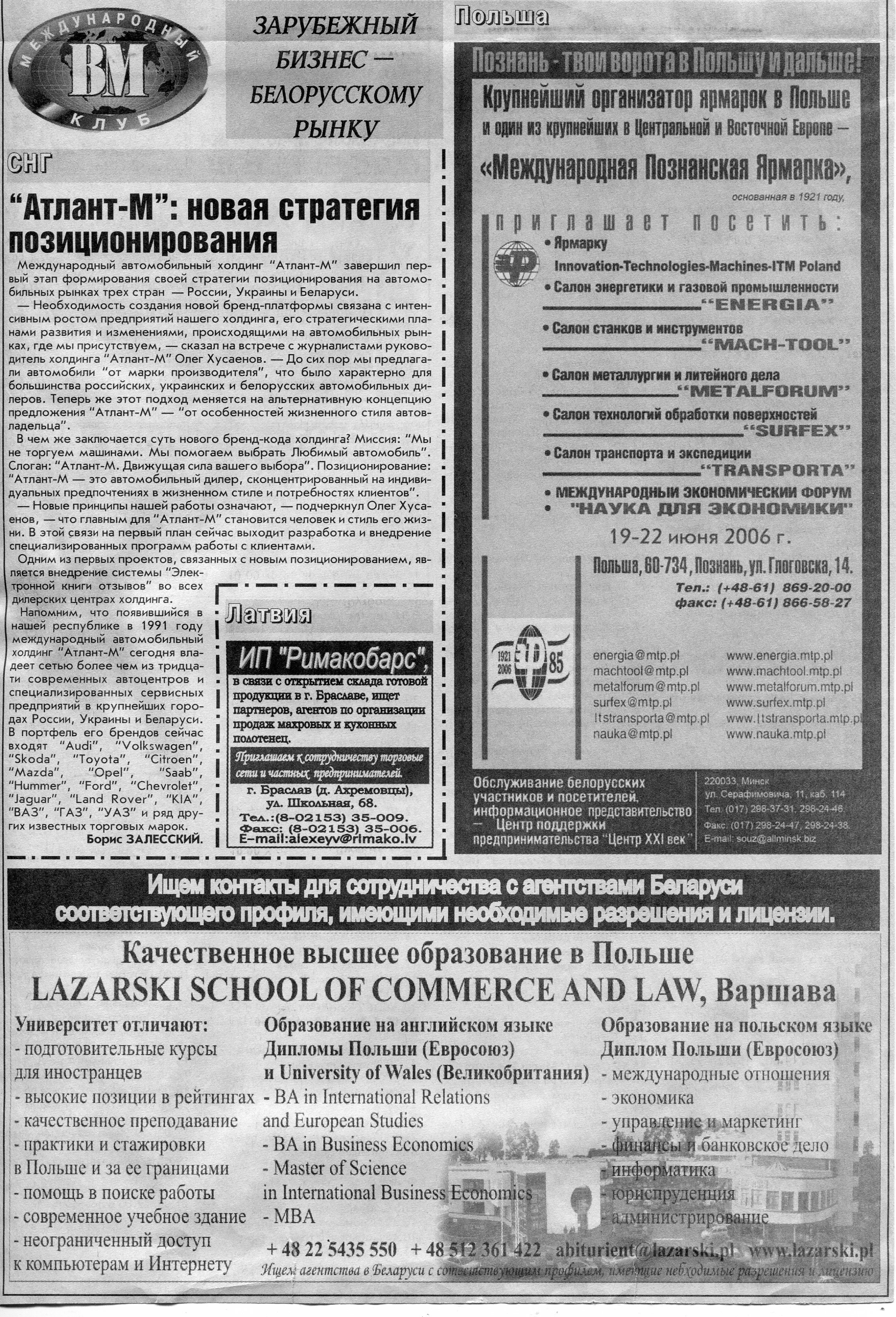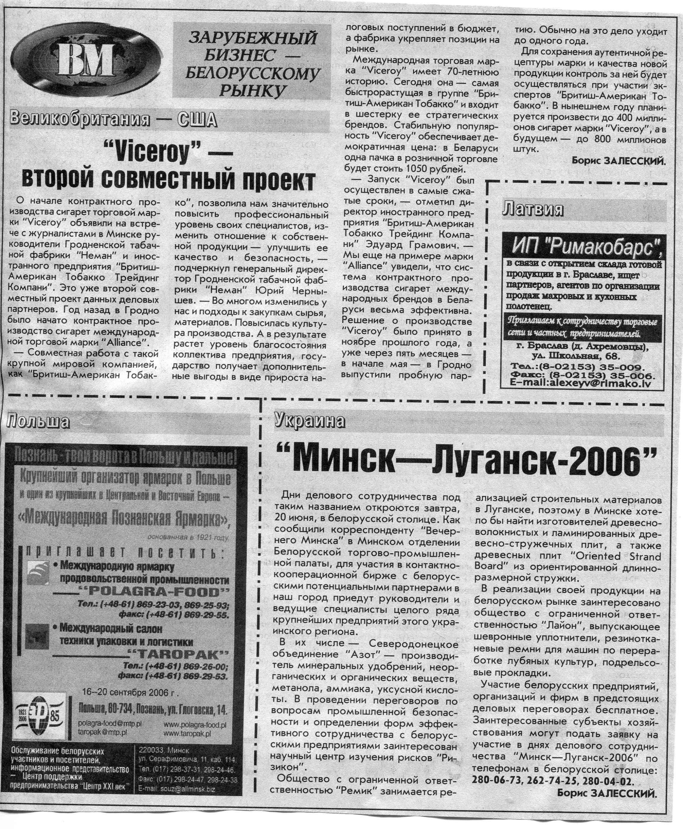 Польский бизнес - белорусскому рынку // Вечерний Минск. - 2006. - 26 мая.