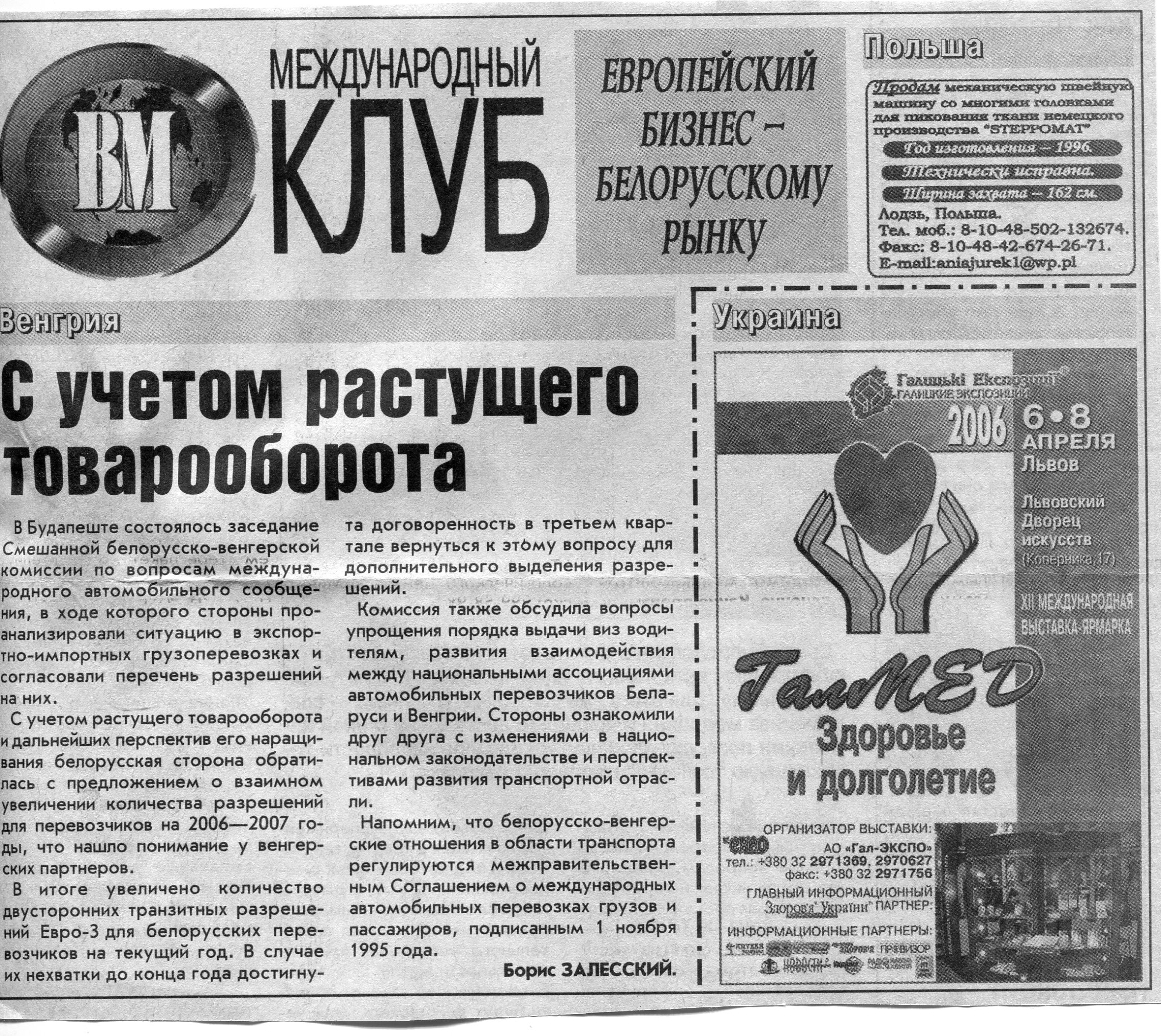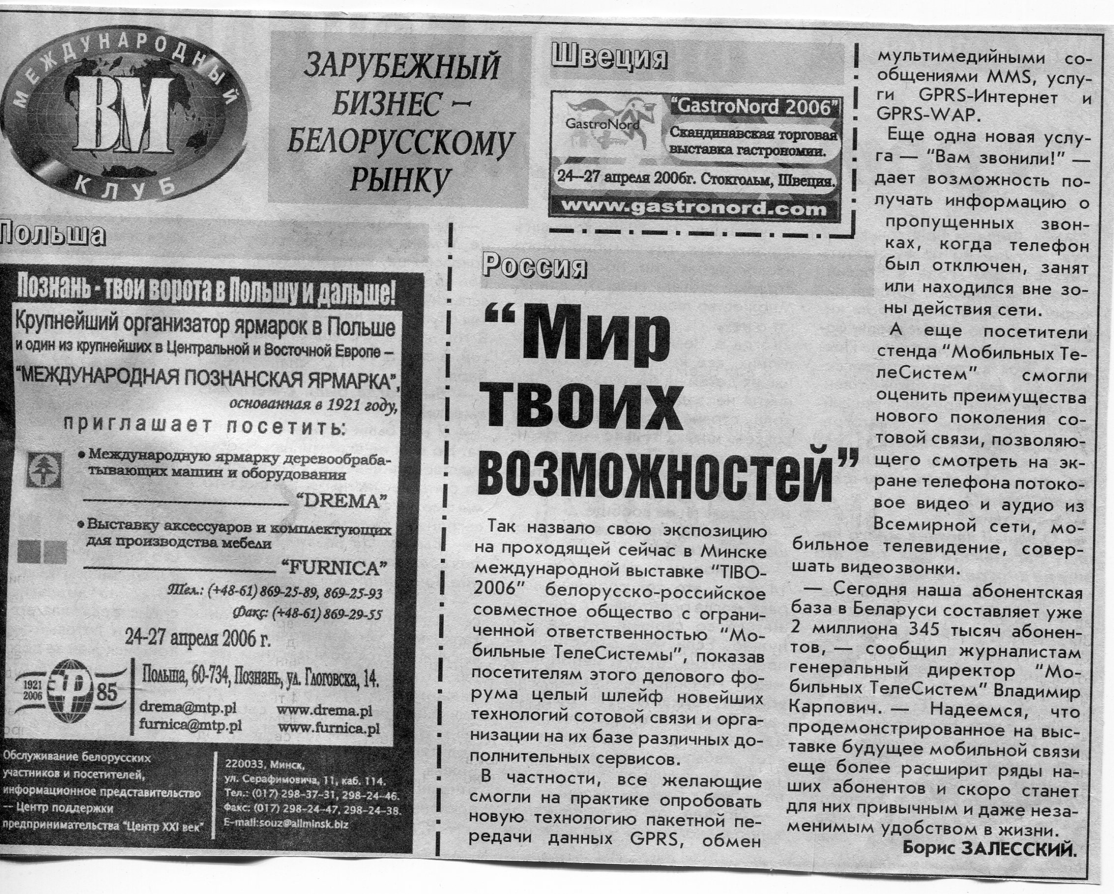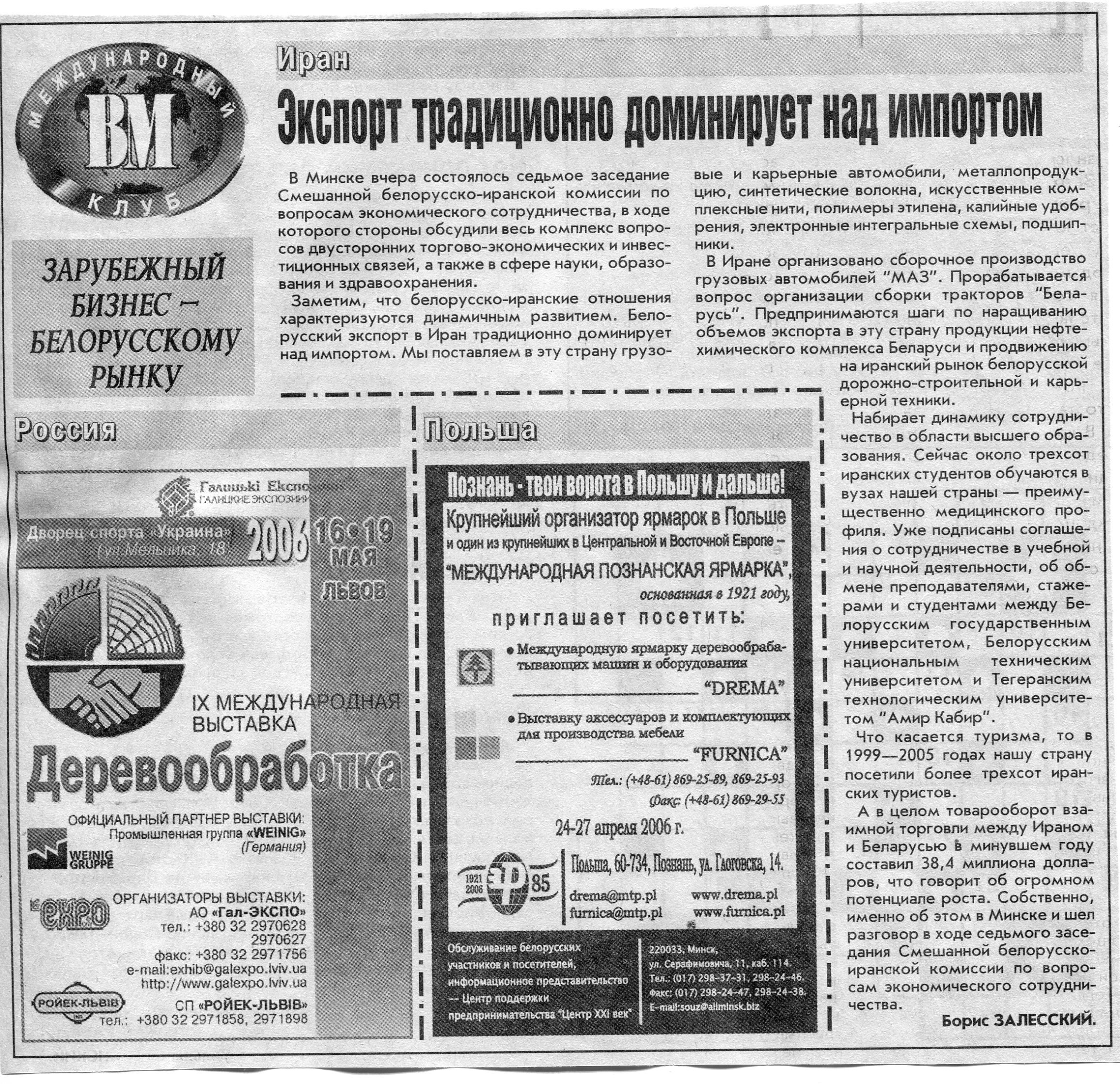 Польский бизнес - белорусскому рынку // Вечерний Минск. - 2006. - 26 мая.