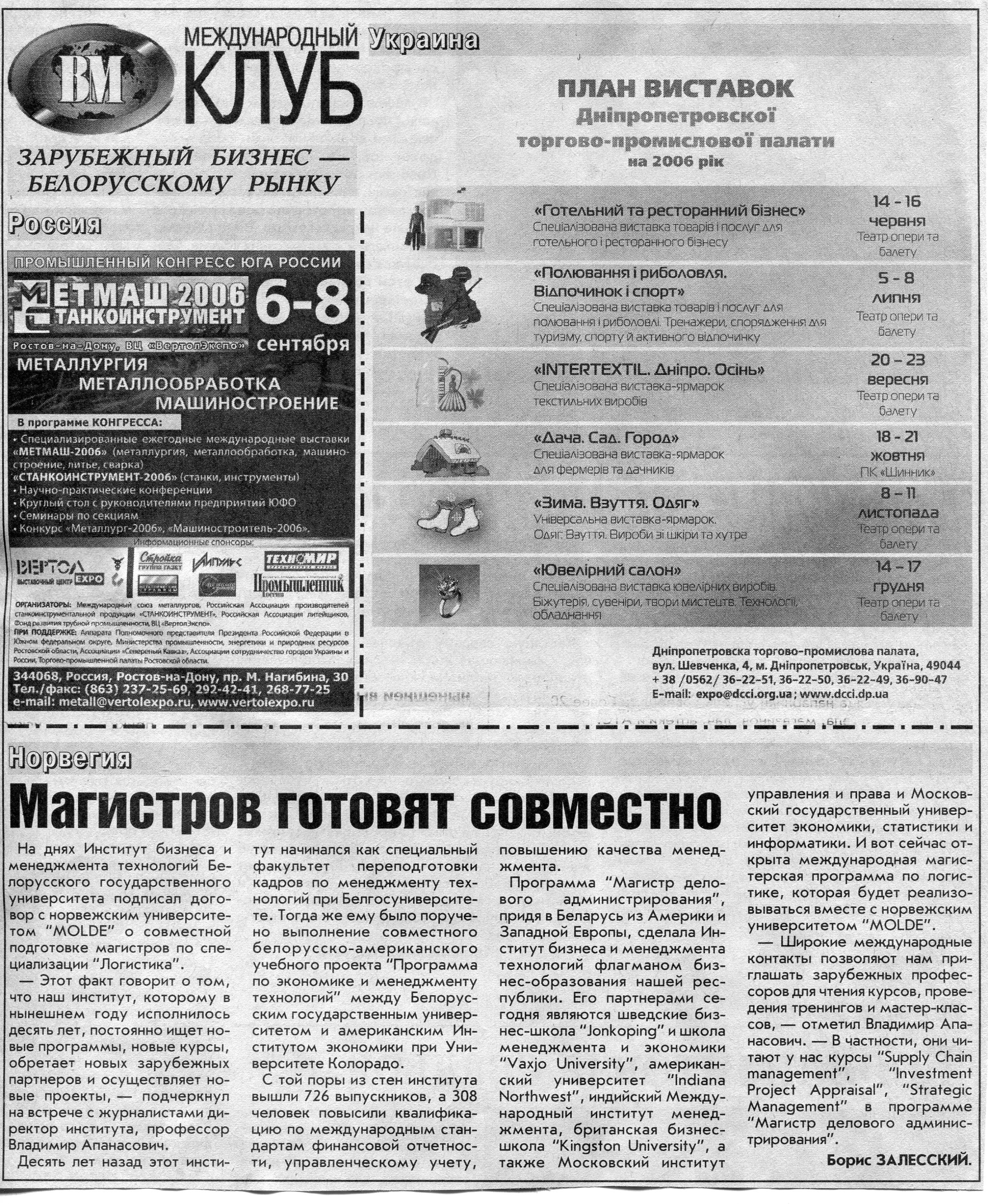 Европейский бизнес - белорусскому рынку // Вечерний Минск. - 2006. - 19 мая.