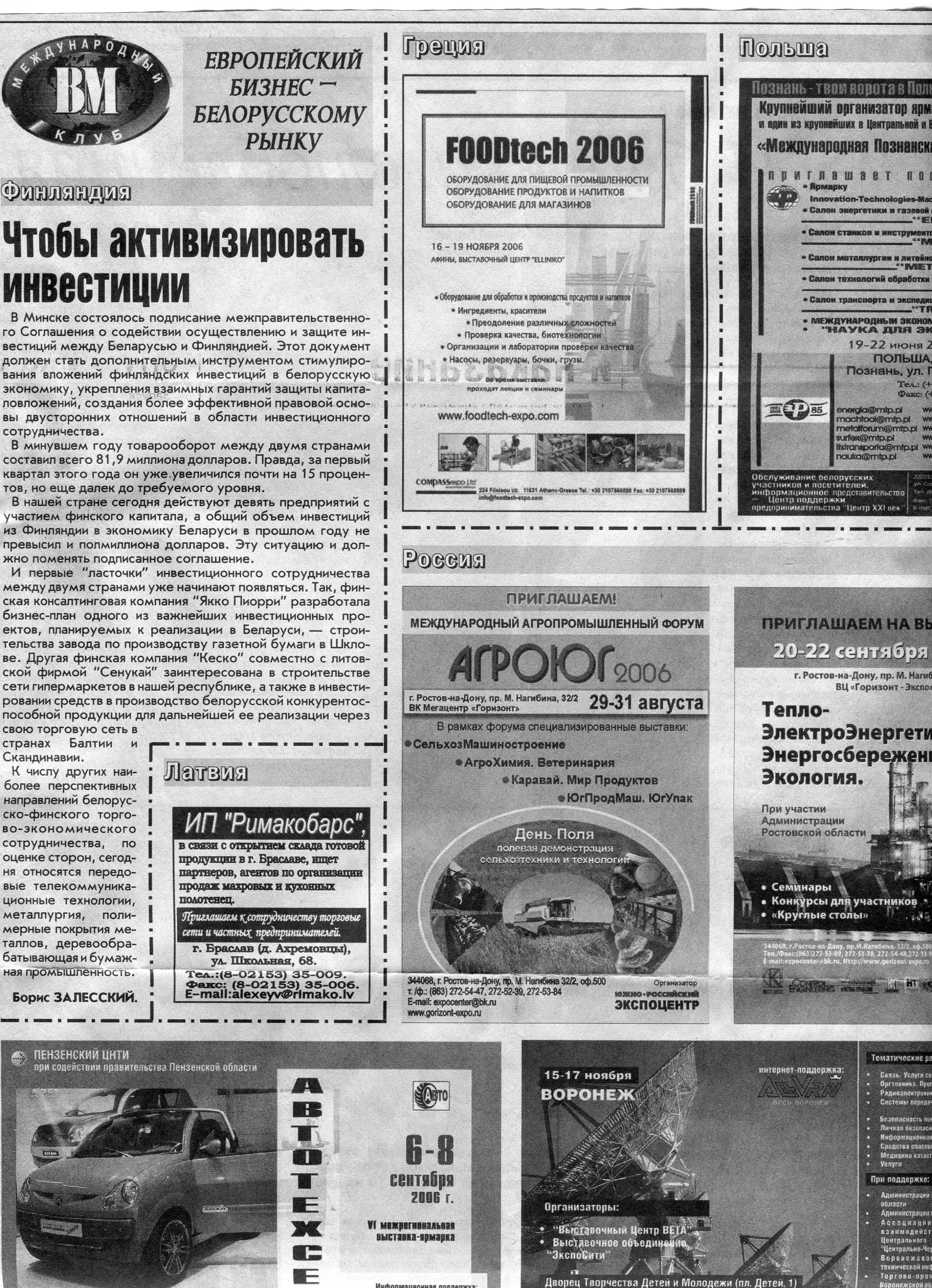 Европейский бизнес - белорусскому рынку // Вечерний Минск. - 2006. - 23 июн.