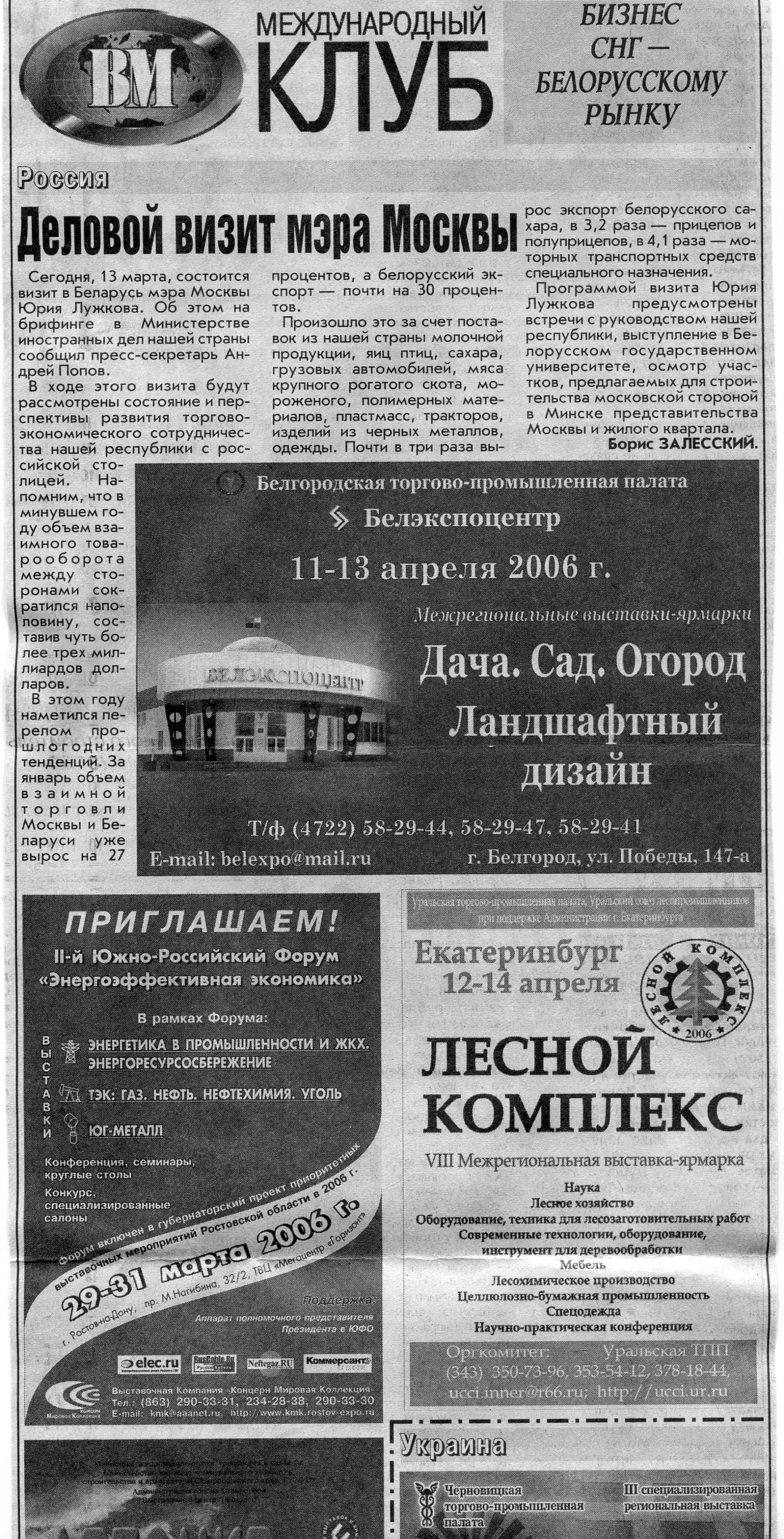 Бизнес СНГ - белорусскому рынку // Вечерний Минск. - 2006. - 13 мар.