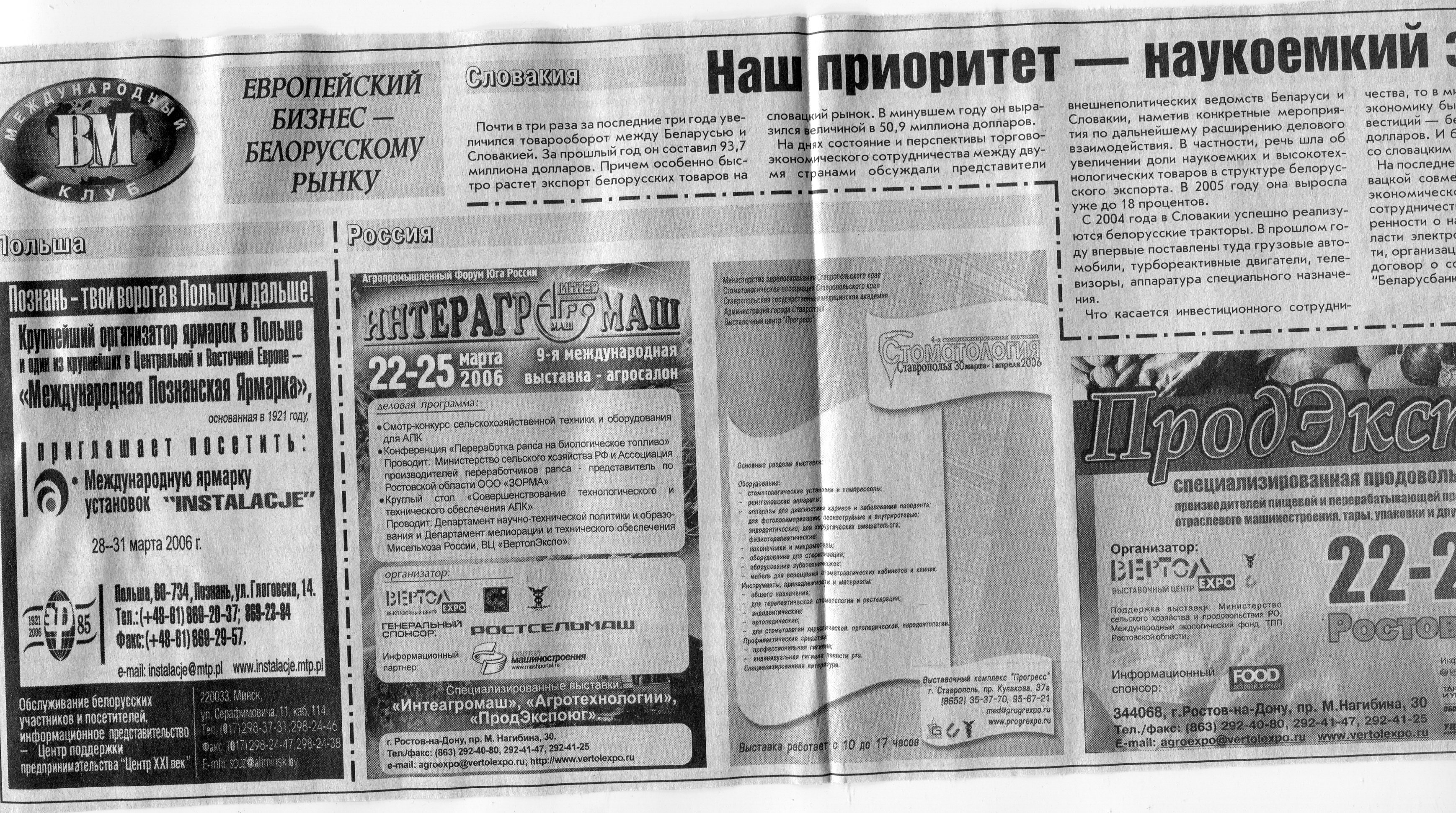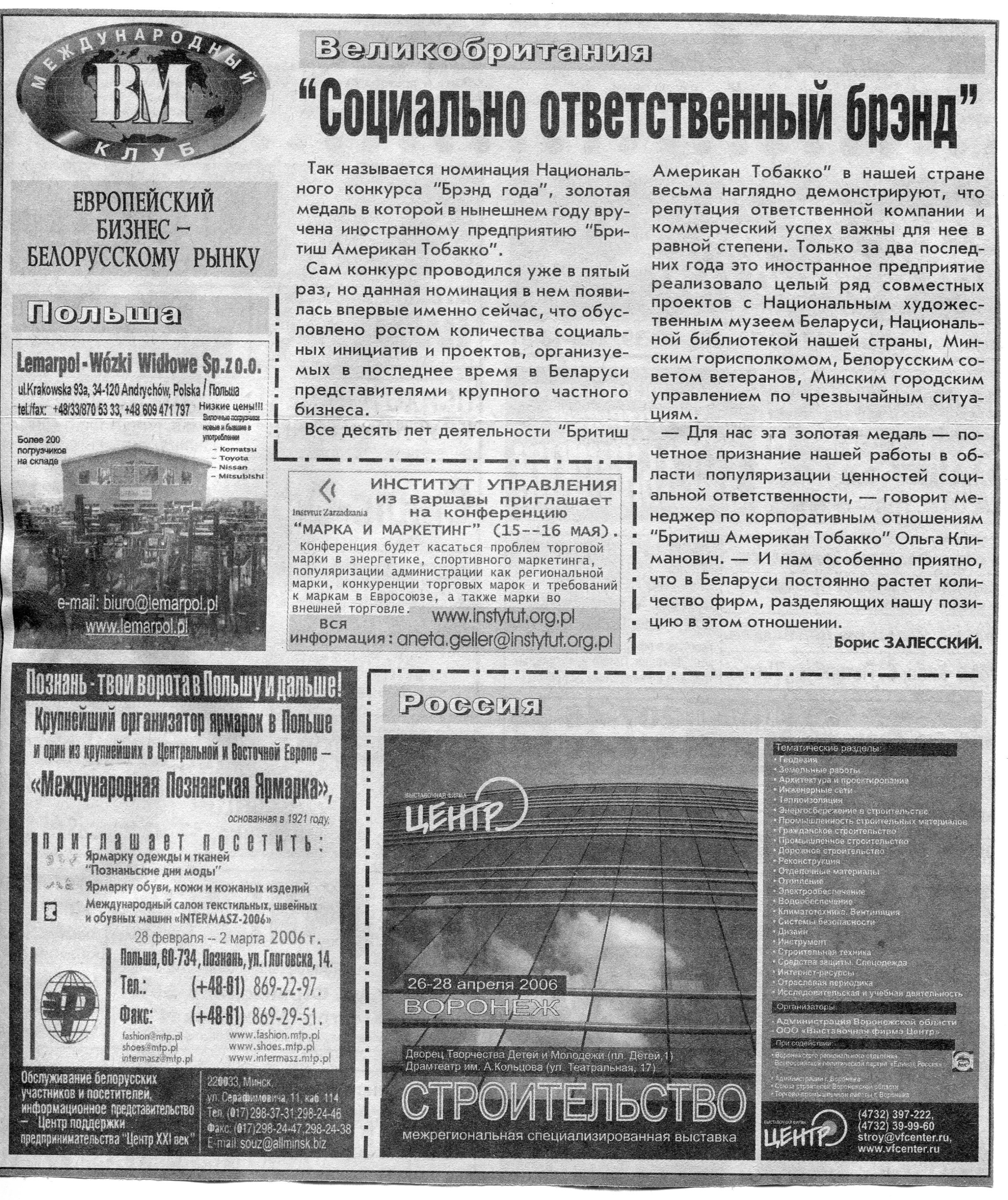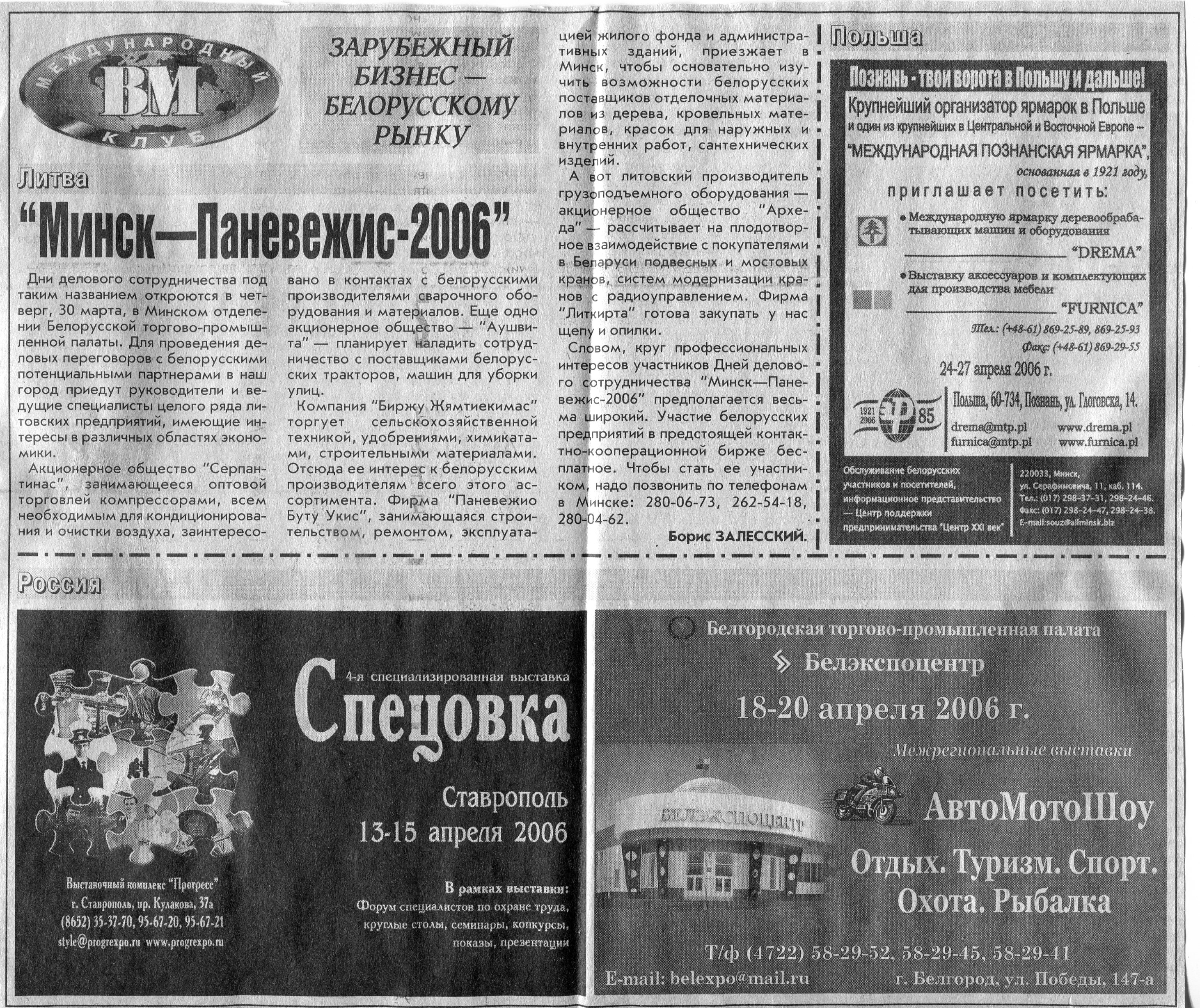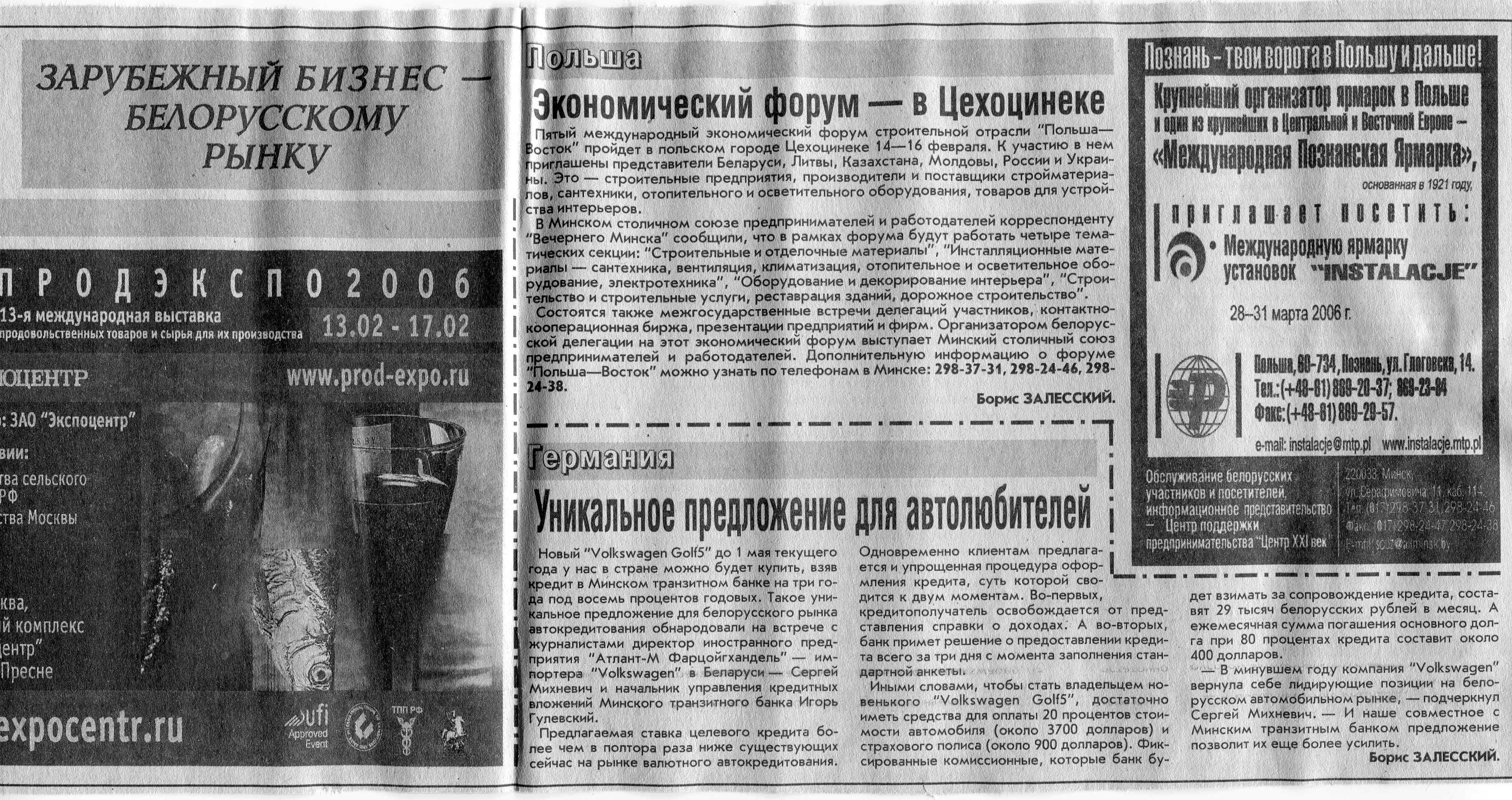 Европейский бизнес - белорусскому рынку // Вечерний Минск. - 2006. - 20 мар.
