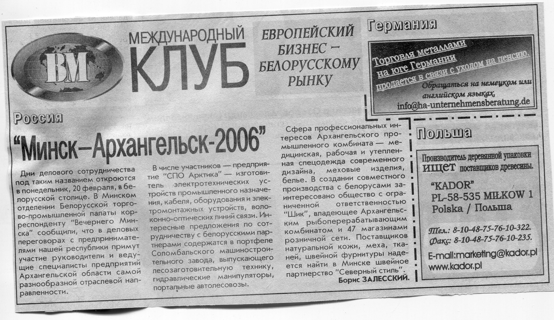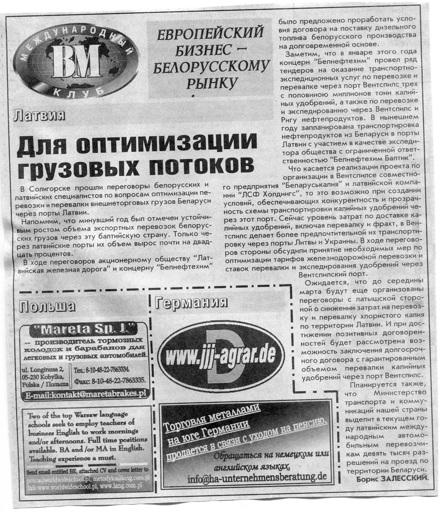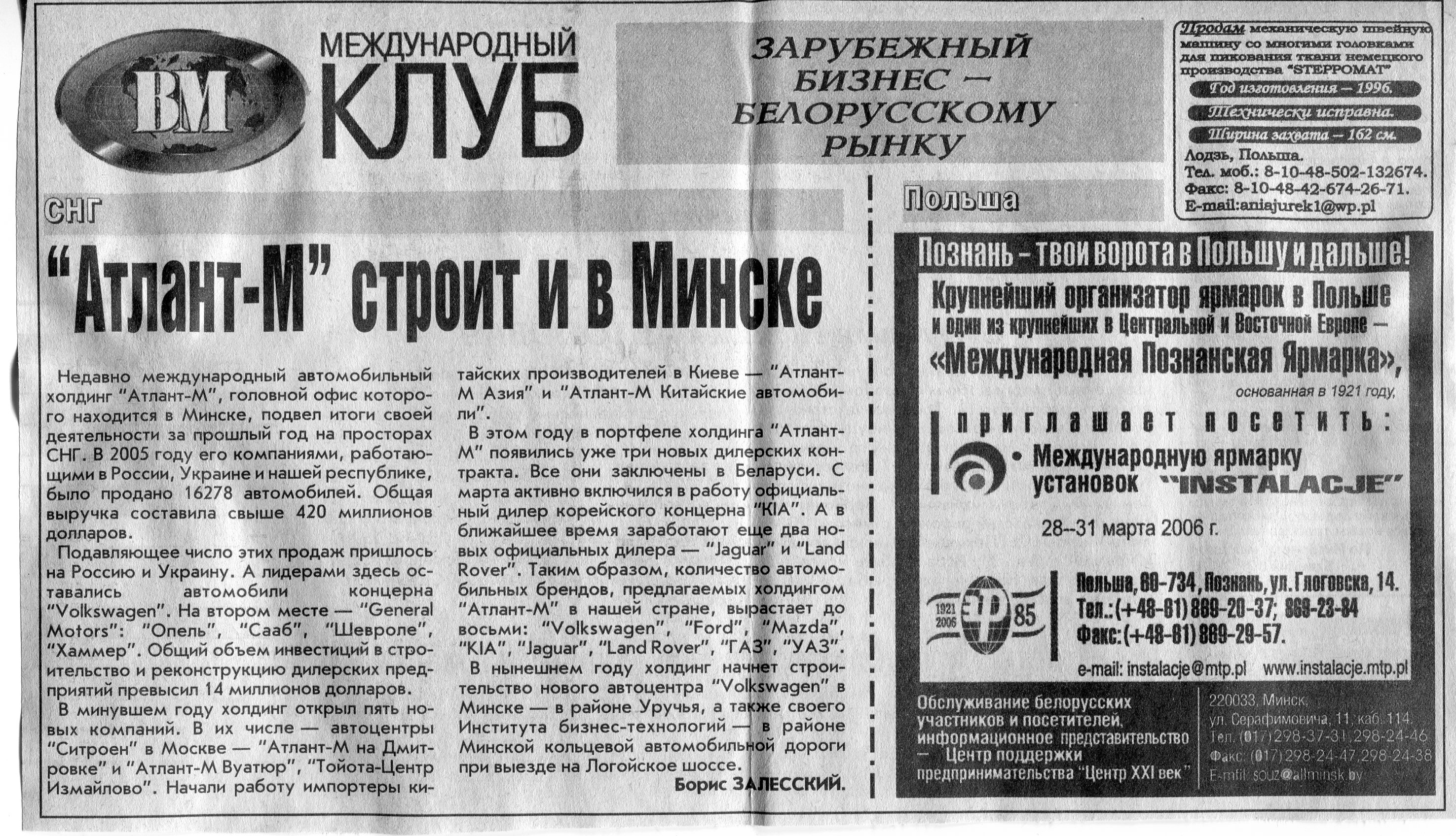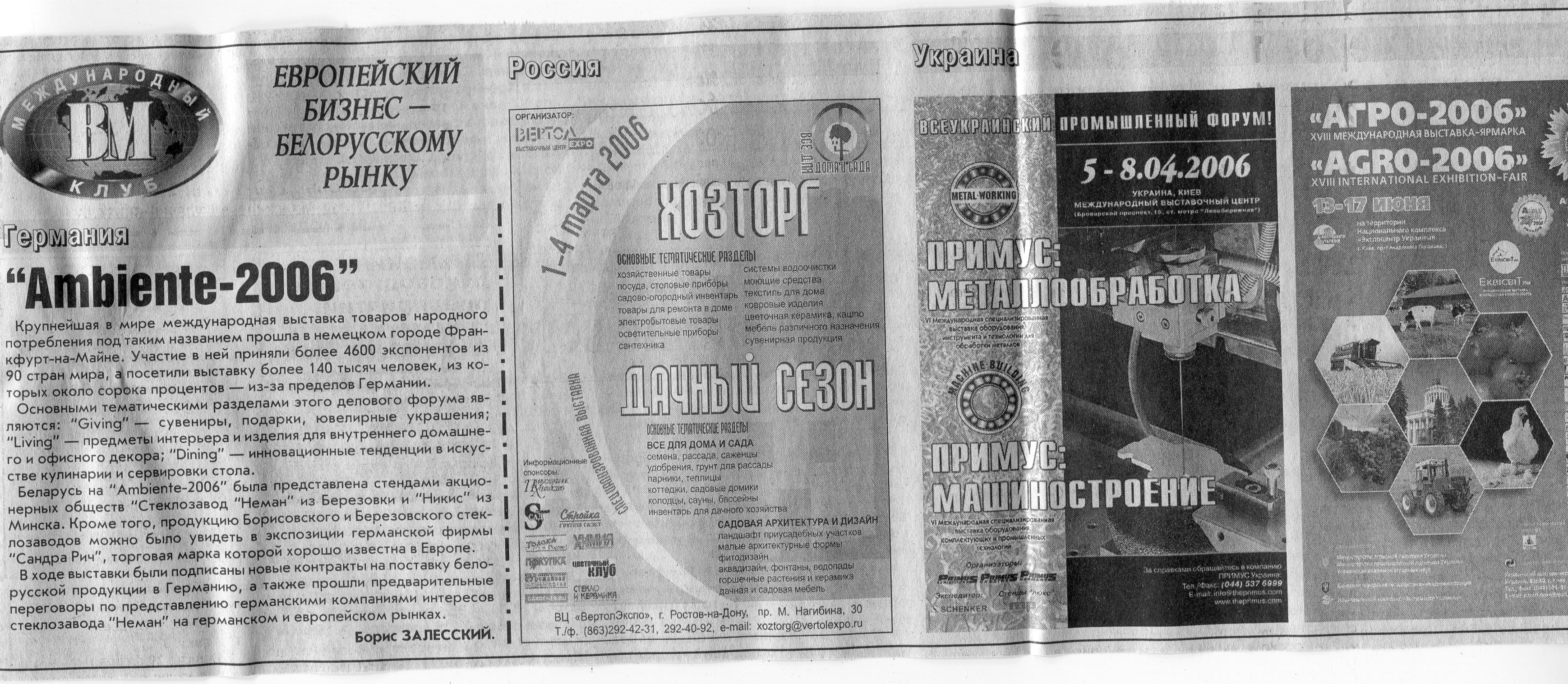 Европейский бизнес - белорусскому рынку // Вечерний Минск. - 2006. - 20 мар.