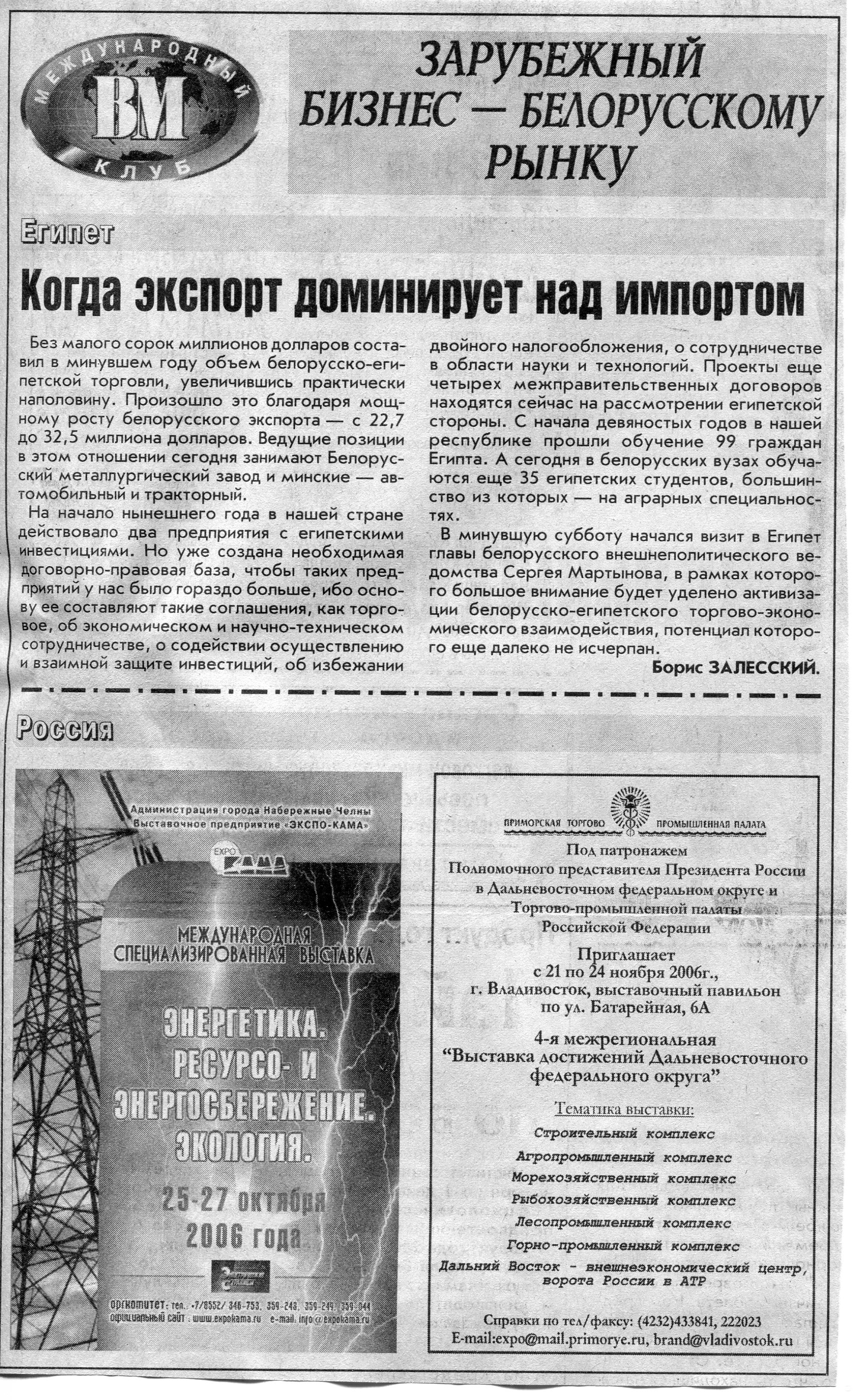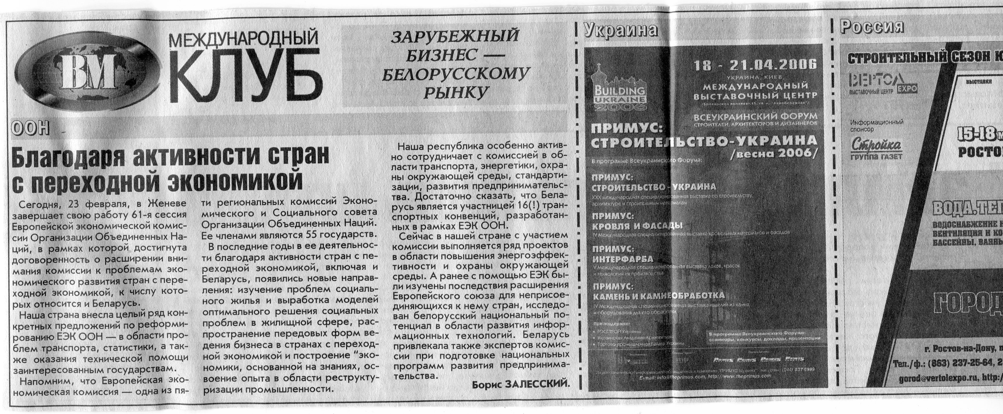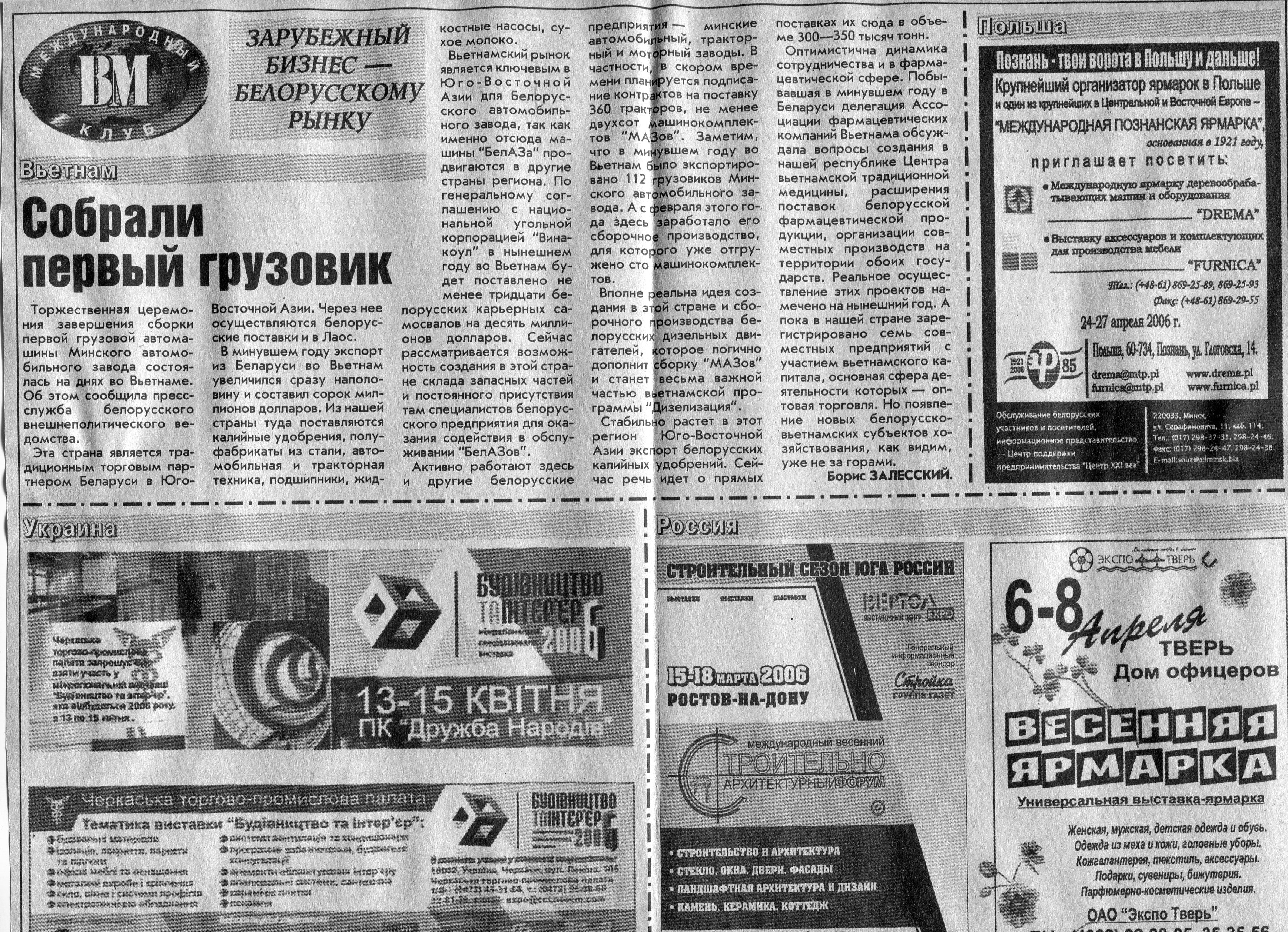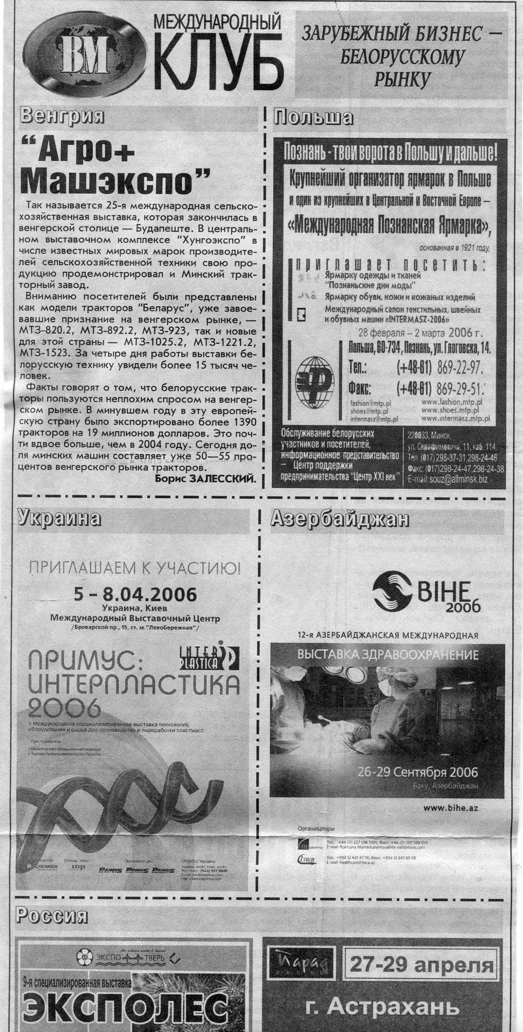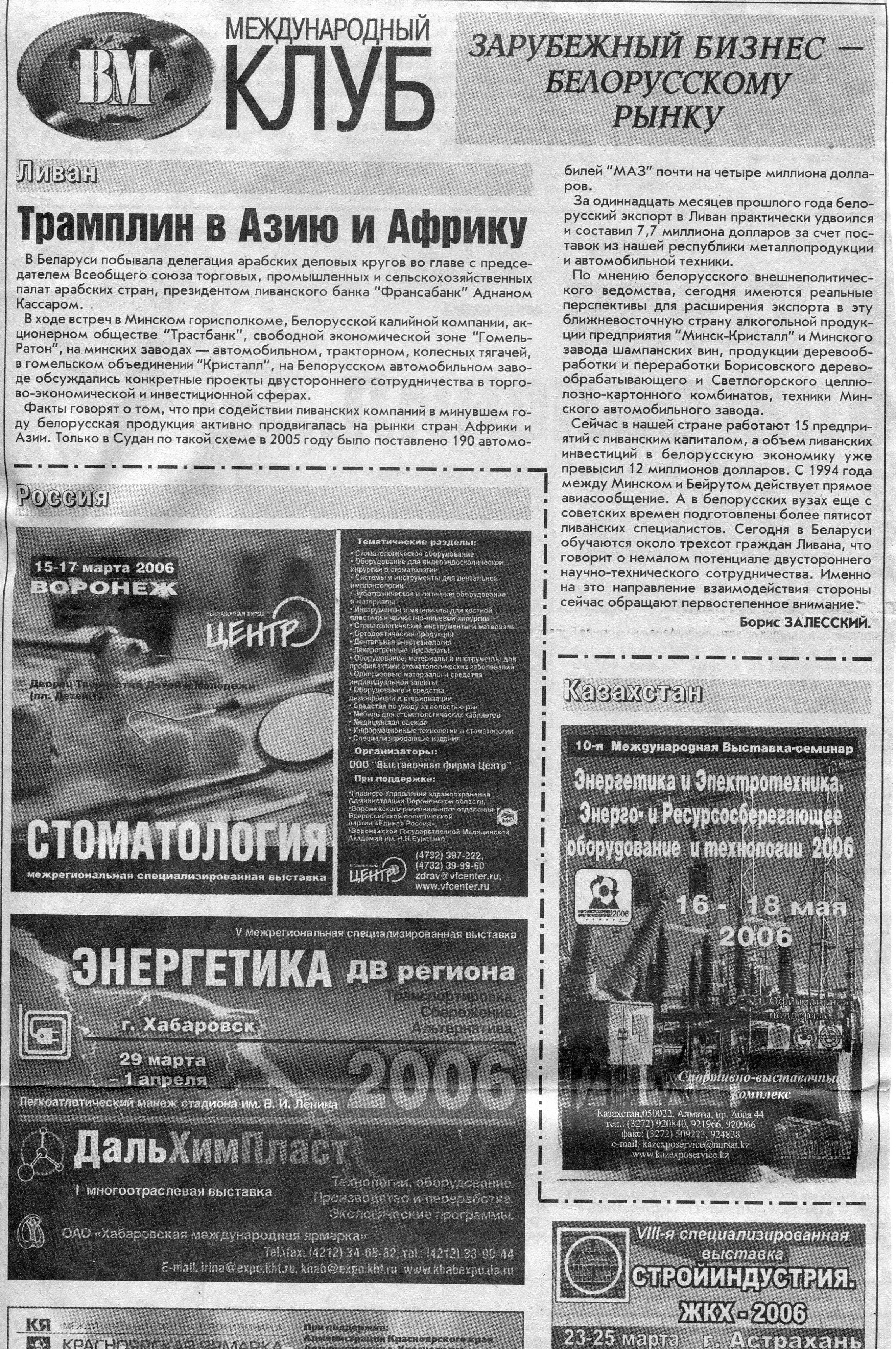 Зарубежный бизнес - белорусскому рынку // Вечерний Минск. - 2006. - 23 февр.
