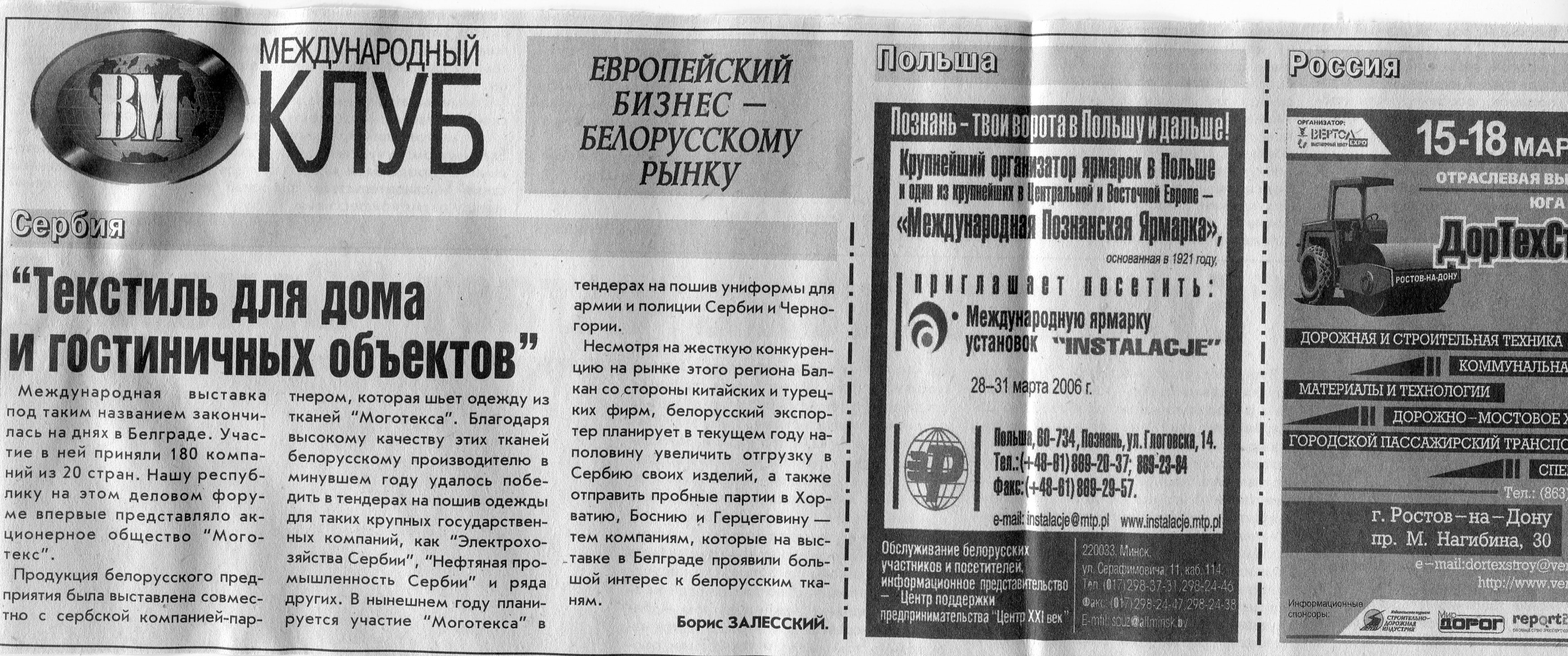 Зарубежный бизнес - белорусскому рынку // Вечерний Минск. - 2006. - 24 мар.