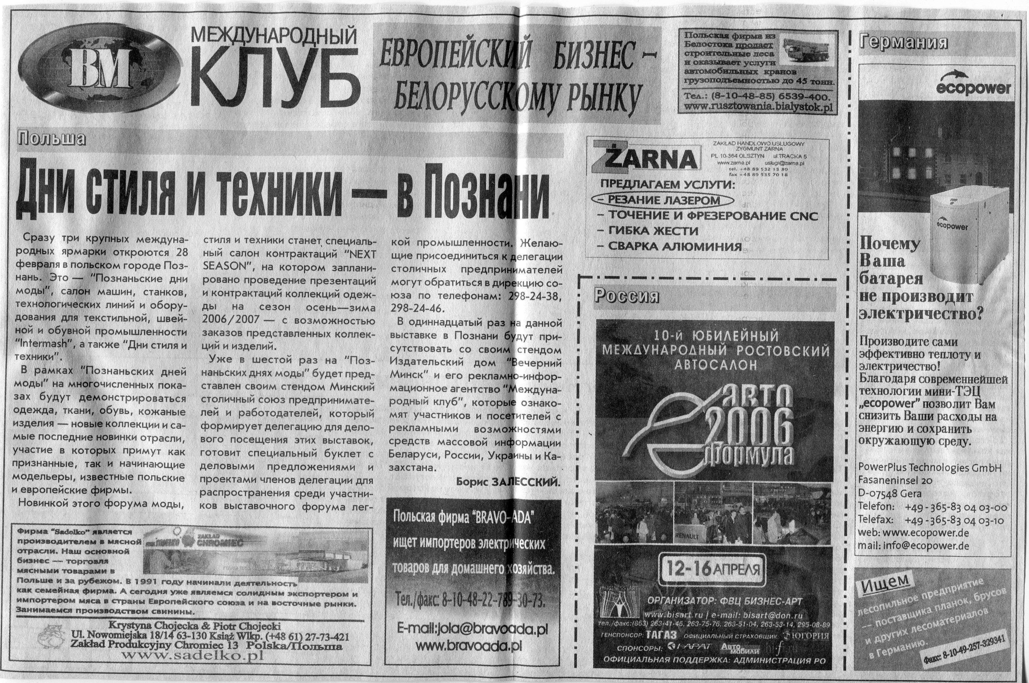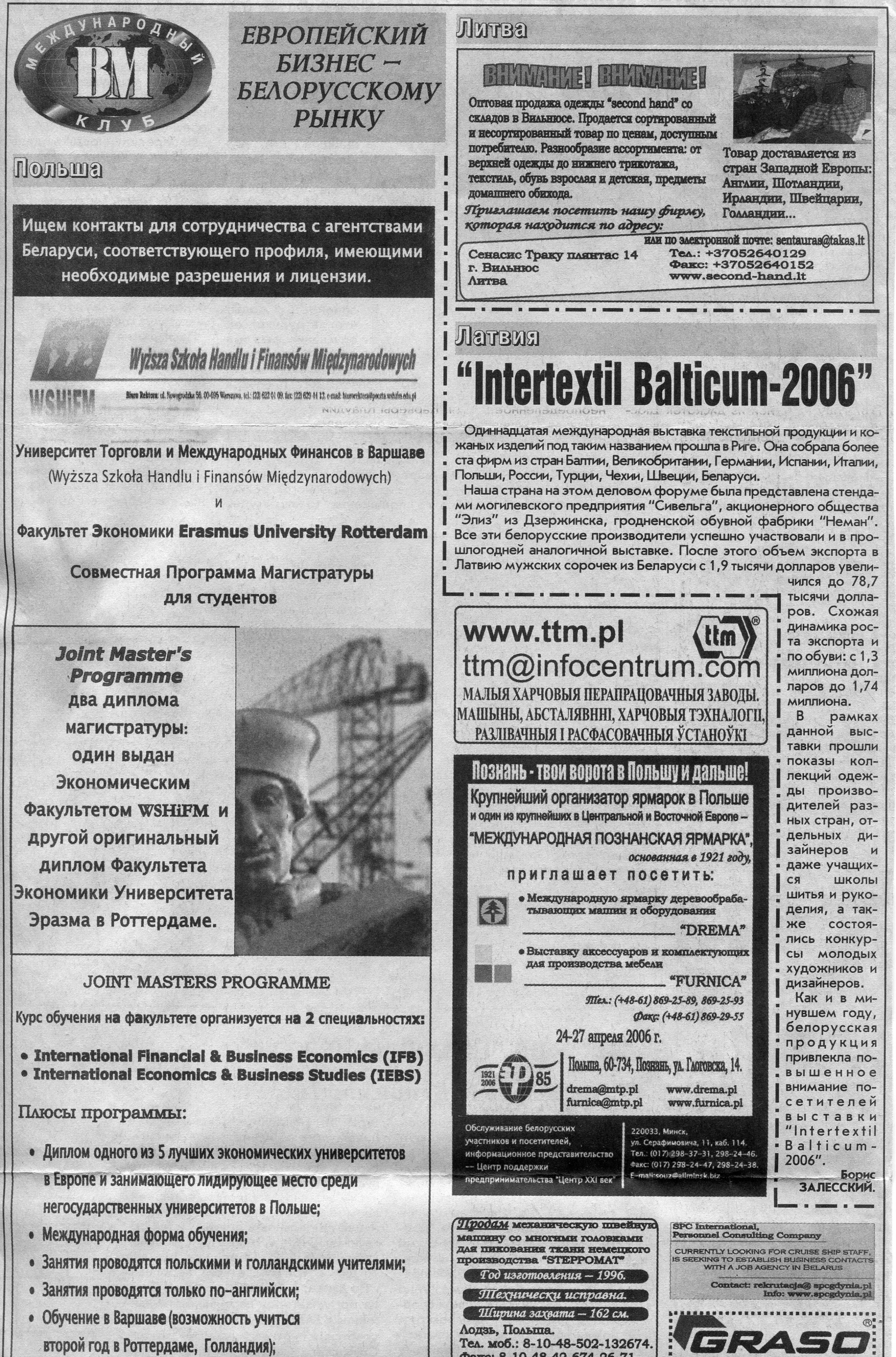 Европейский бизнес - белорусскому рынку // Вечерний Минск. - 2006. - 10 мар.