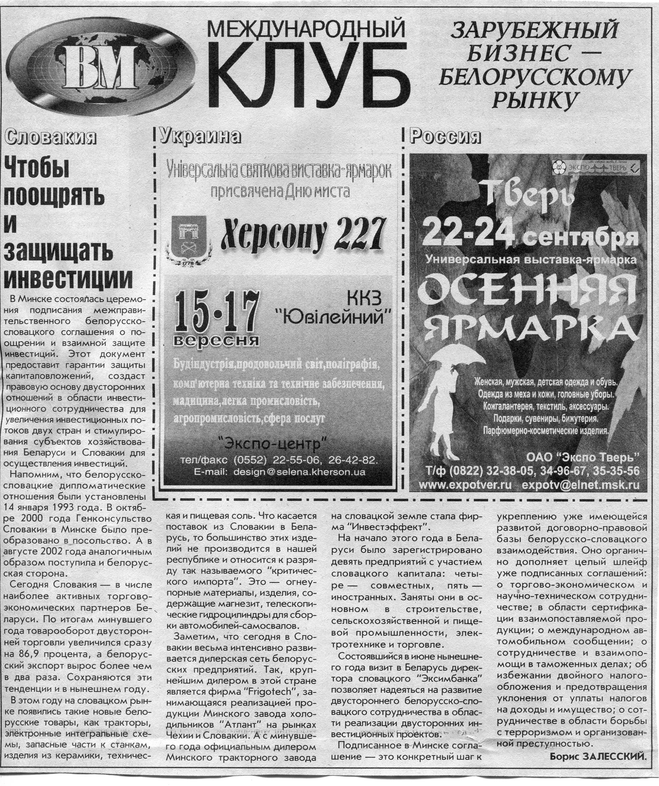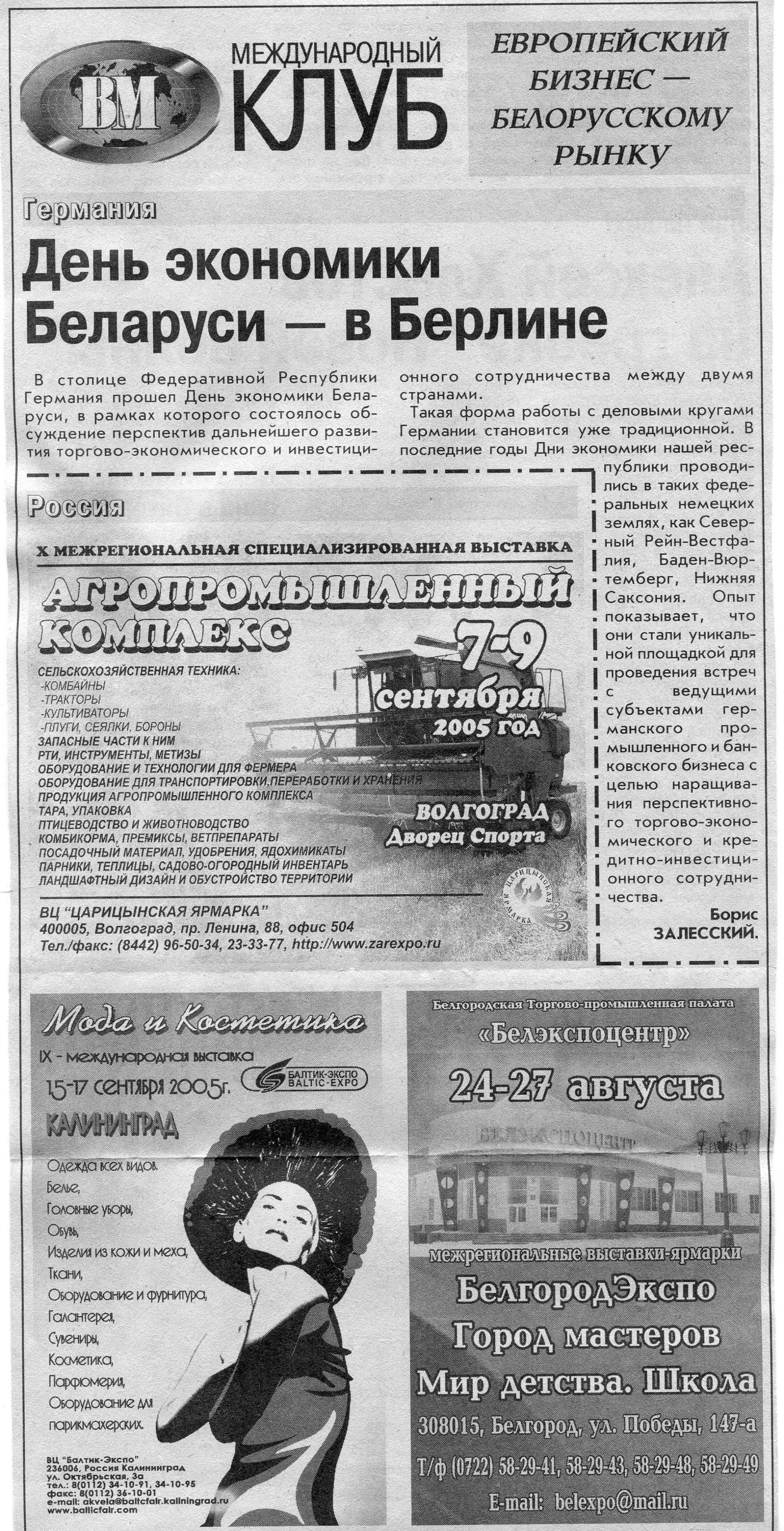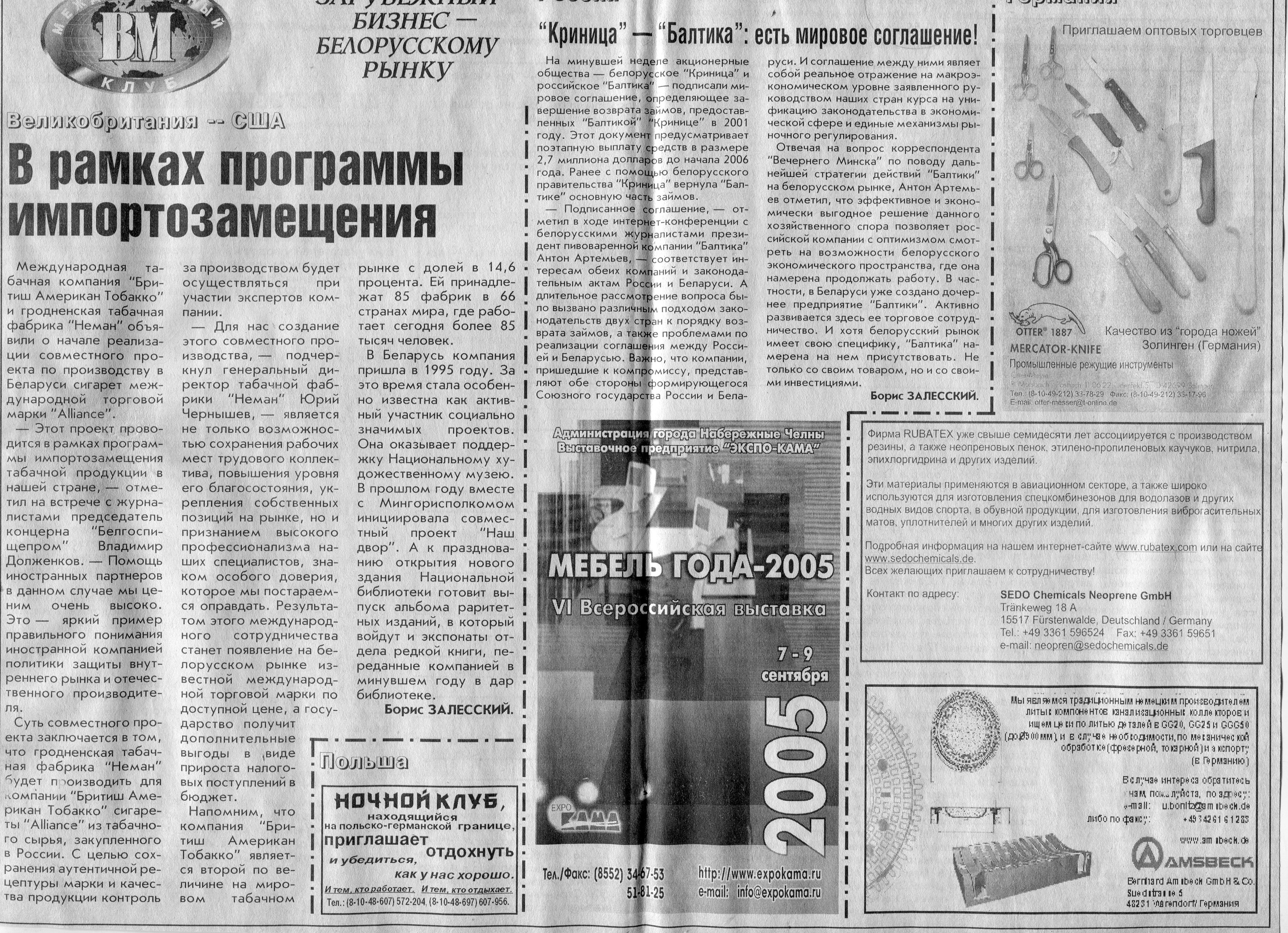 Европейский бизнес - белорусскому рынку // Вечерний Минск. - 2005. - 22 июл.