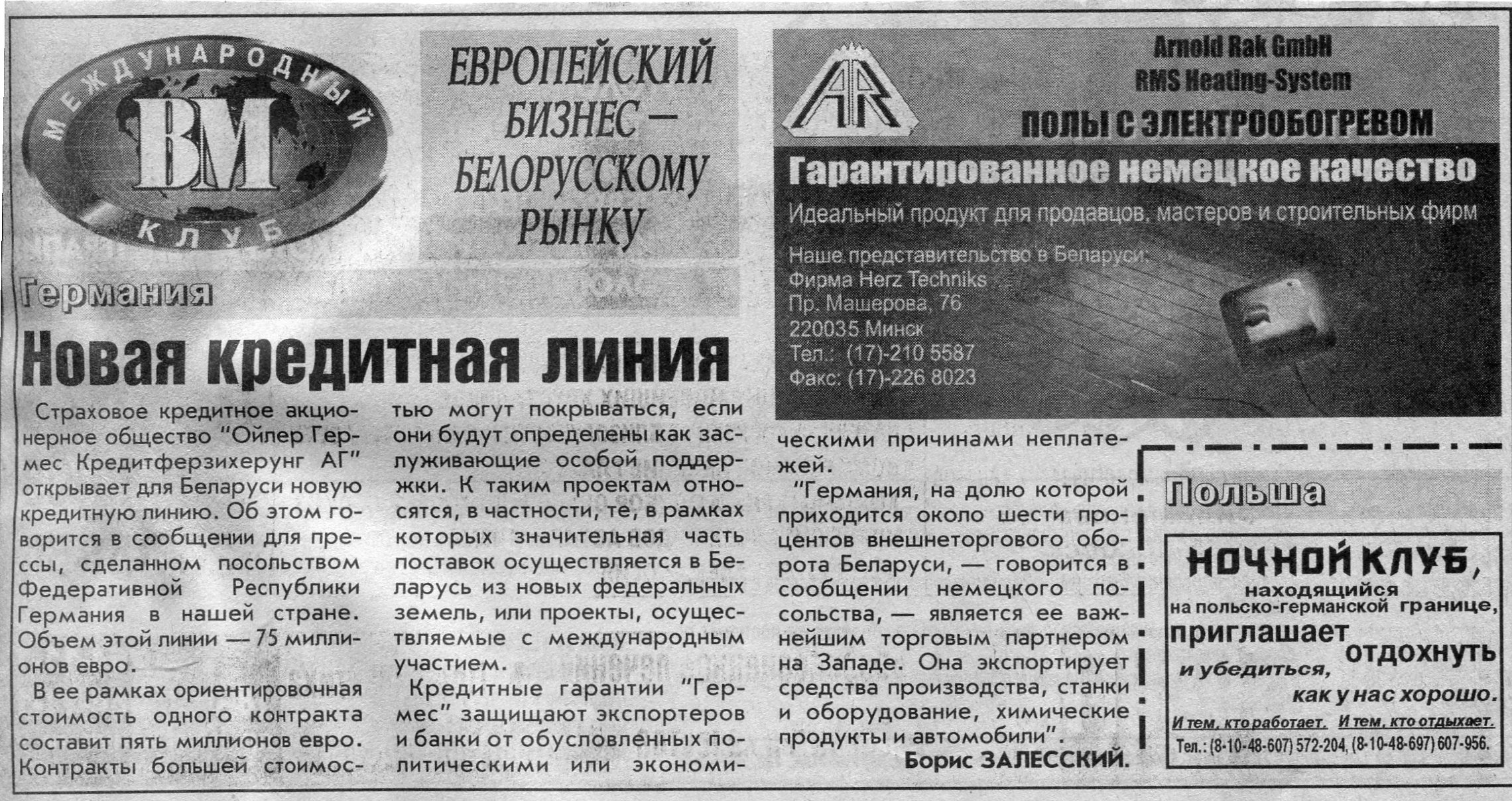 Европейский бизнес - белорусскому рынку // Вечерний Минск. - 2005. - 4 июл.