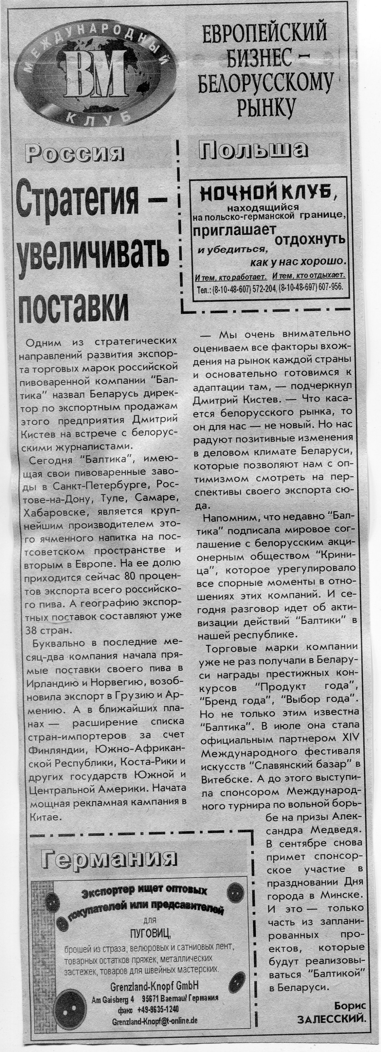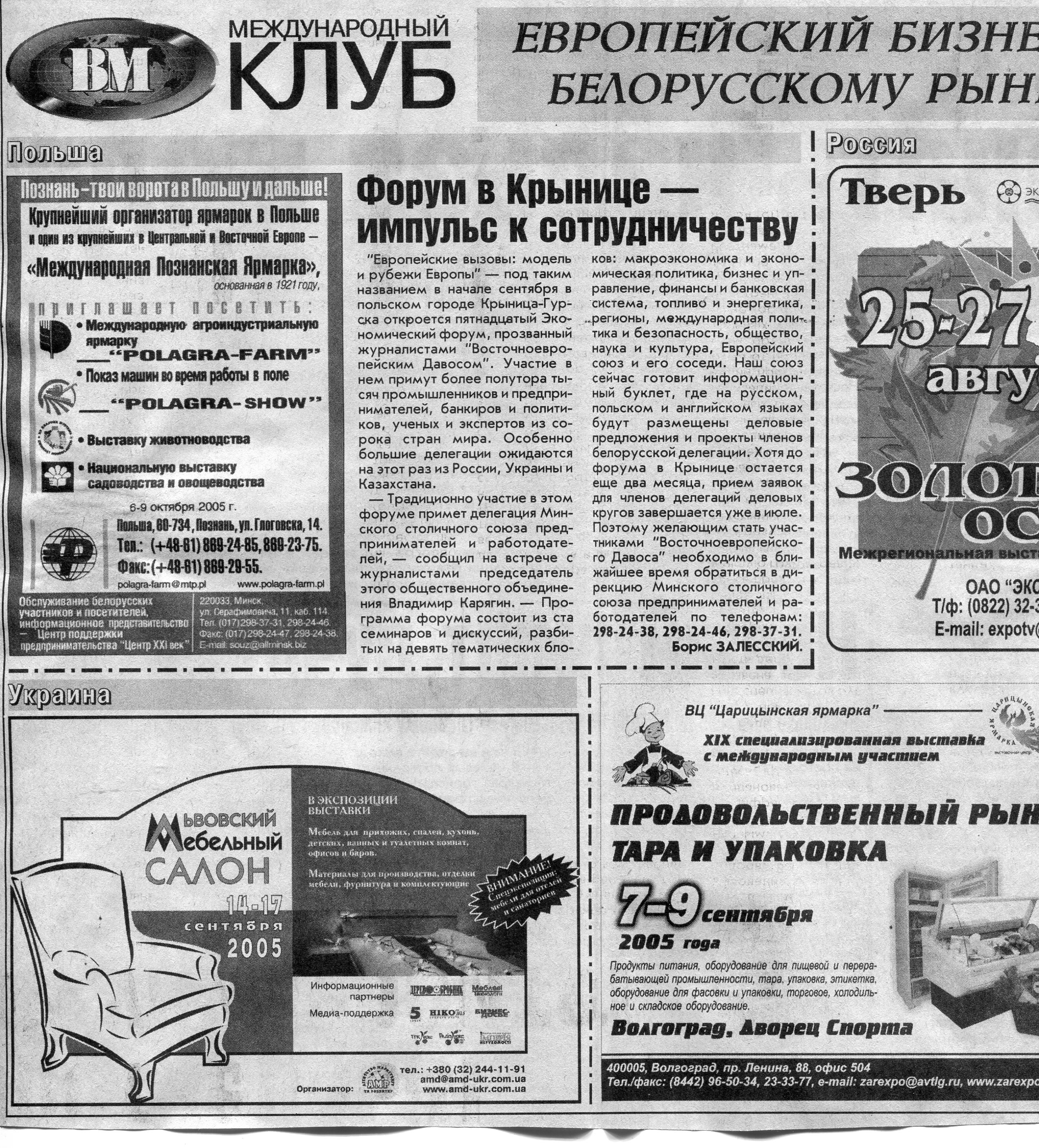Европейский бизнес - белорусскому рынку // Вечерний Минск. - 2005. - 11 июл.