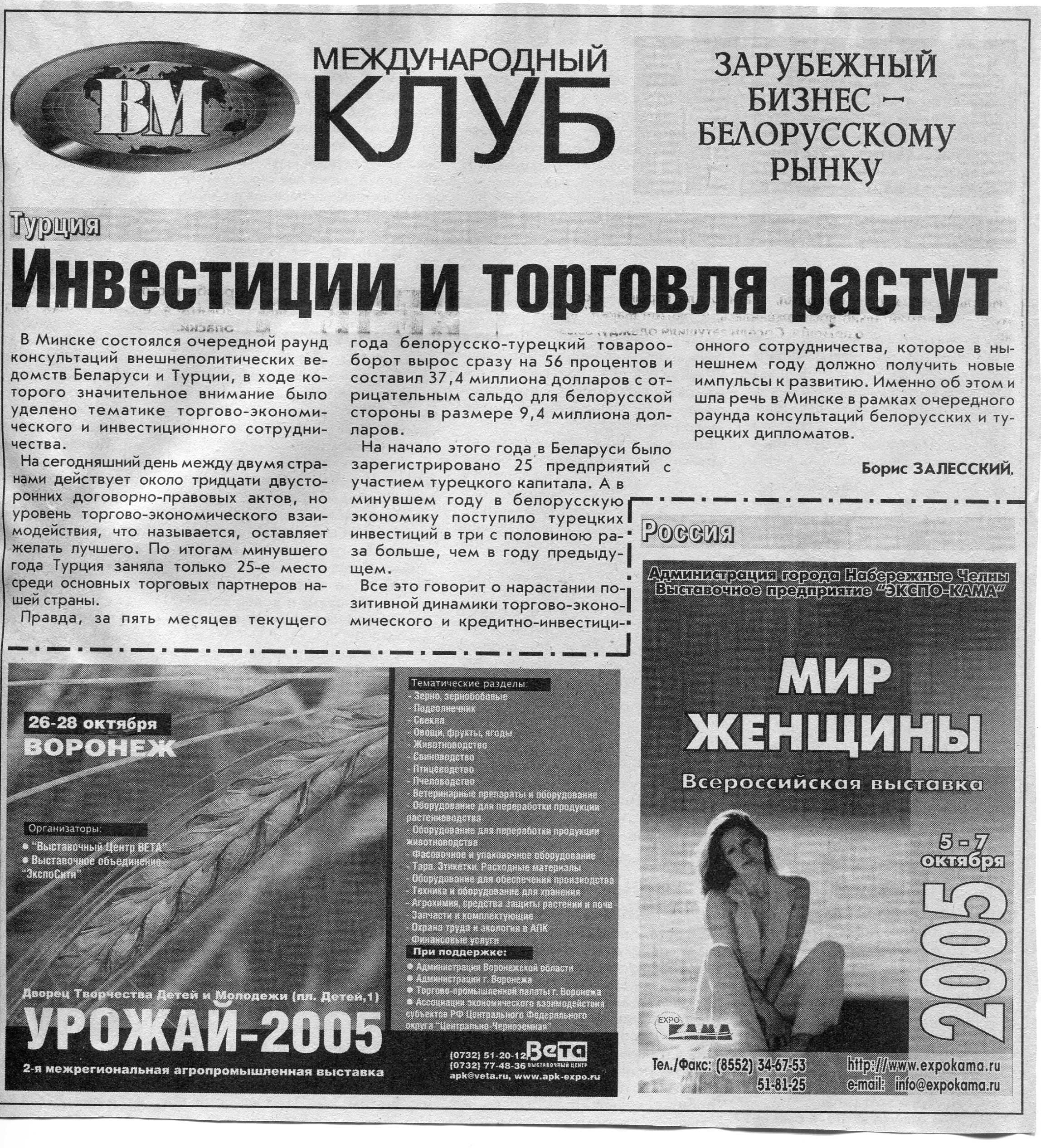 Зарубежный бизнес - белорусскому рынку // Вечерний Минск. - 2005. - 22 авг.