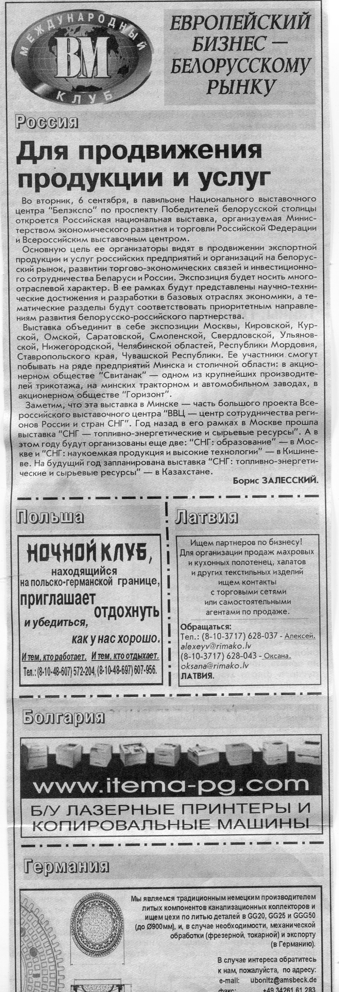 Европейский бизнес - белорусскому рынку // Вечерний Минск. - 2005. - 5 авг.