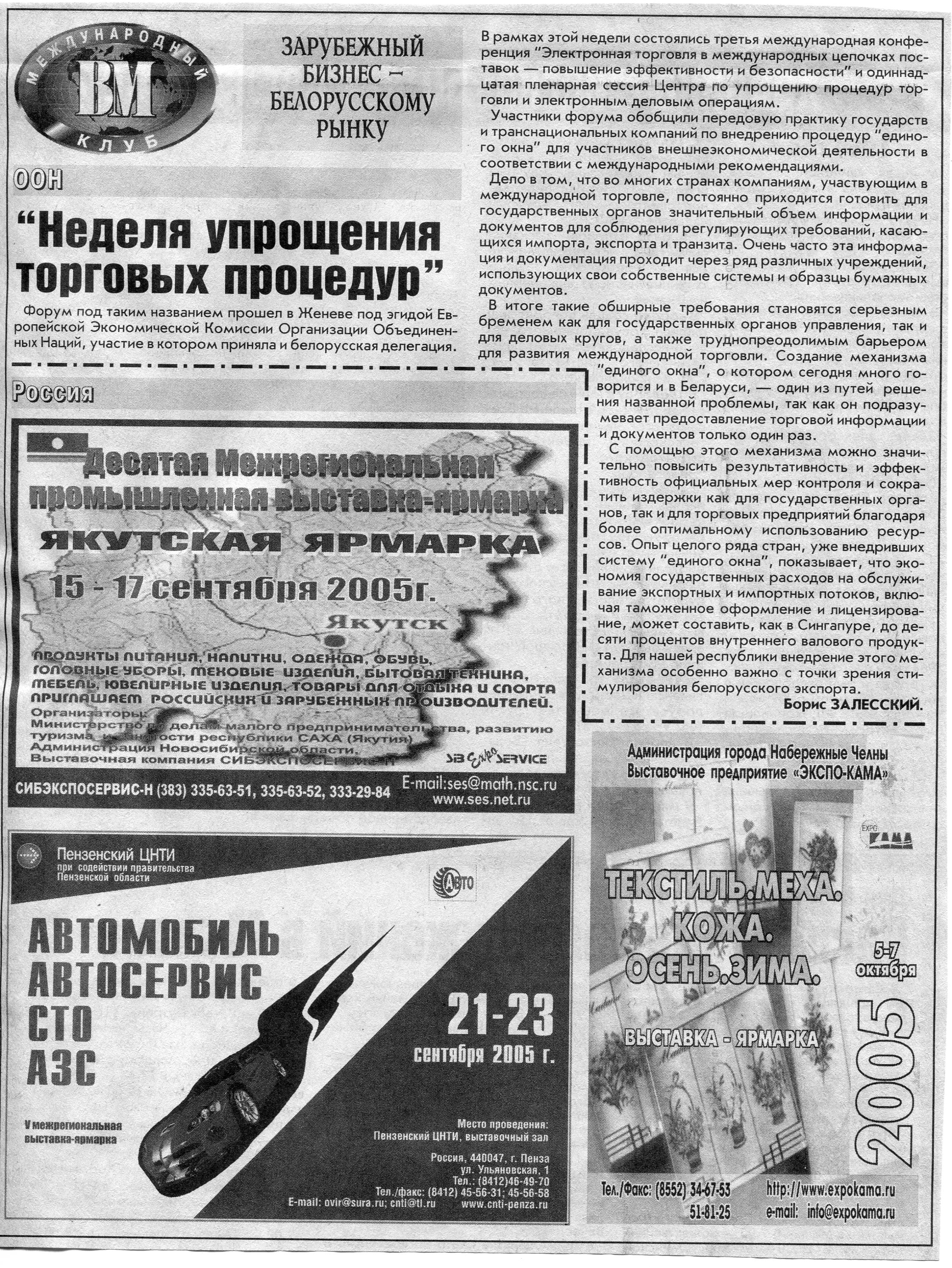 Зарубежный бизнес - белорусскому рынку // Вечерний Минск. - 2005. - 7 сент.