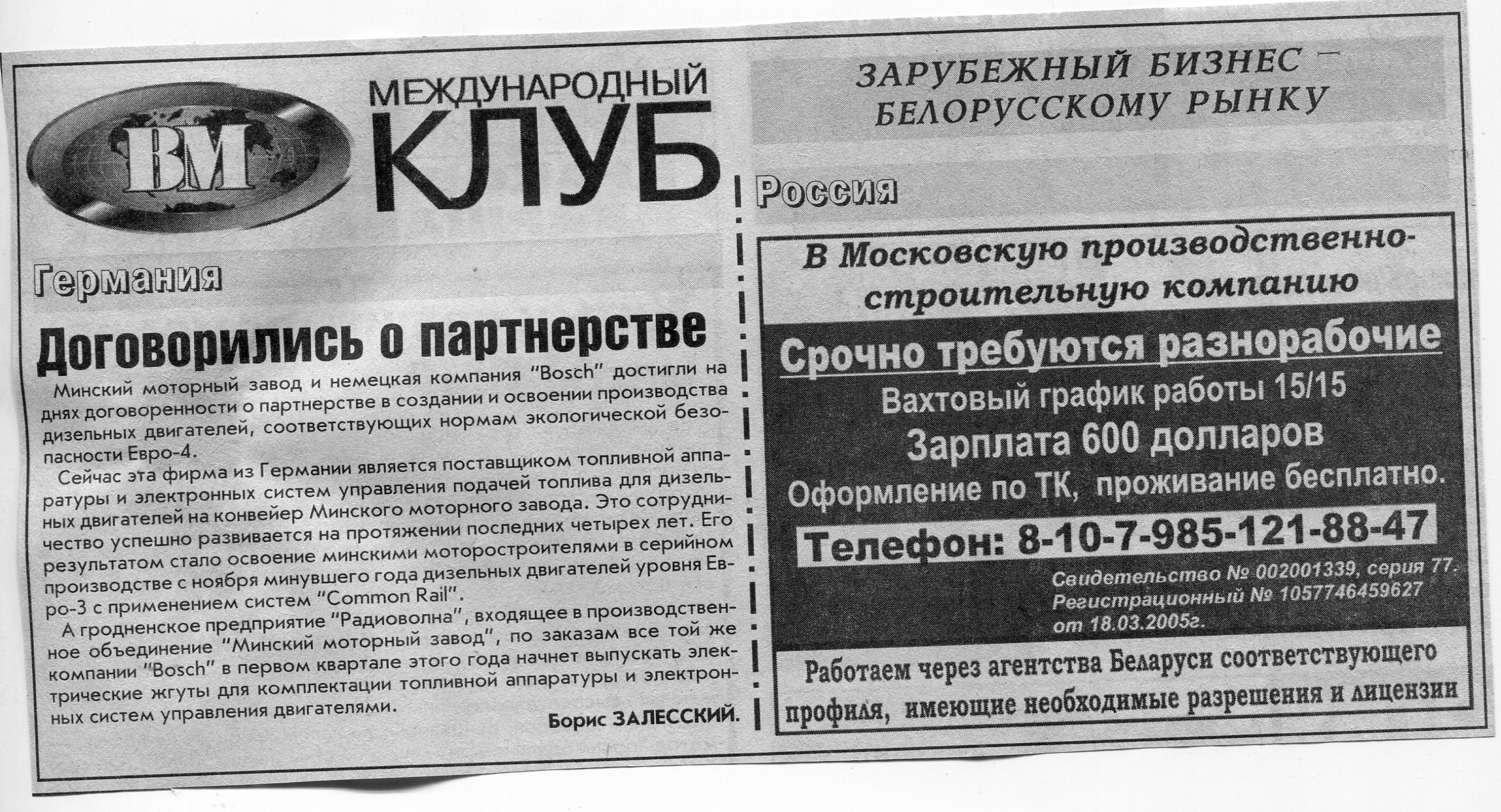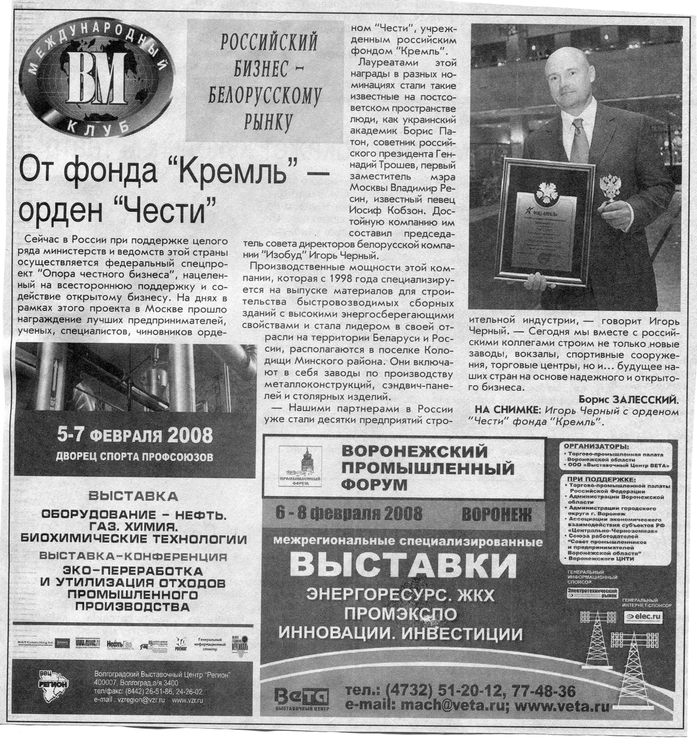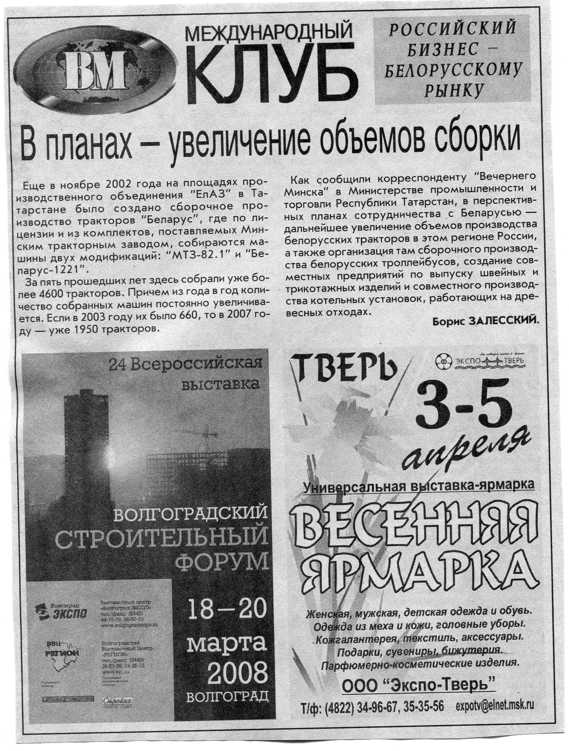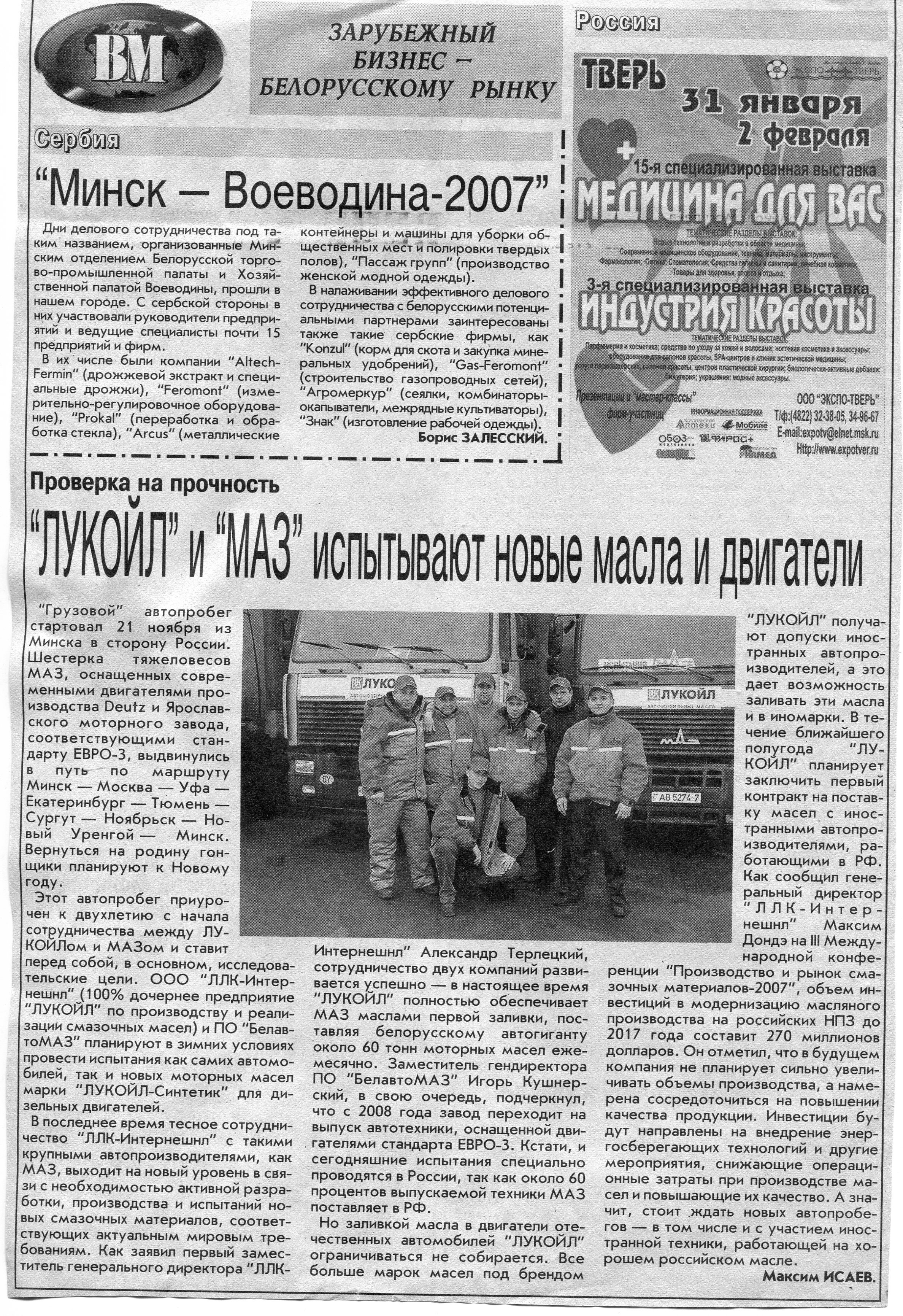 Российский бизнес - белорусскому рынку // Вечерний Минск. - 2008. - 10 янв.