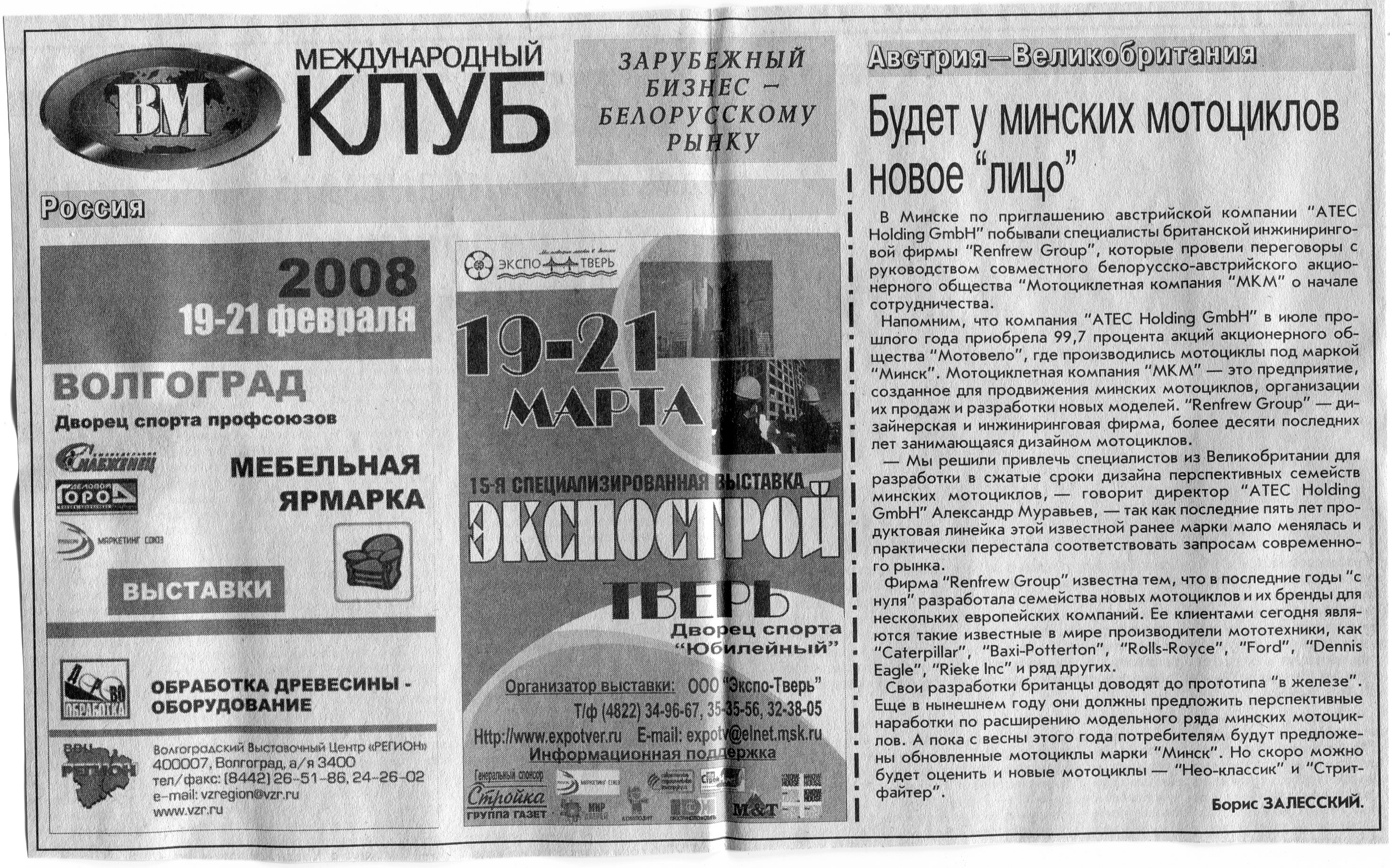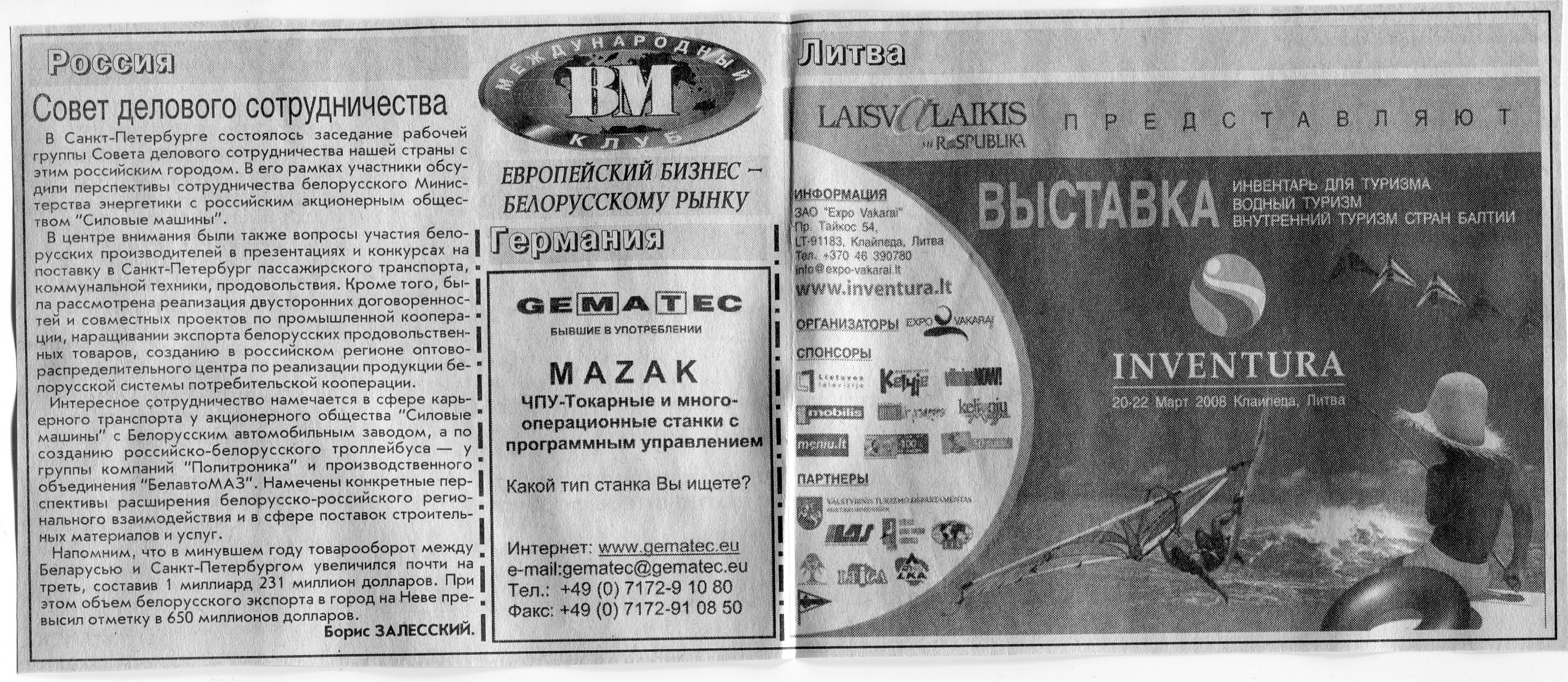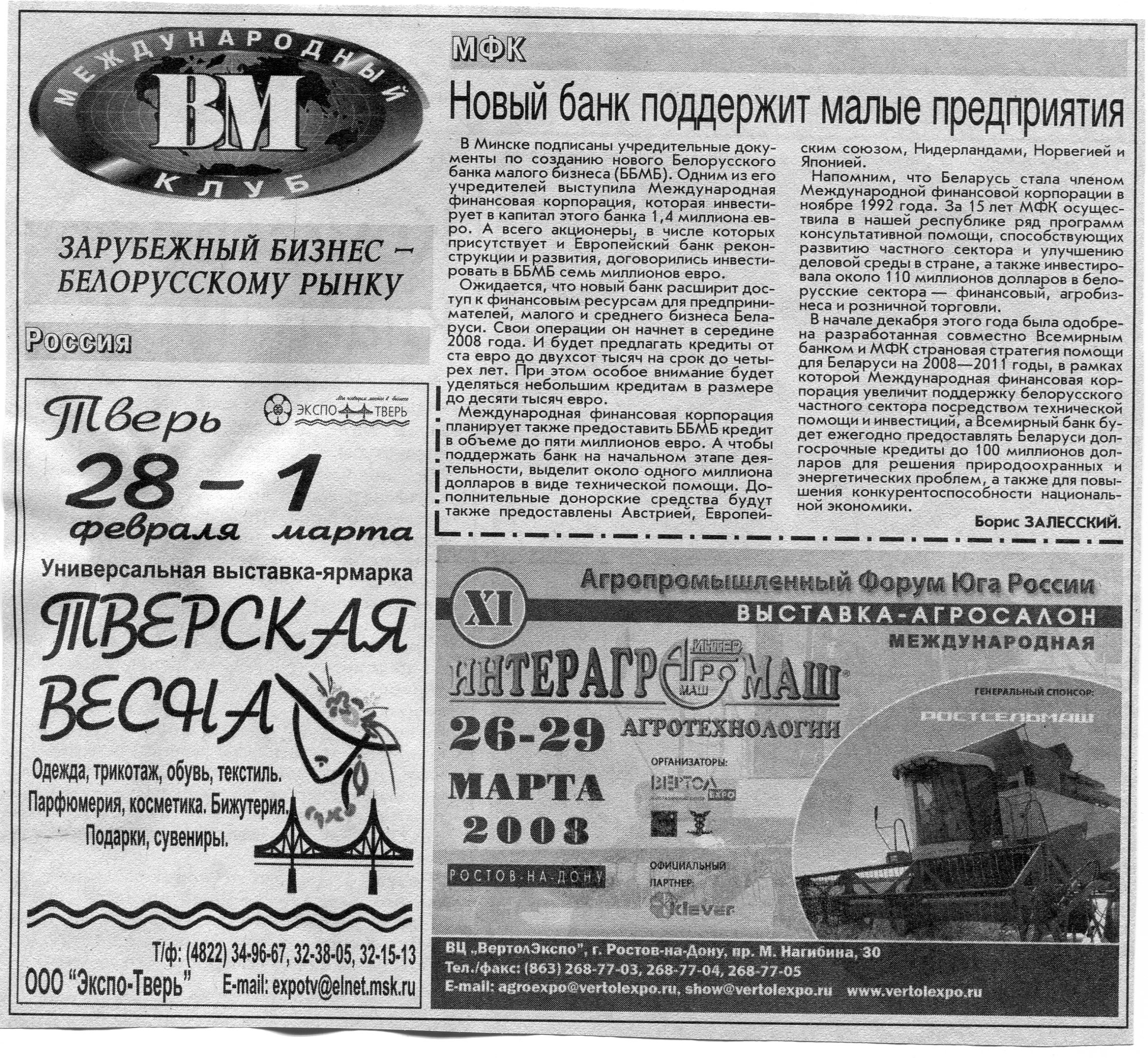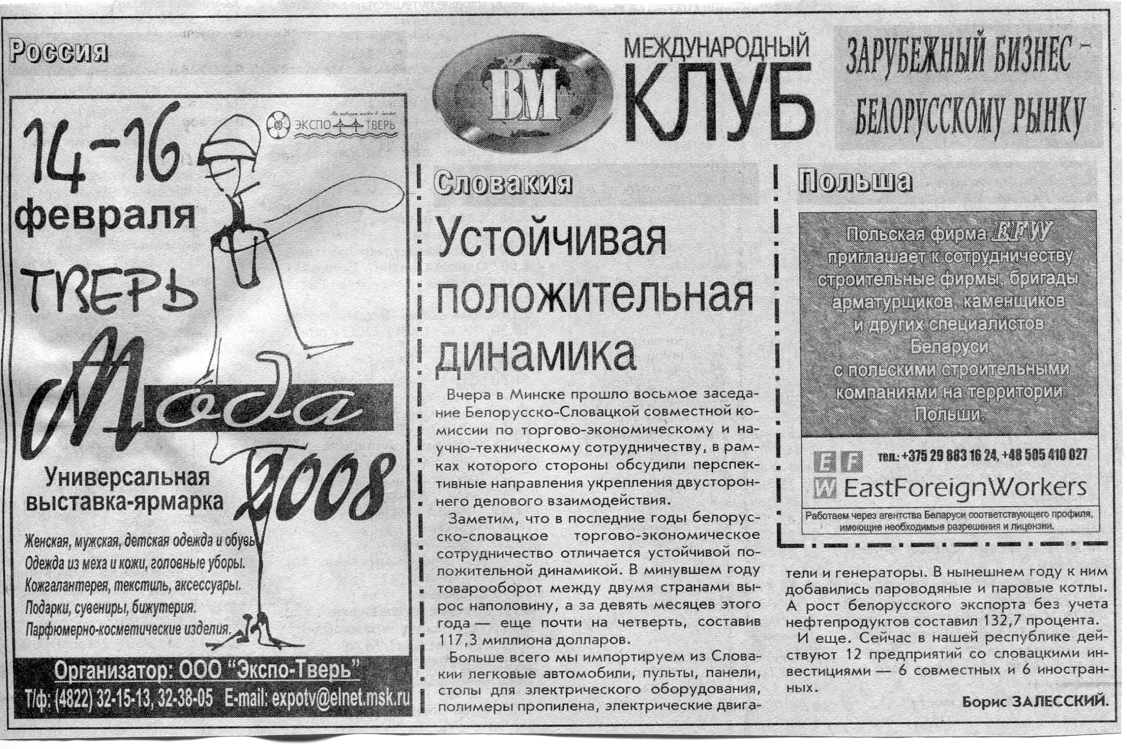 Европейский бизнес - белорусскому рынку // Вечерний Минск. - 2008. - 15 февр.