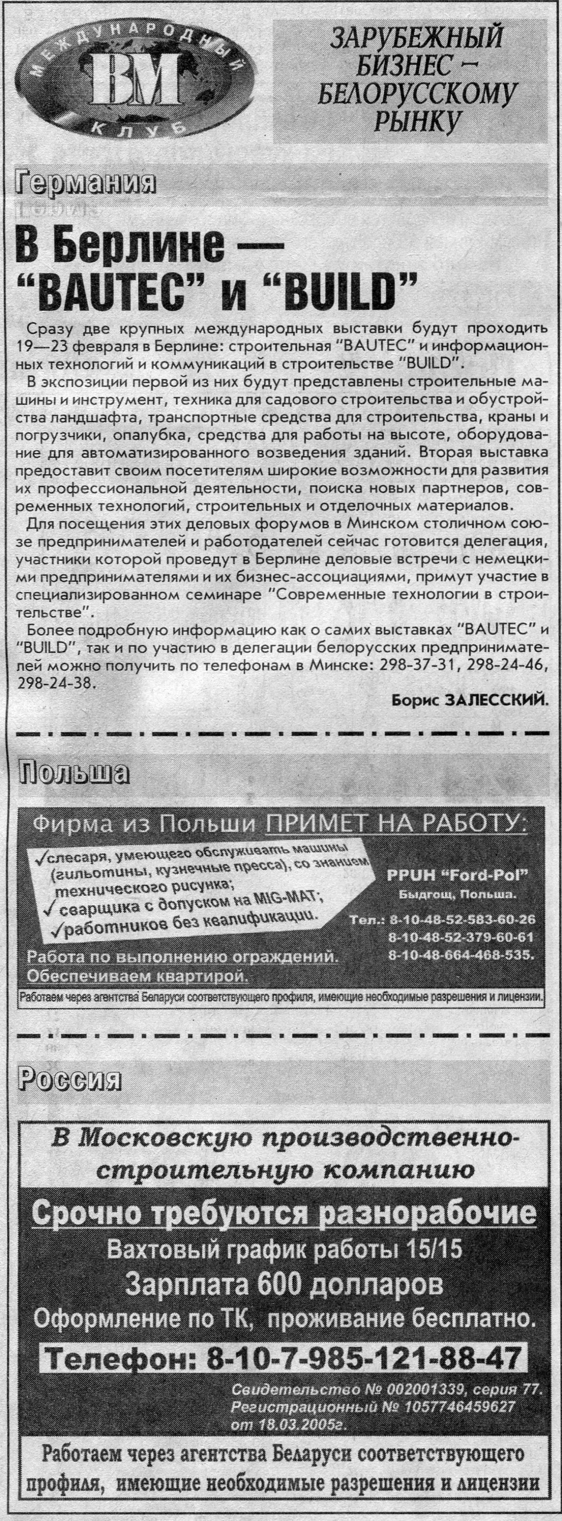 Зарубежный бизнес - белорусскому рынку // Вечерний Минск. - 2008. - 19 февр.