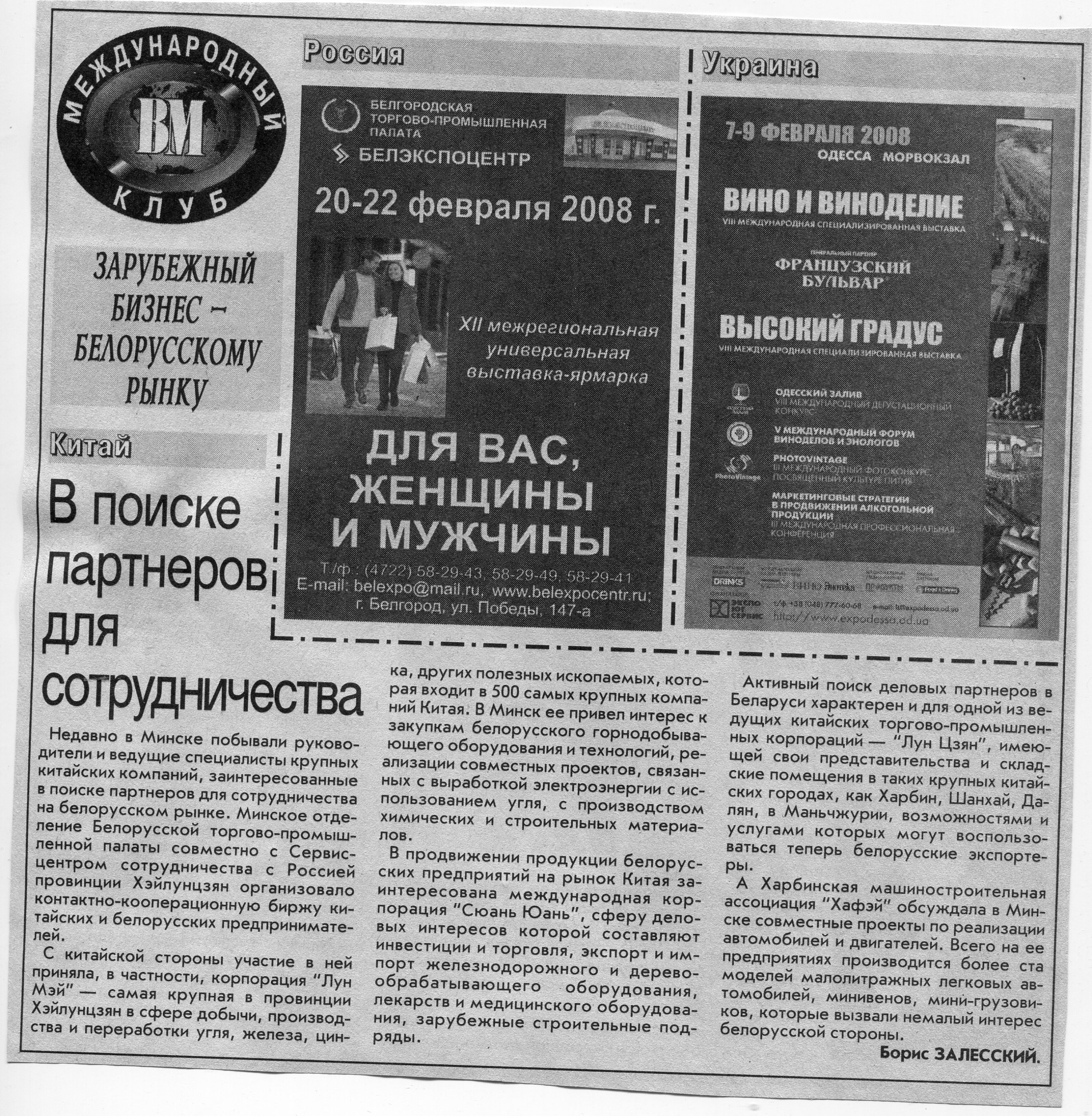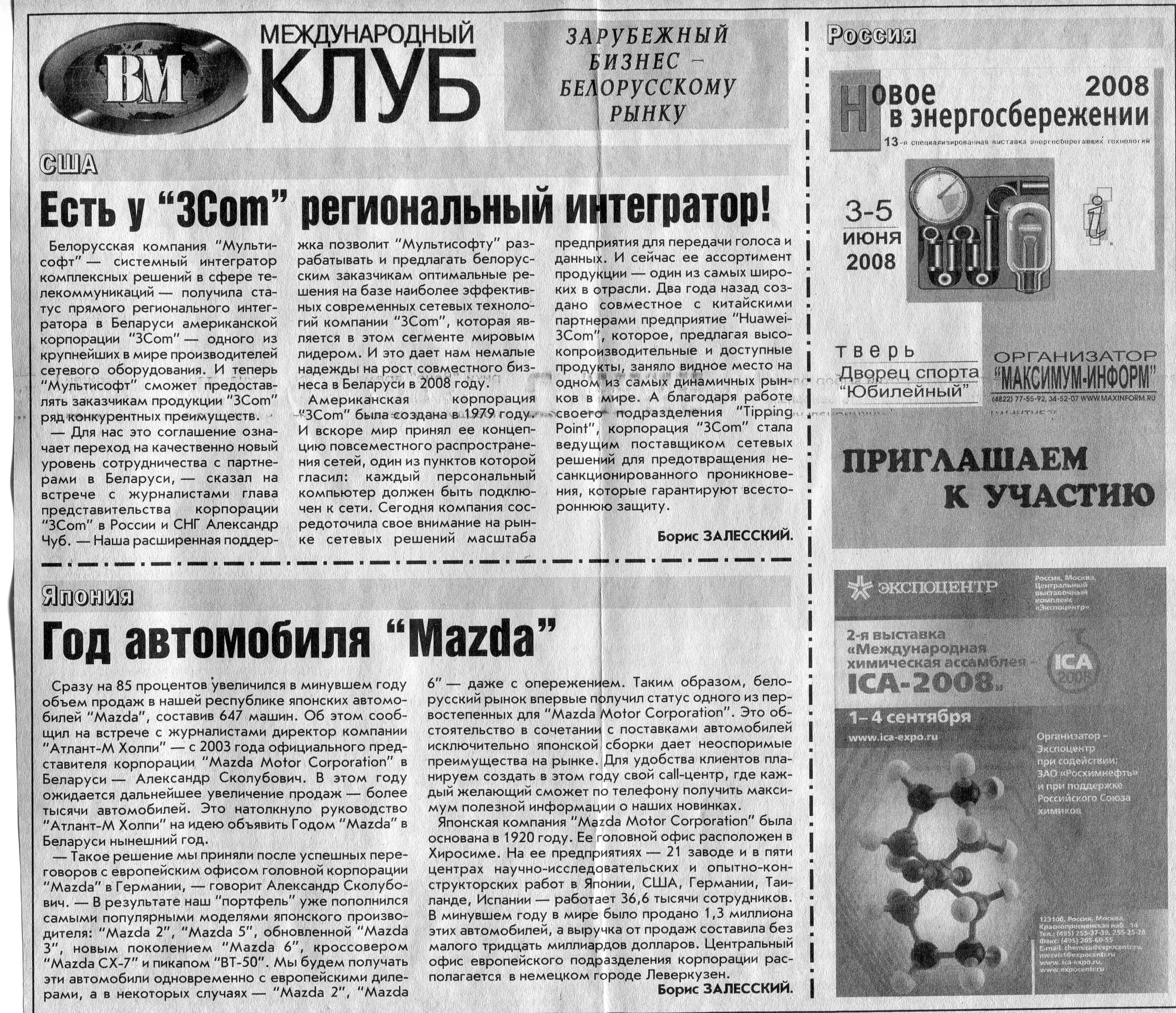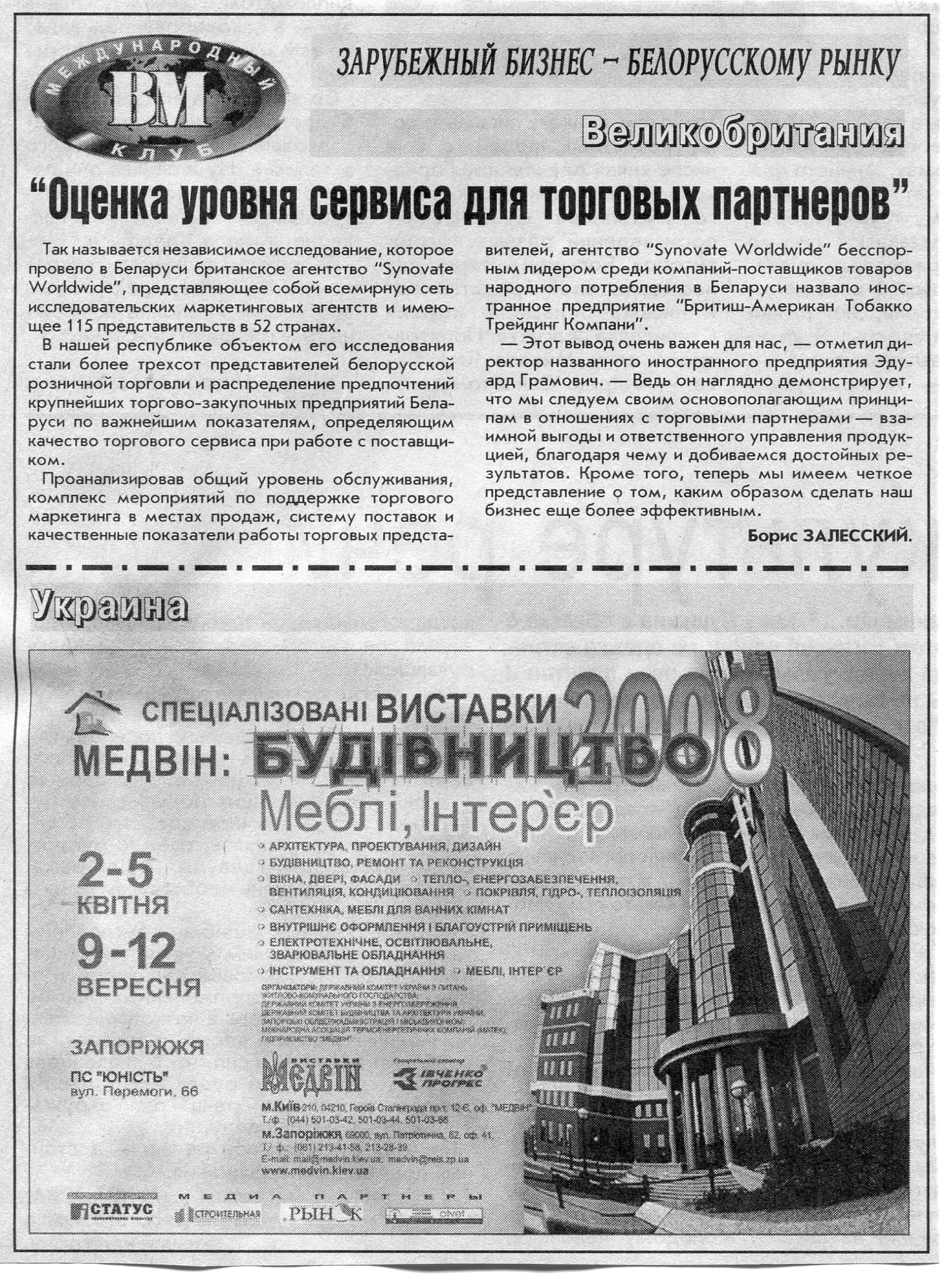 Зарубежный бизнес - белорусскому рынку // Вечерний Минск. - 2008. - 28 февр.