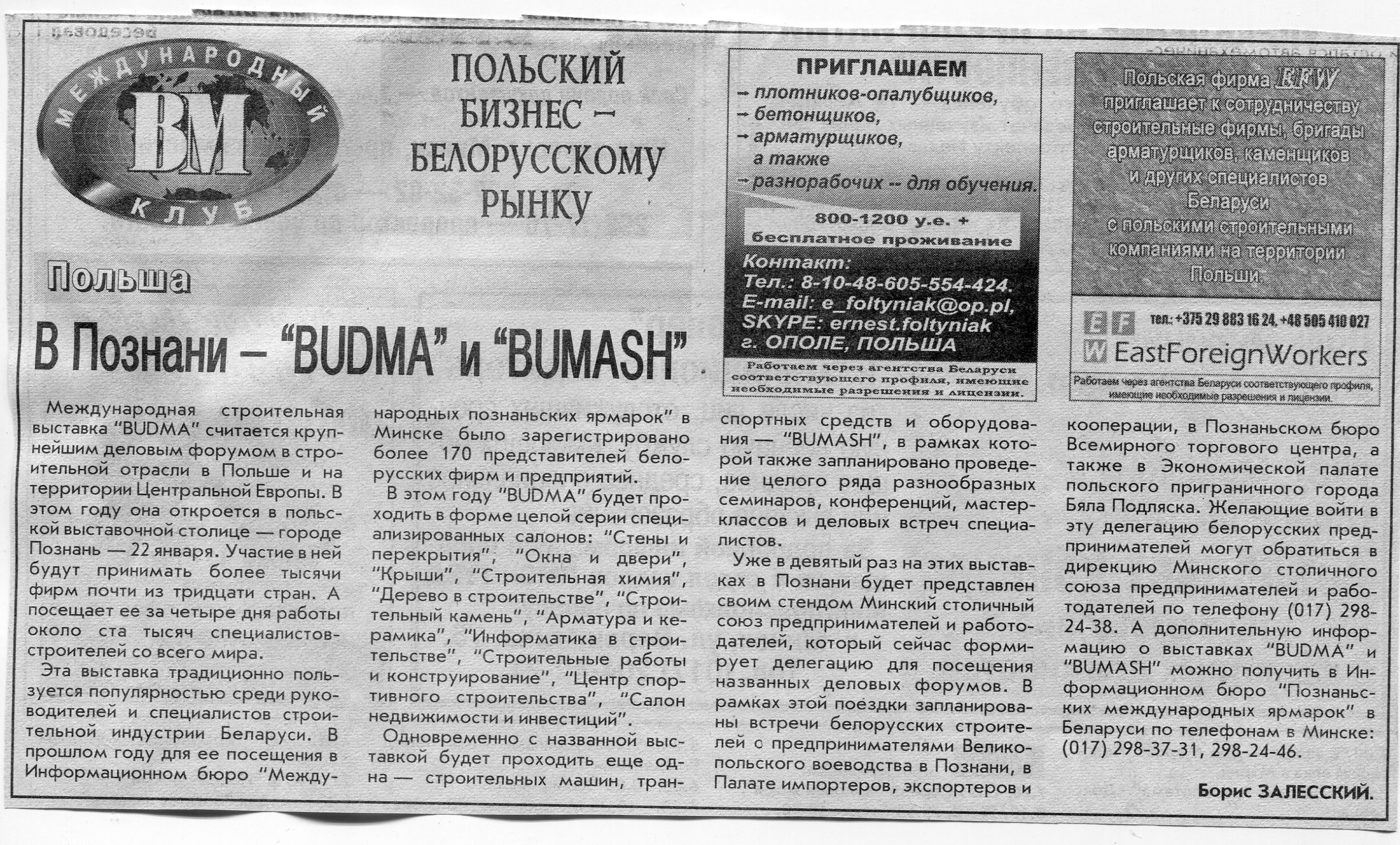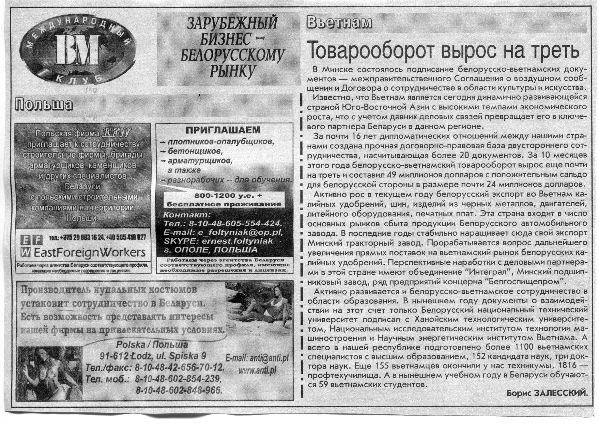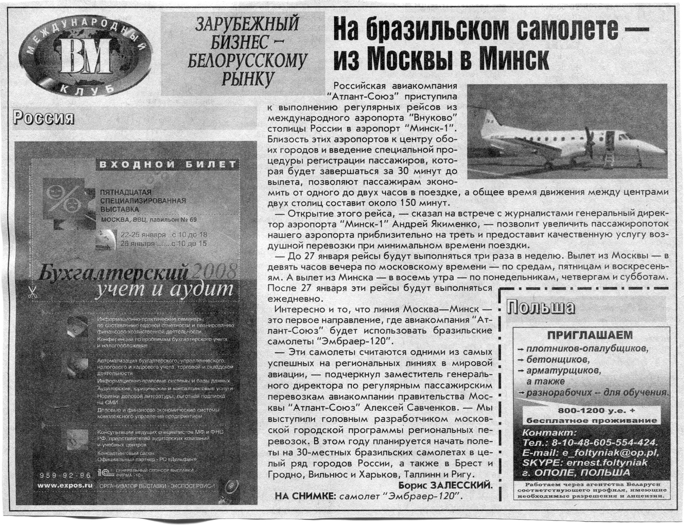 Польский бизнес - белорусскому рынку // Вечерний Минск. - 2008. - 4 янв.